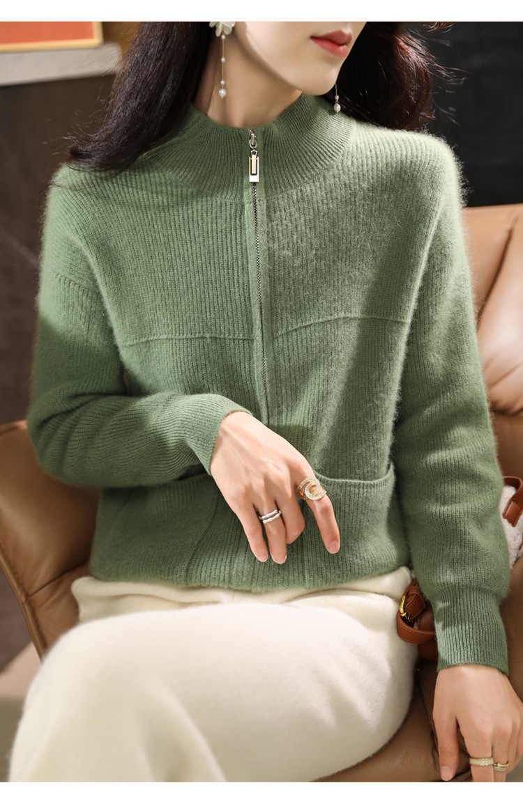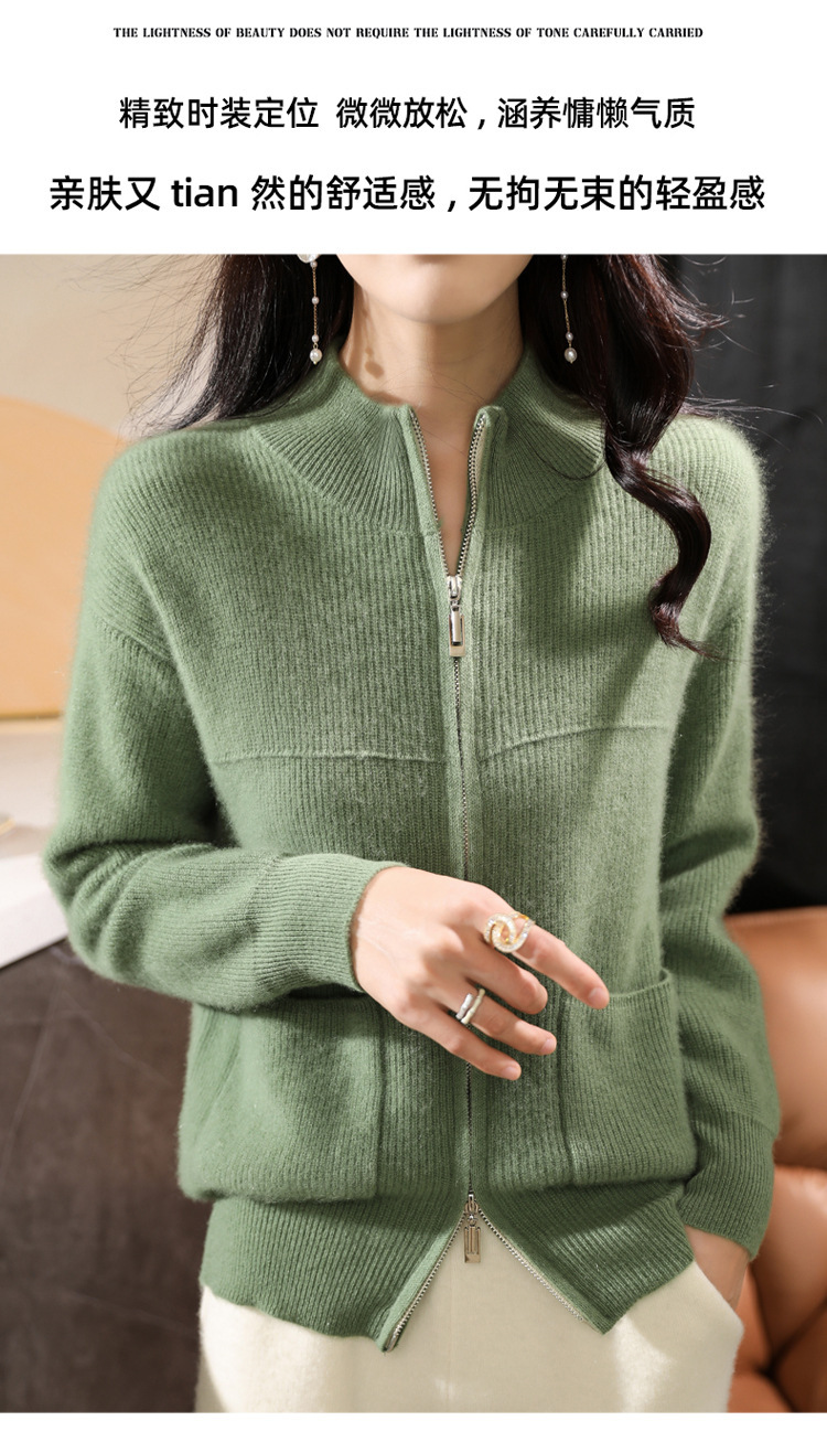 2023 봄과 가을 새로운 단색 느슨한 게으른 스타일 슬림 스웨터 울 탑 더블 지퍼 니트 가디건 여성용