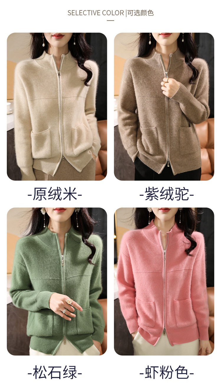 2023 봄과 가을 새로운 단색 느슨한 게으른 스타일 슬림 스웨터 울 탑 더블 지퍼 니트 가디건 여성용스토어 가기