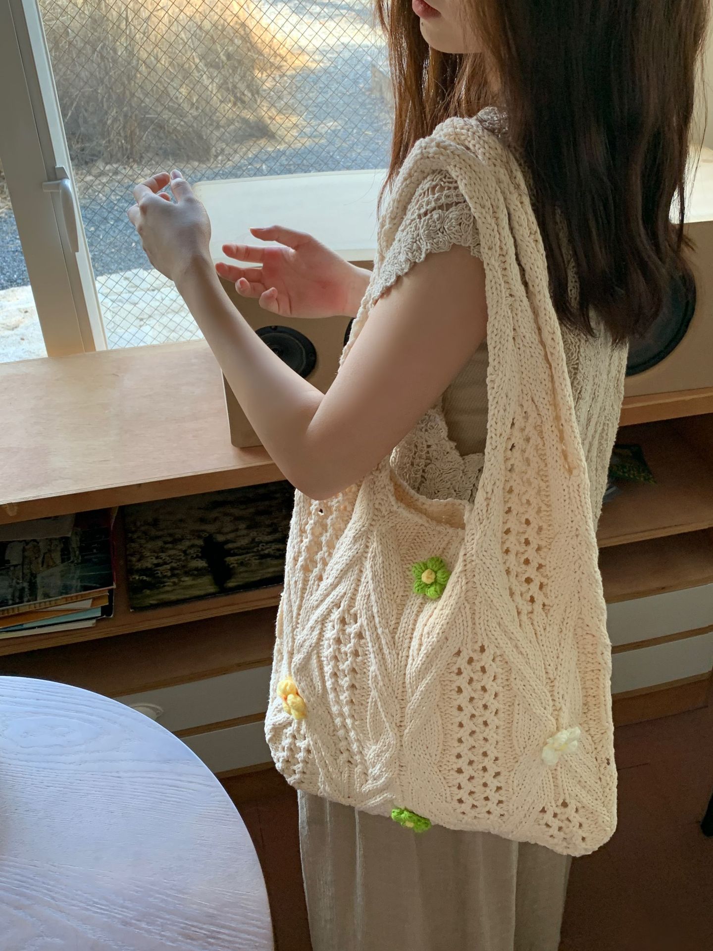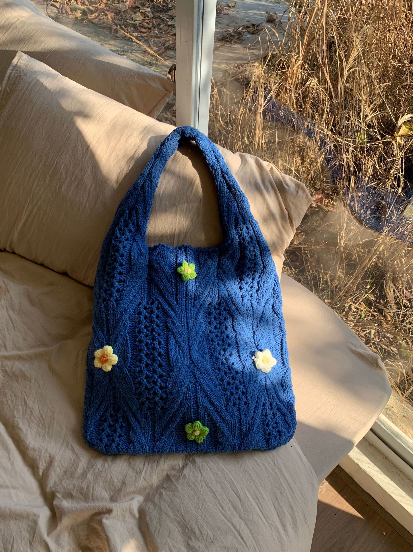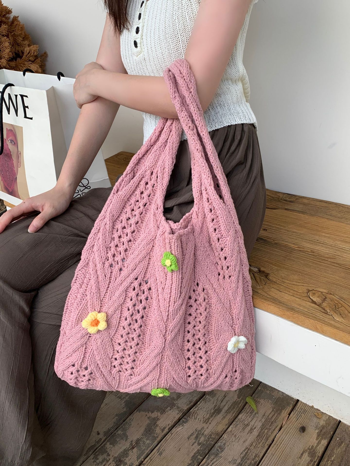 새로운 국경 양모 니트 백 짠 가방 꽃 틈새 올 매치 가방 여성용 하이 엔드 어깨 가방스토어 가기