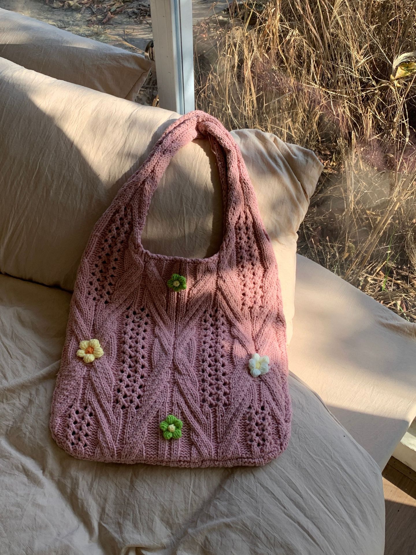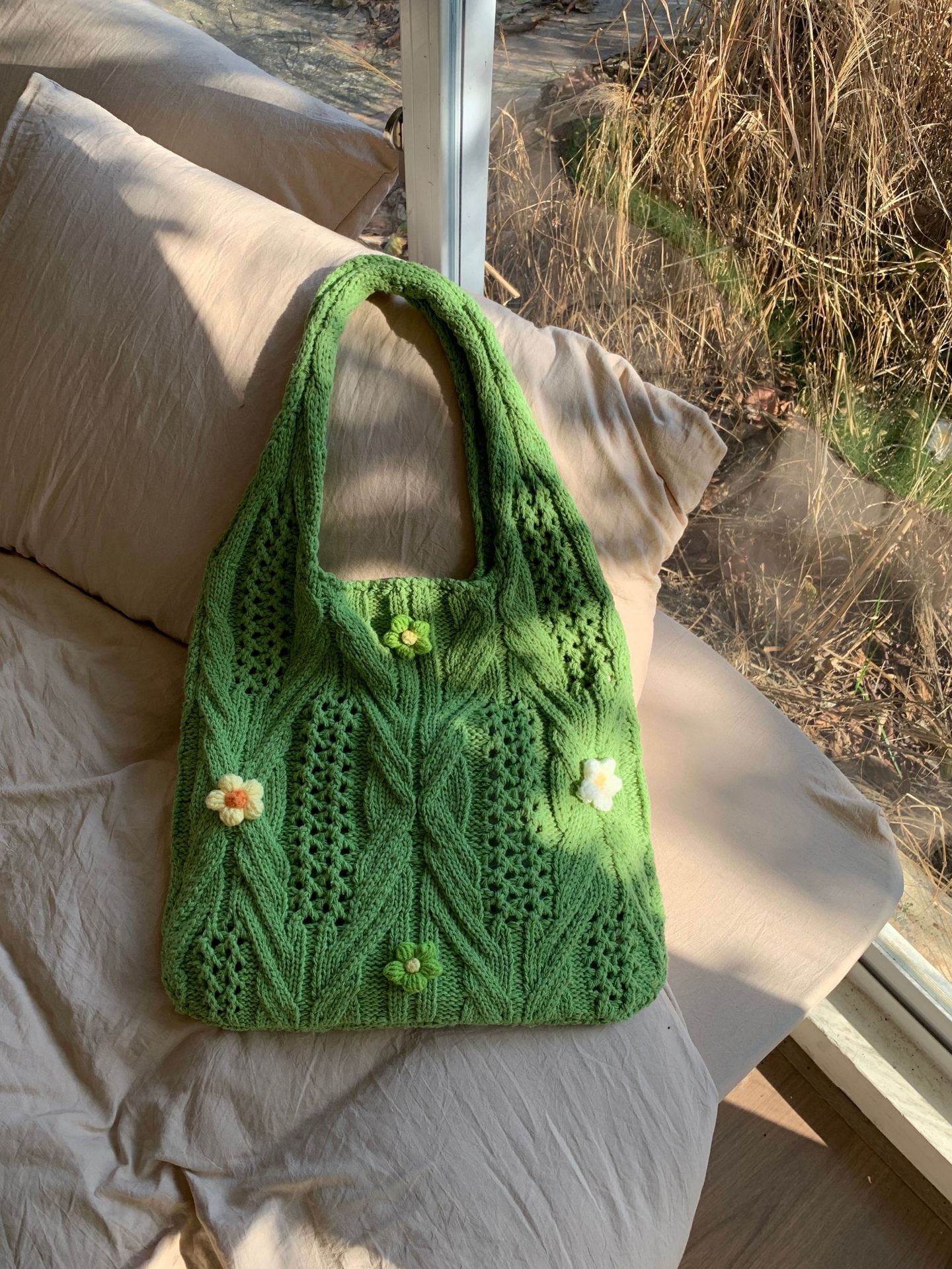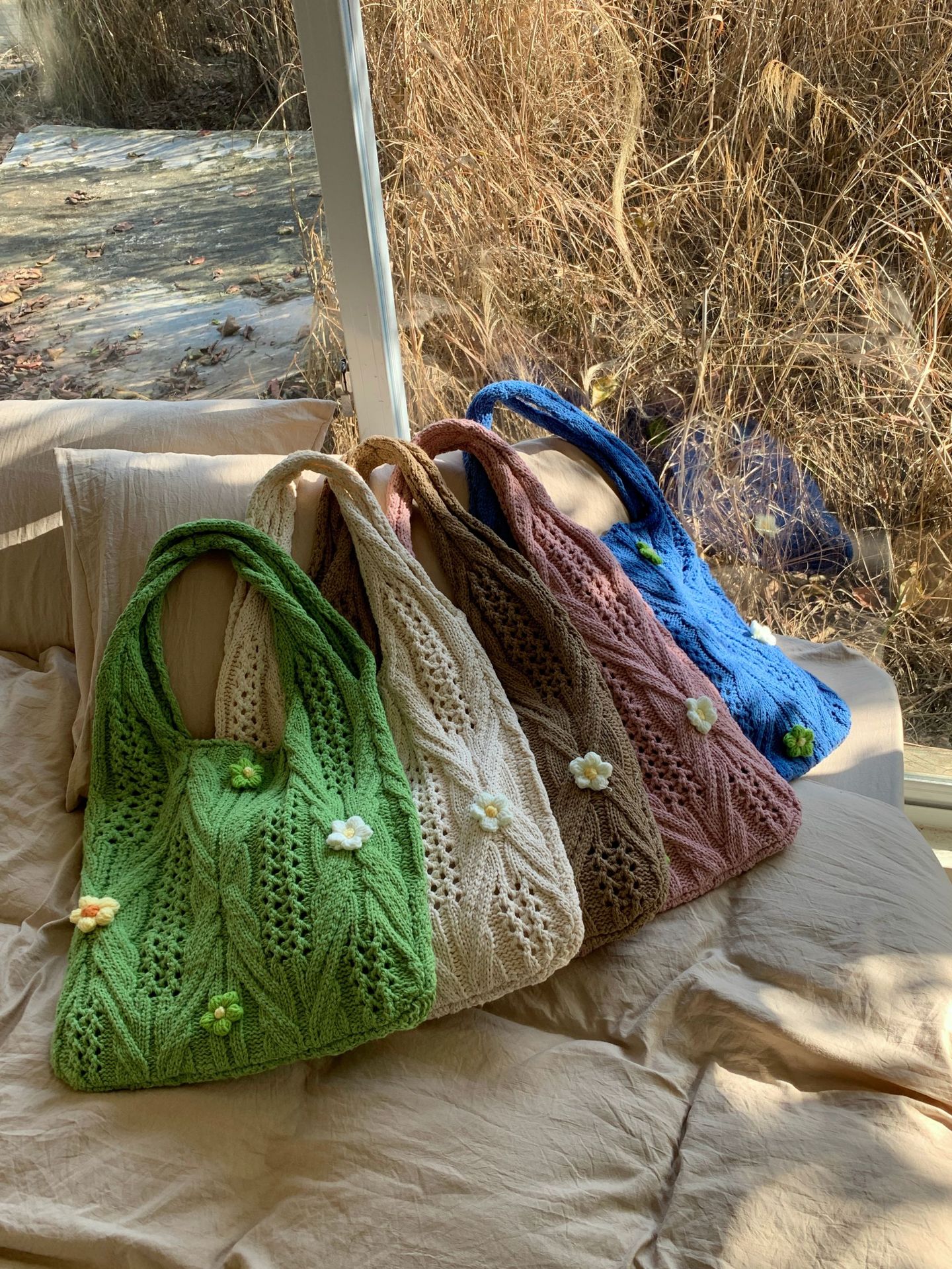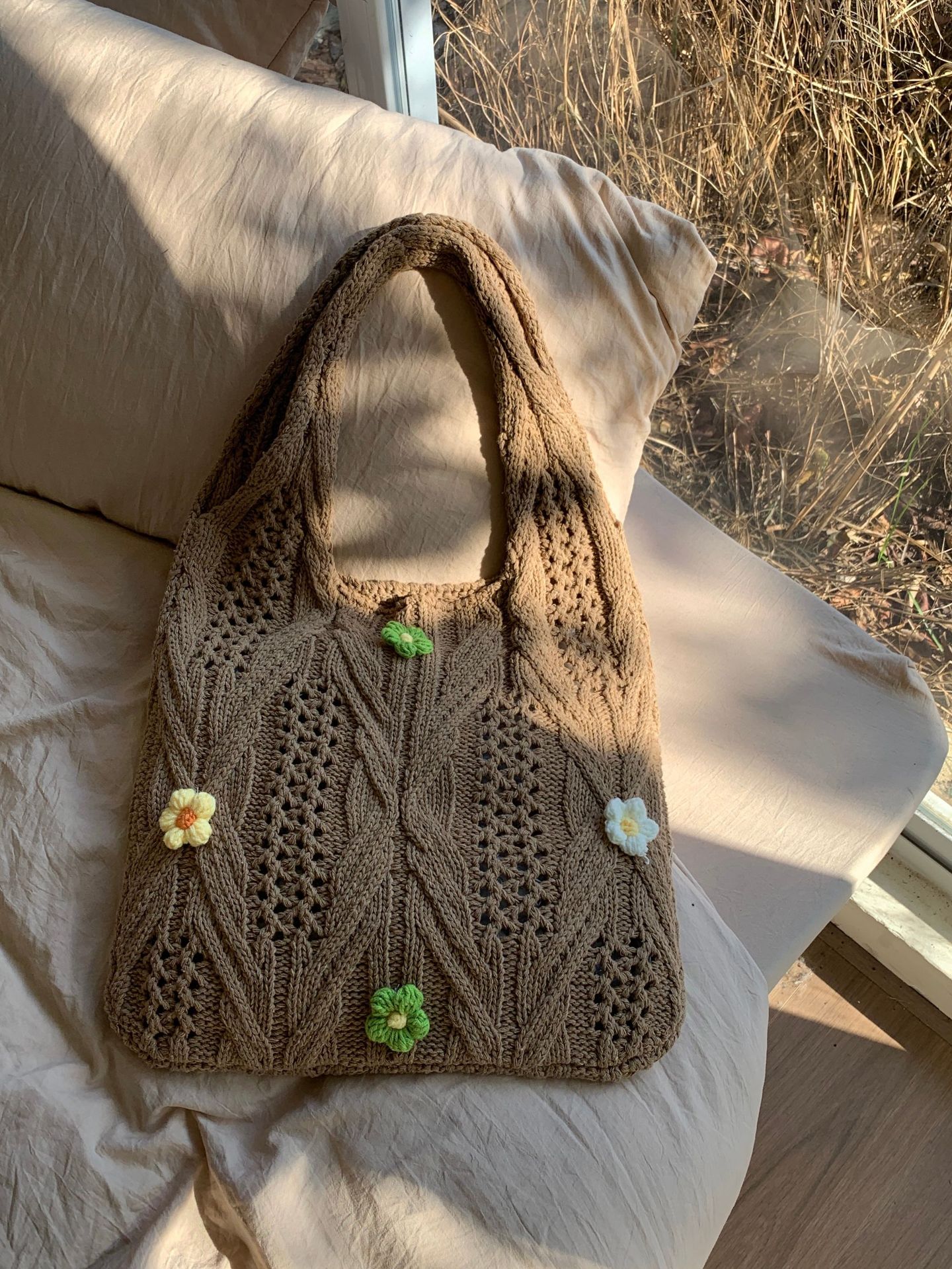 새로운 국경 양모 니트 백 짠 가방 꽃 틈새 올 매치 가방 여성용 하이 엔드 어깨 가방스토어 가기