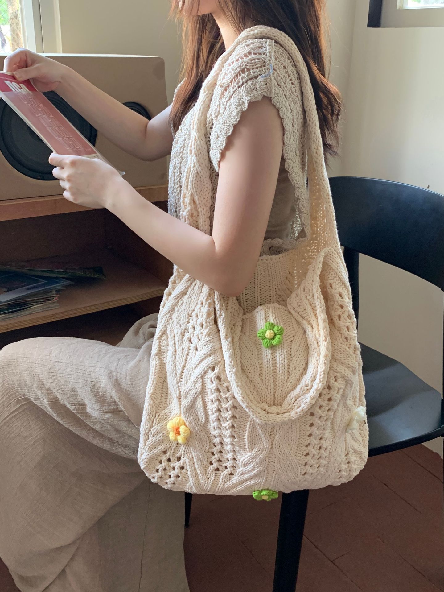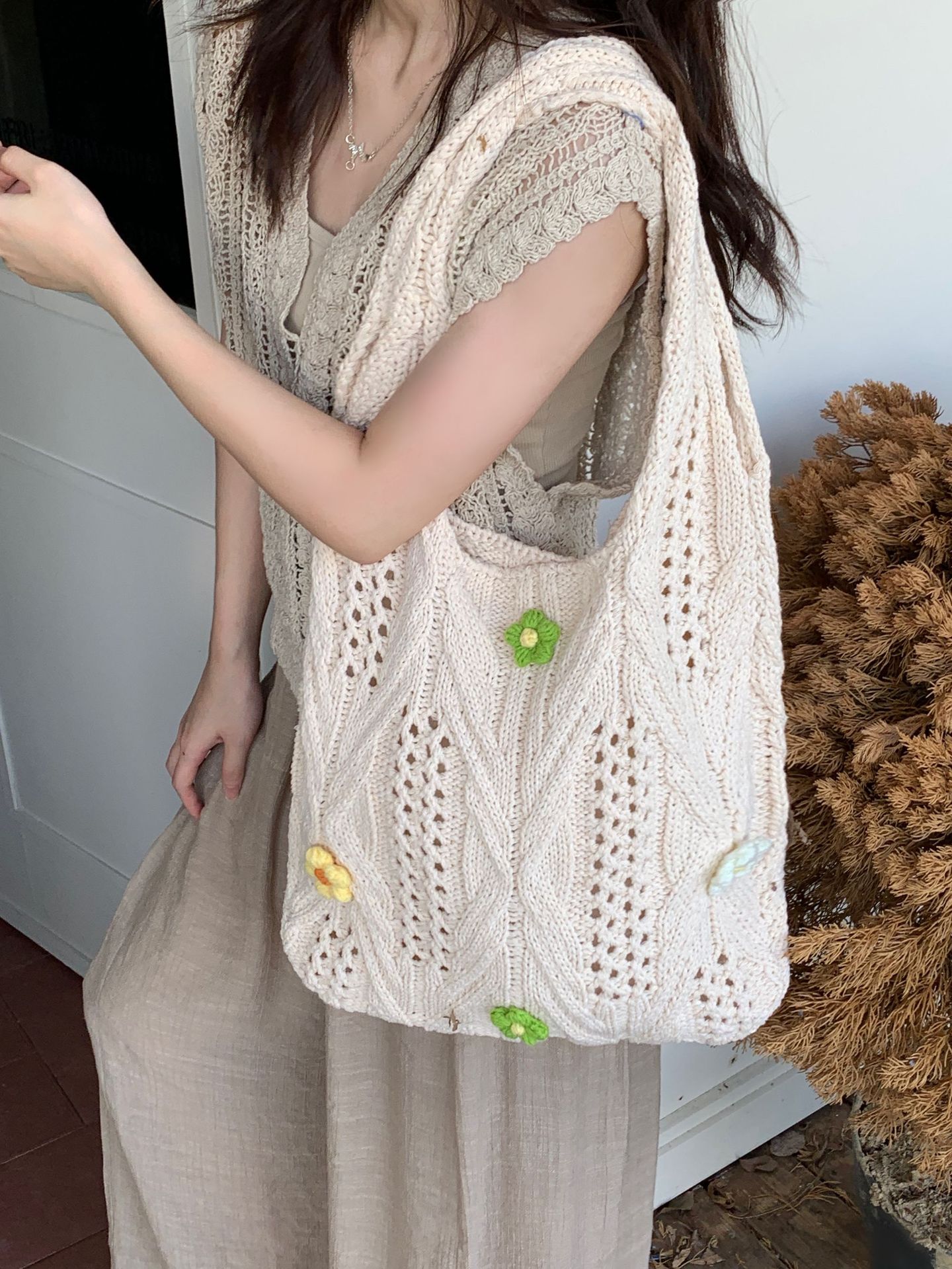 새로운 국경 양모 니트 백 짠 가방 꽃 틈새 올 매치 가방 여성용 하이 엔드 어깨 가방