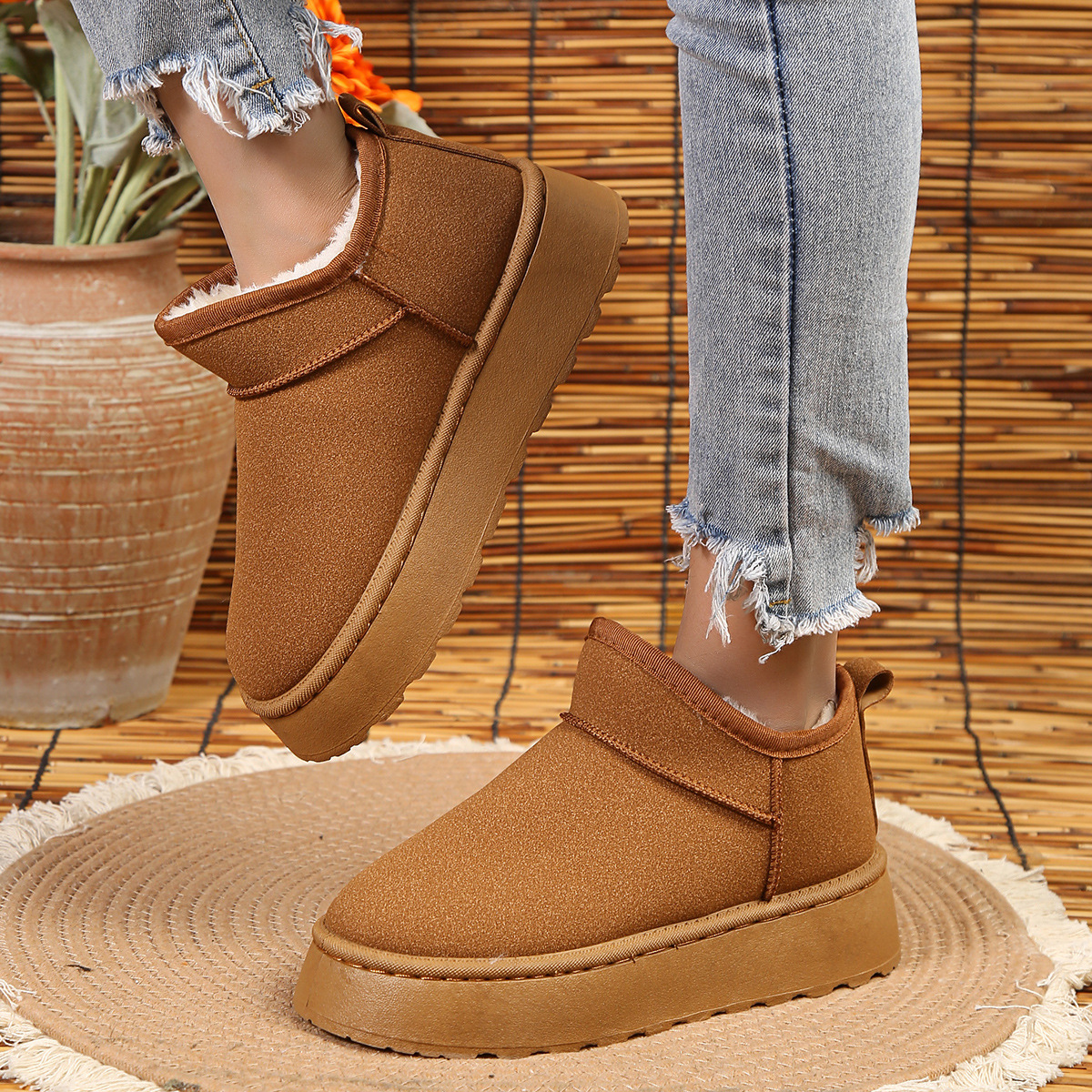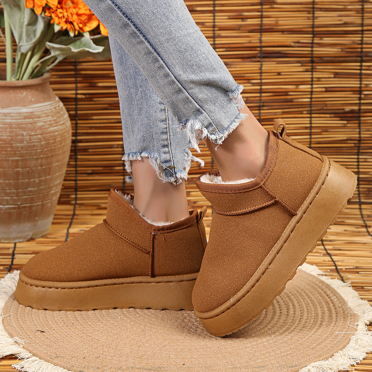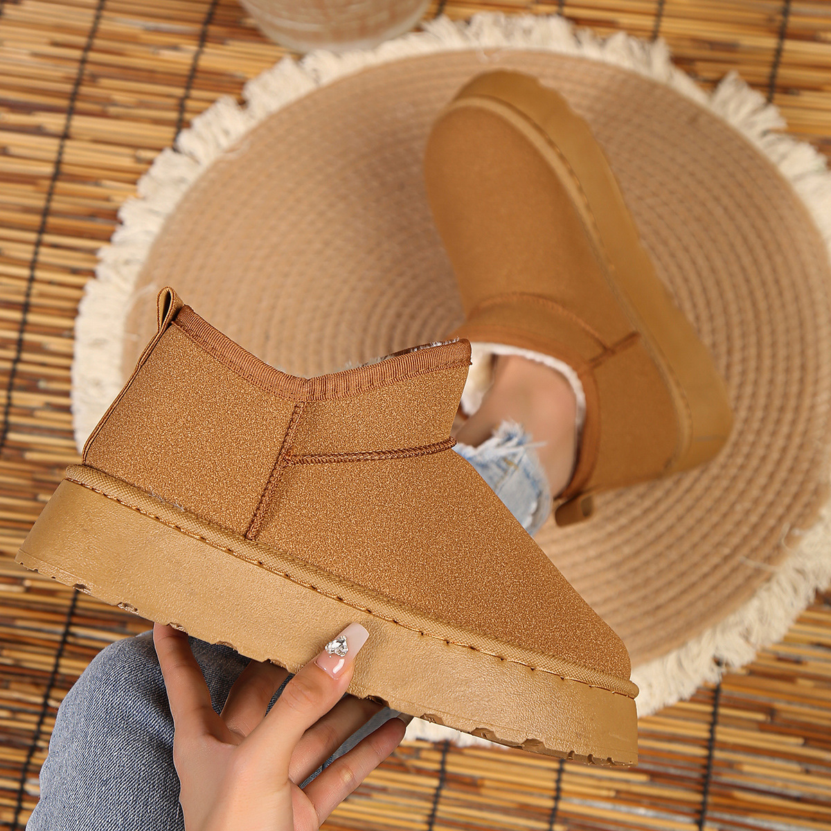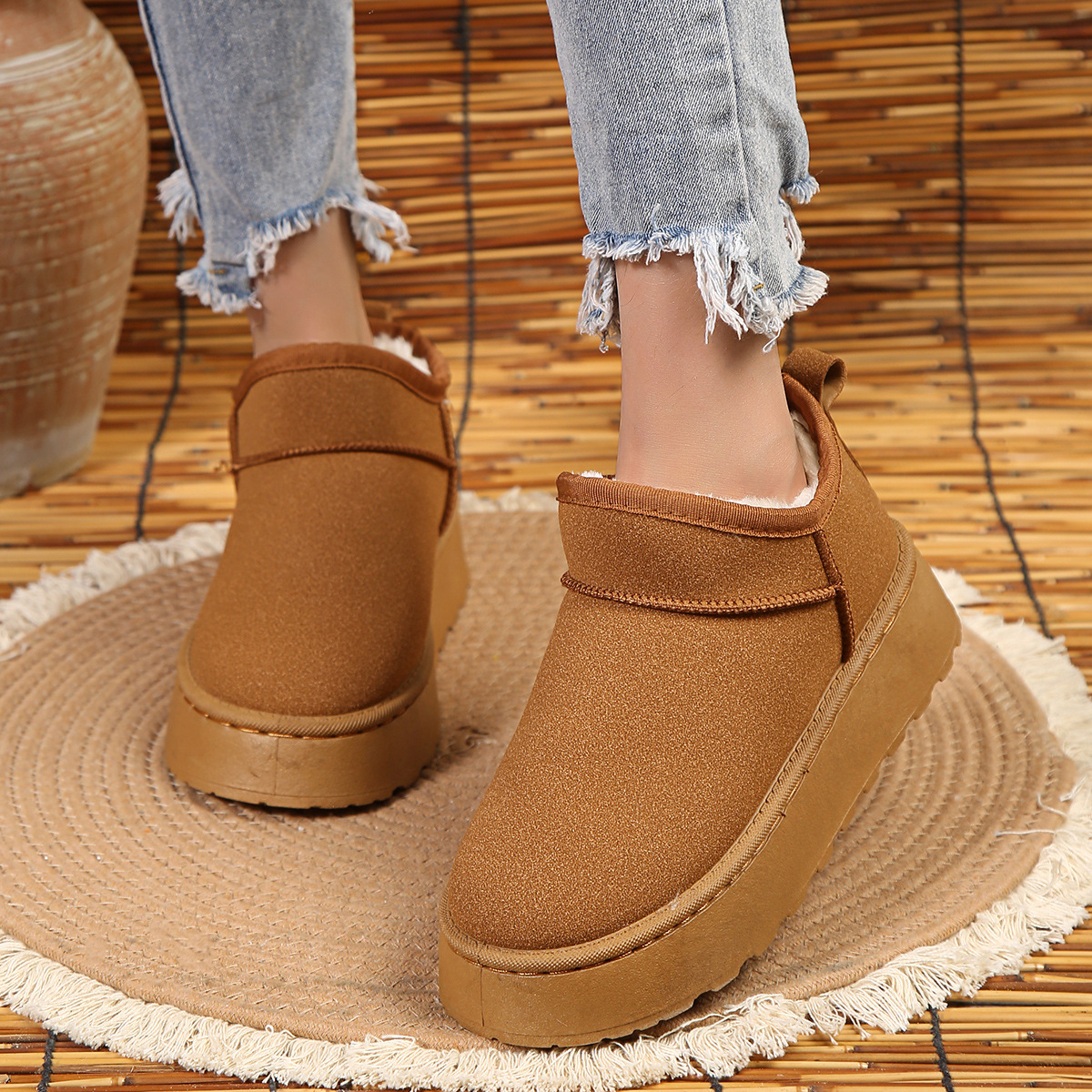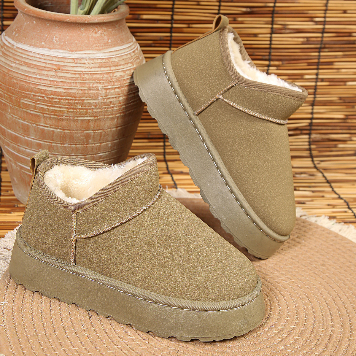 두꺼운 바닥 외부 착용 짧은 튜브 스노우 부츠 여성 2023 겨울 새로운 조커 기모 두꺼운 따뜻한 면화 신발 도매