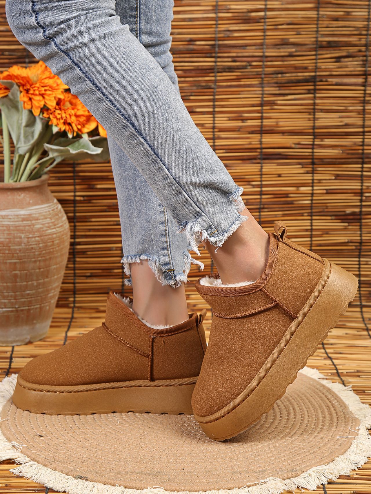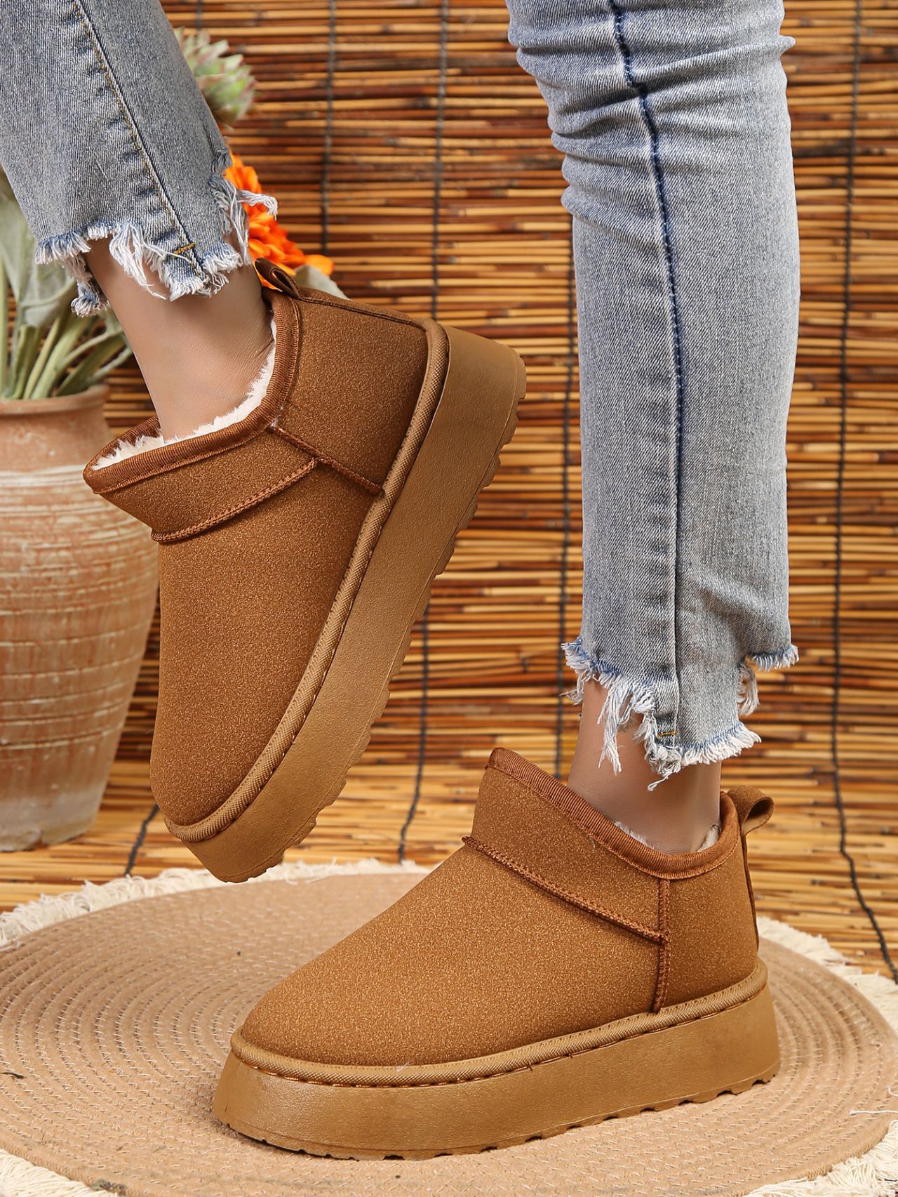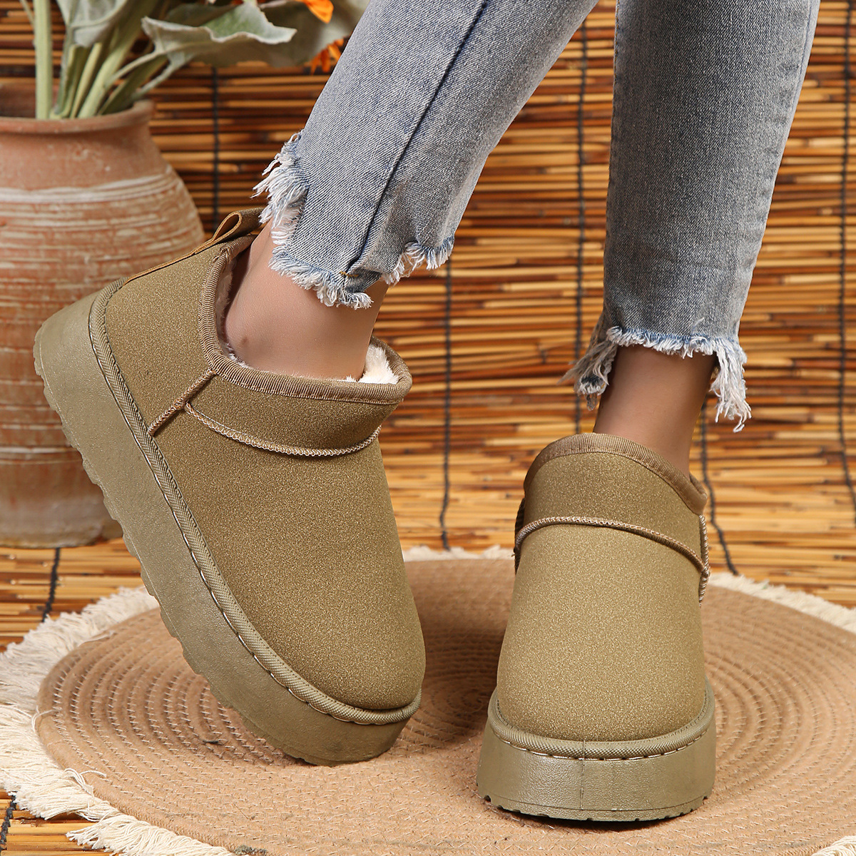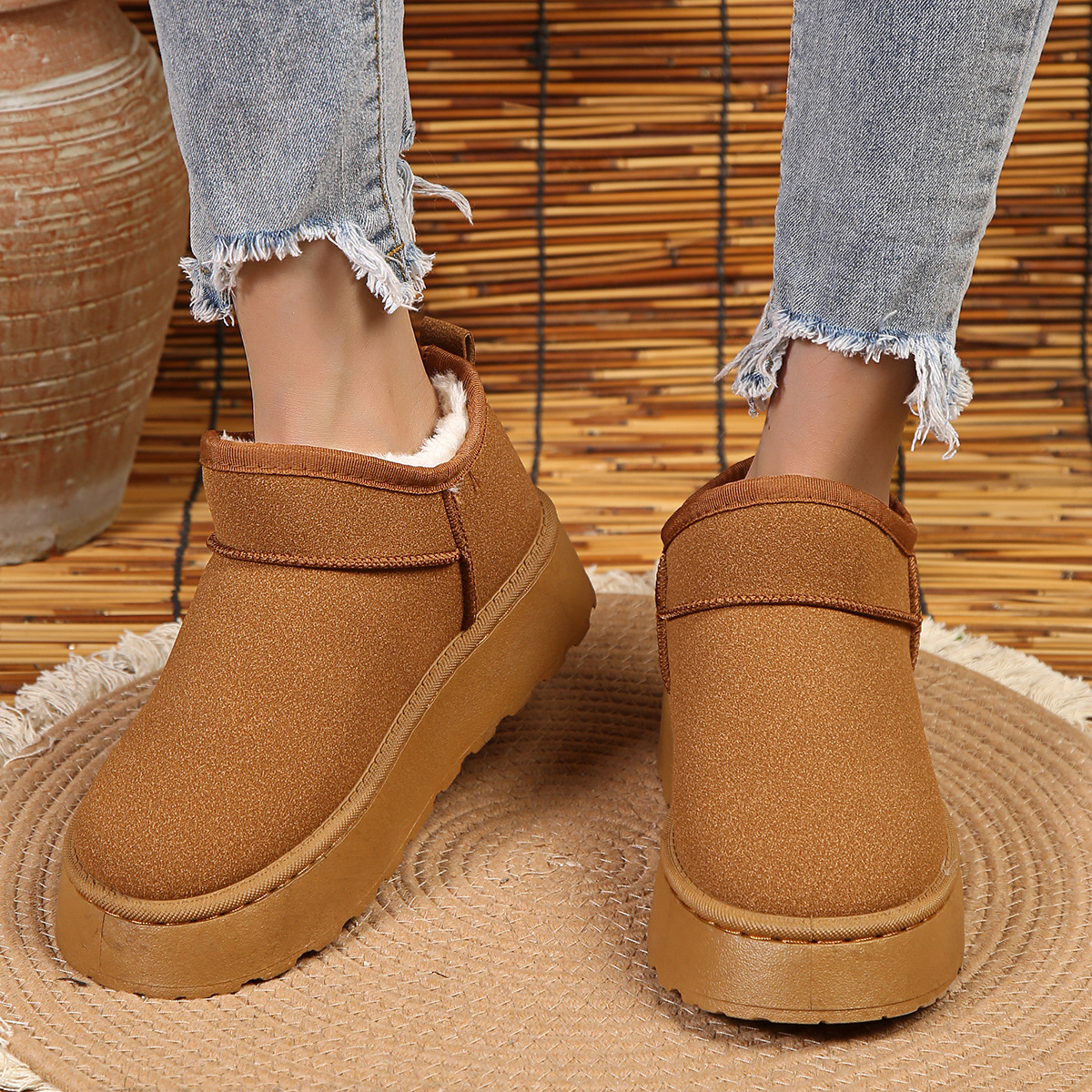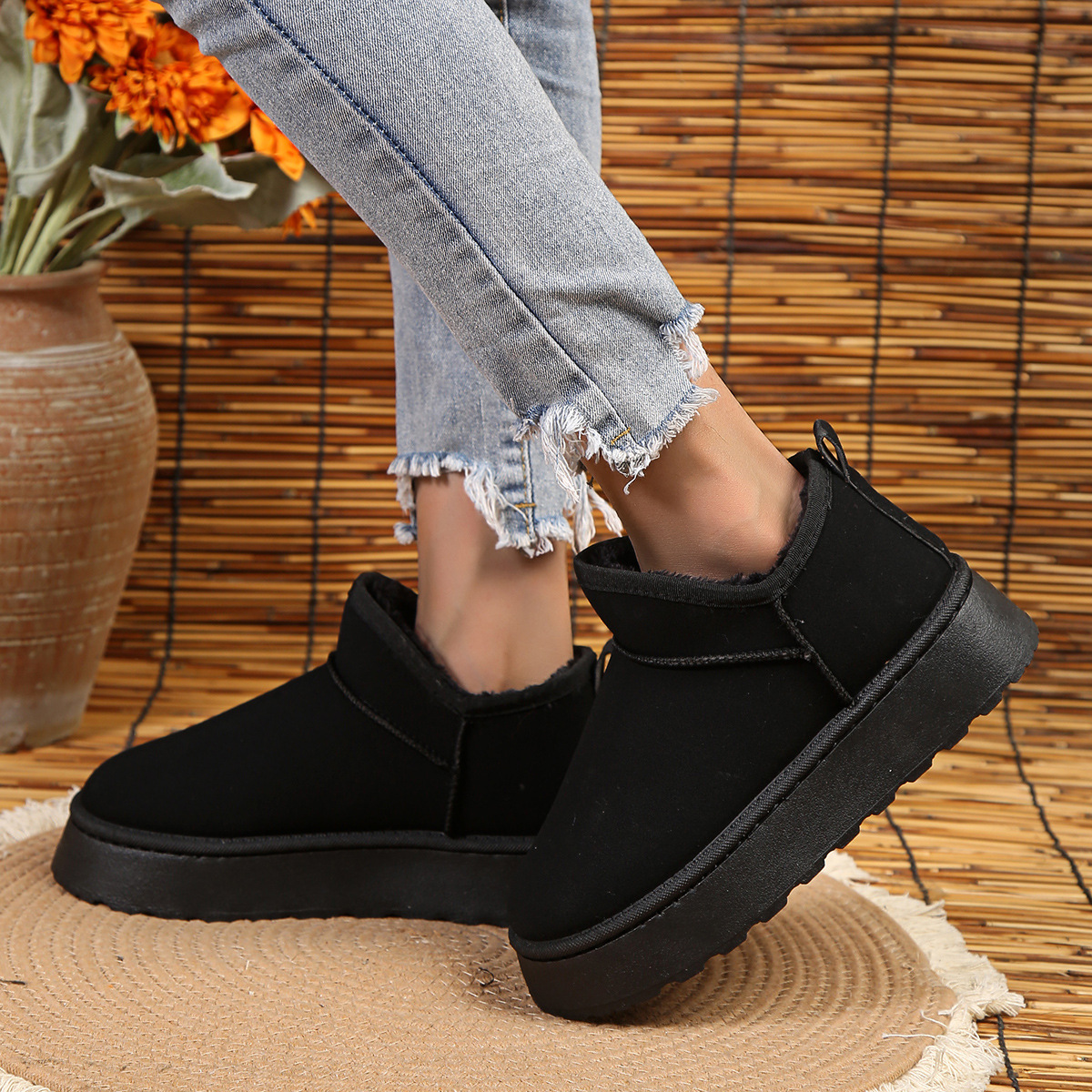 두꺼운 바닥 외부 착용 짧은 튜브 스노우 부츠 여성 2023 겨울 새로운 조커 기모 두꺼운 따뜻한 면화 신발 도매