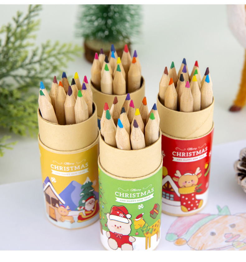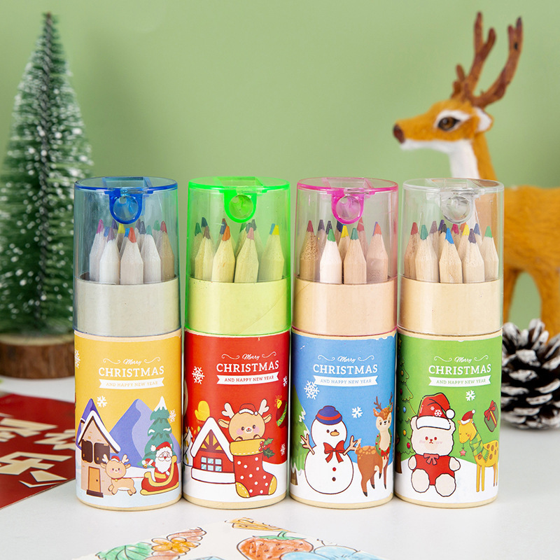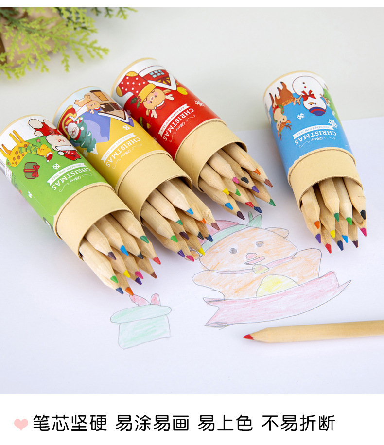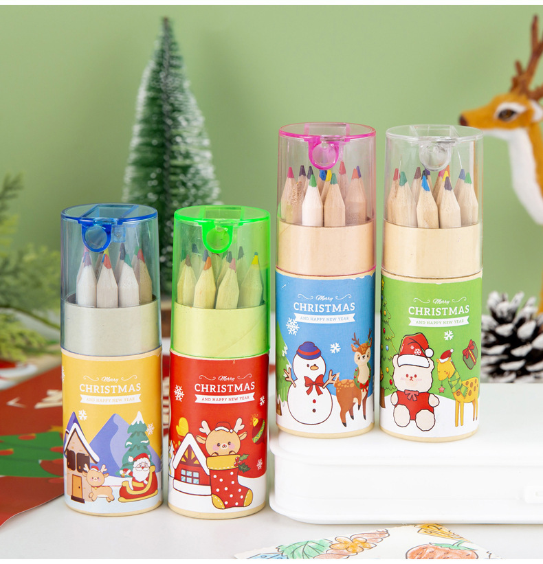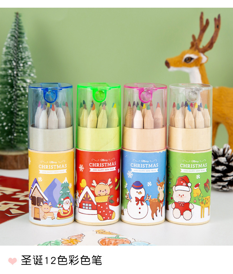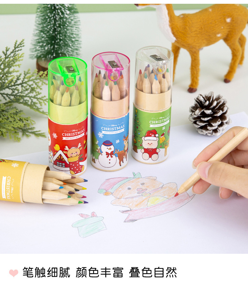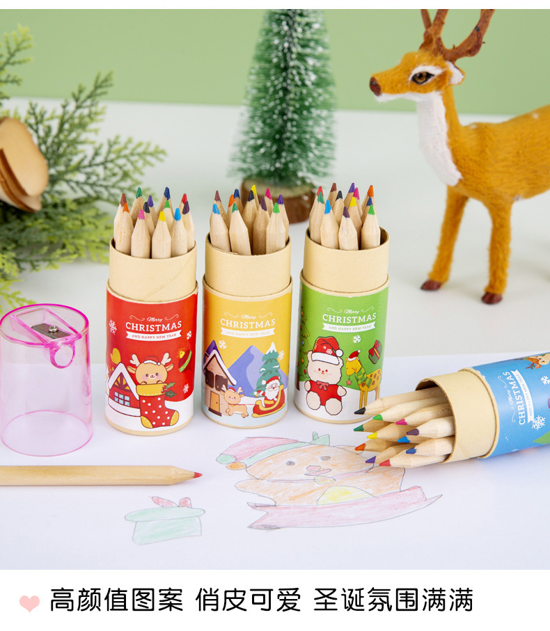 크리스마스 컬러 연필 세트 12 색 어린이 만화 컬러 페인팅 페인팅 아트 브러쉬 유치원 휴일 선물스토어 가기