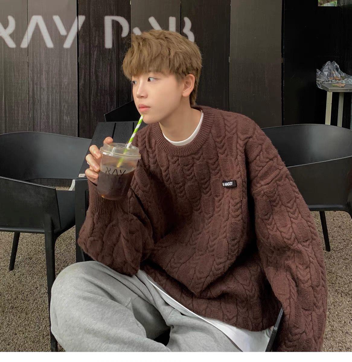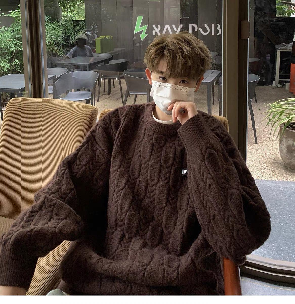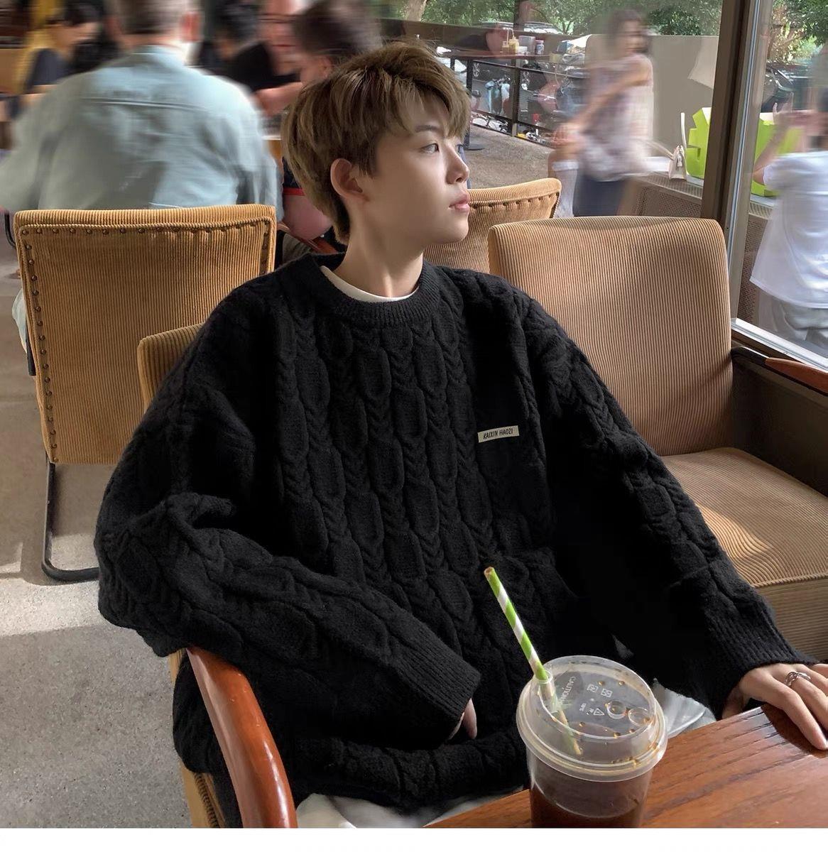 일본 트위스트 스웨터 남자의 겨울 두꺼운 따뜻한 소년 게으른 바람 느슨한 가을과 겨울 스웨터 코트 도매스토어 가기