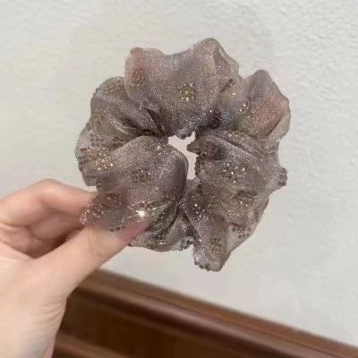 고급 레트로 격자 무늬 대형 창자 반지 유행 절묘한 더블 레이어 Organza 헤어 로프 여성을위한 전체 다이아몬드 주름 헤어 액세서리