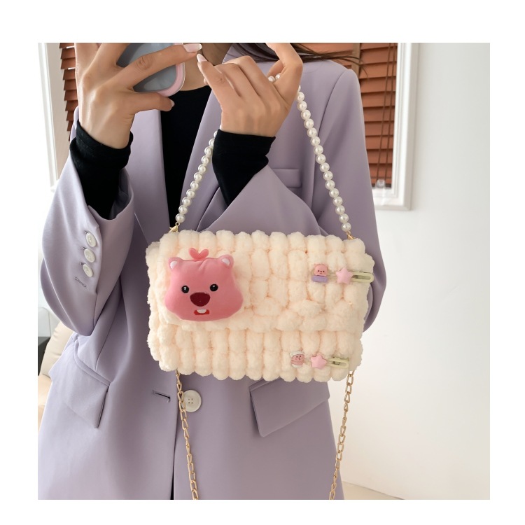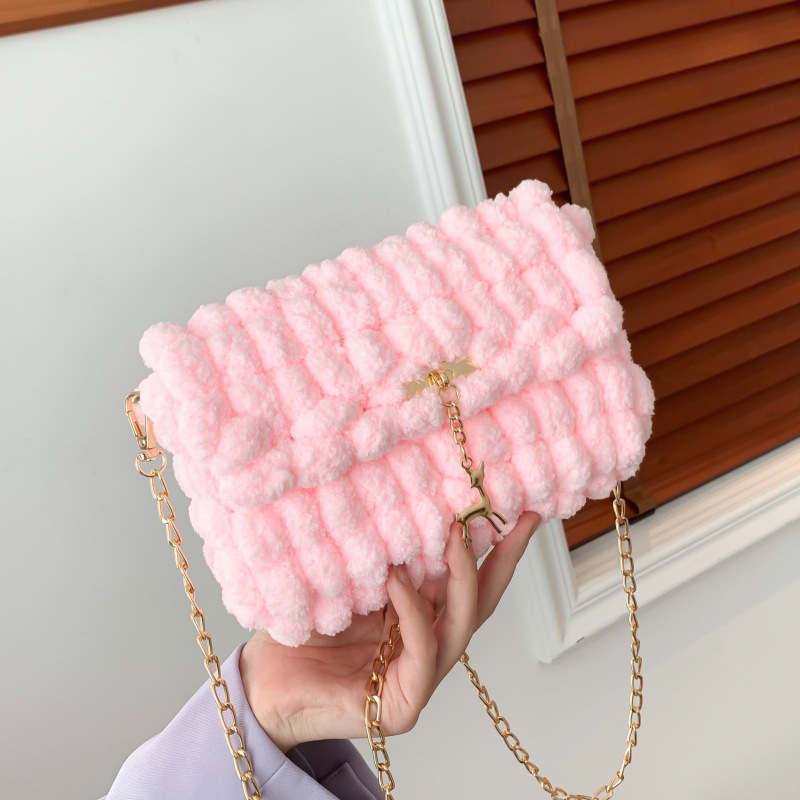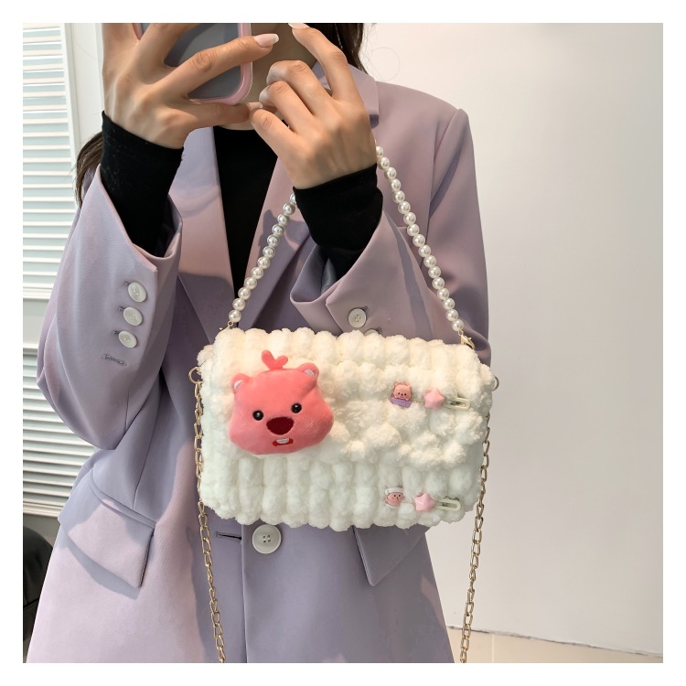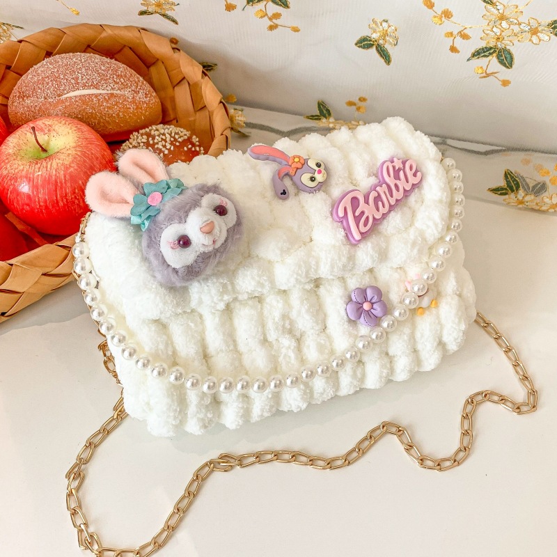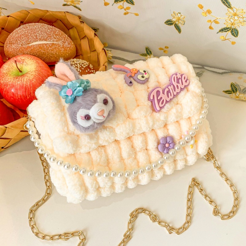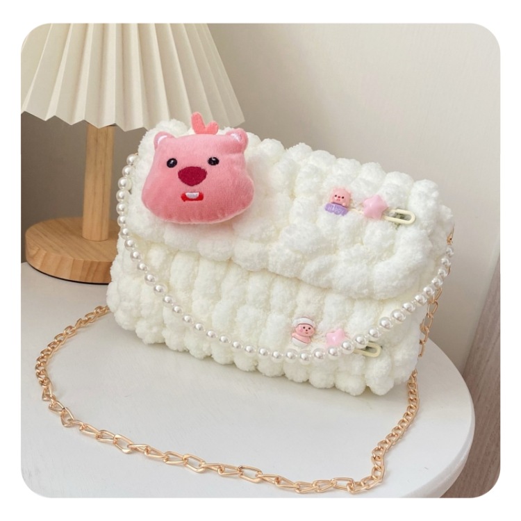 수제 루피 비버 수제 짠 가방 DIY 소재 가방 여자 친구를 위해 완성 된 양모 귀여운 크로스 바디 백