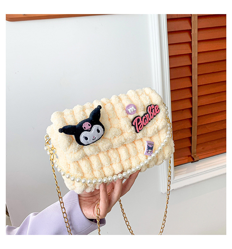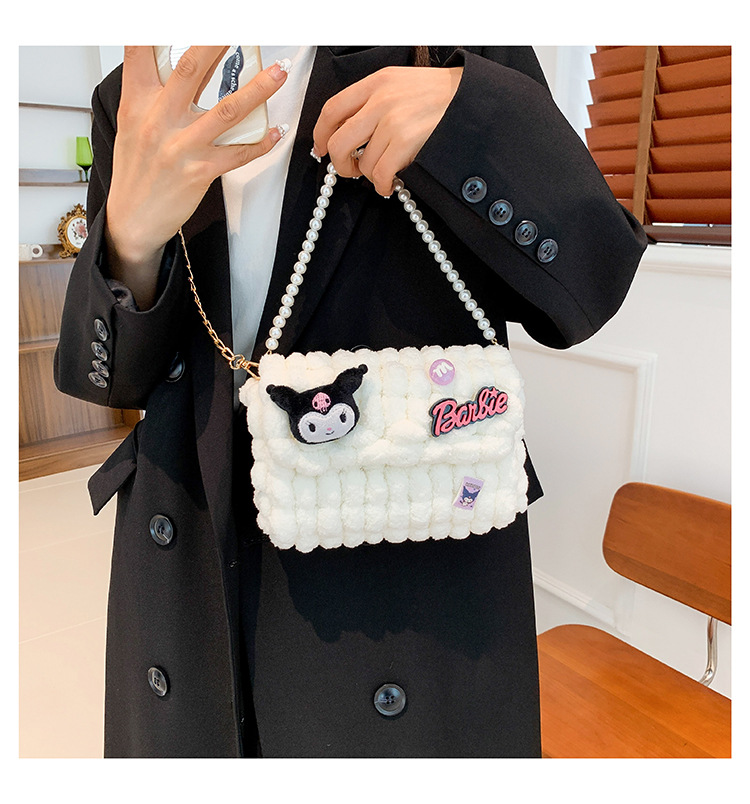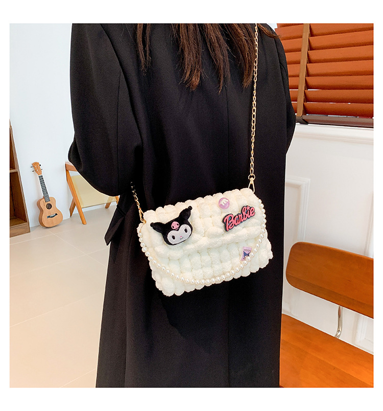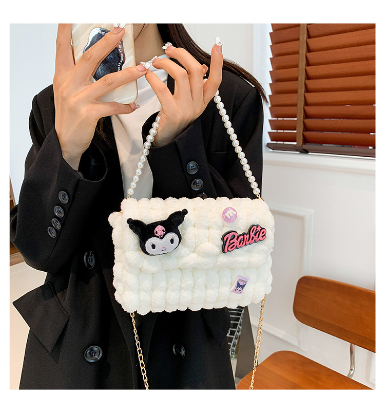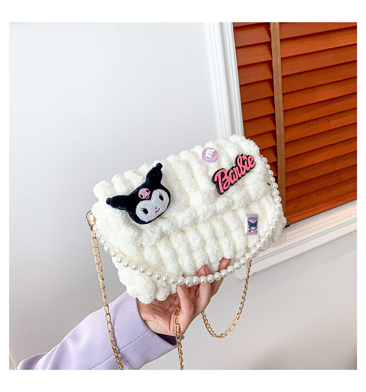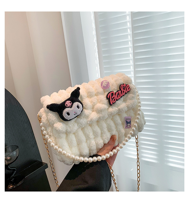 • 밀크 살구색 (Kuromi) + 진주 핸드헬드 + 체인 숄더 스트랩 (재료 가방 + 튜토리얼)