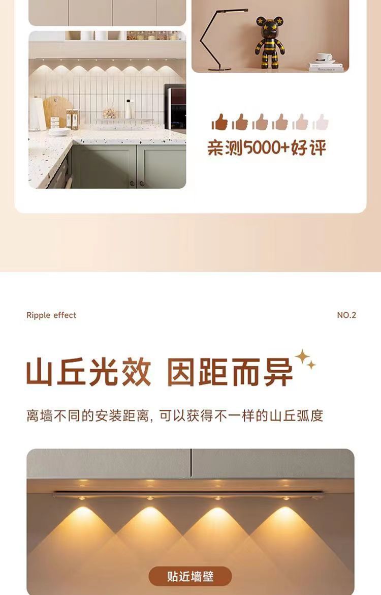 스마트 인체 감지등, 작은 언덕 분위기 야간등, 자석 부착 충전식 캐비닛 조명, 라이트 럭셔리 스타일