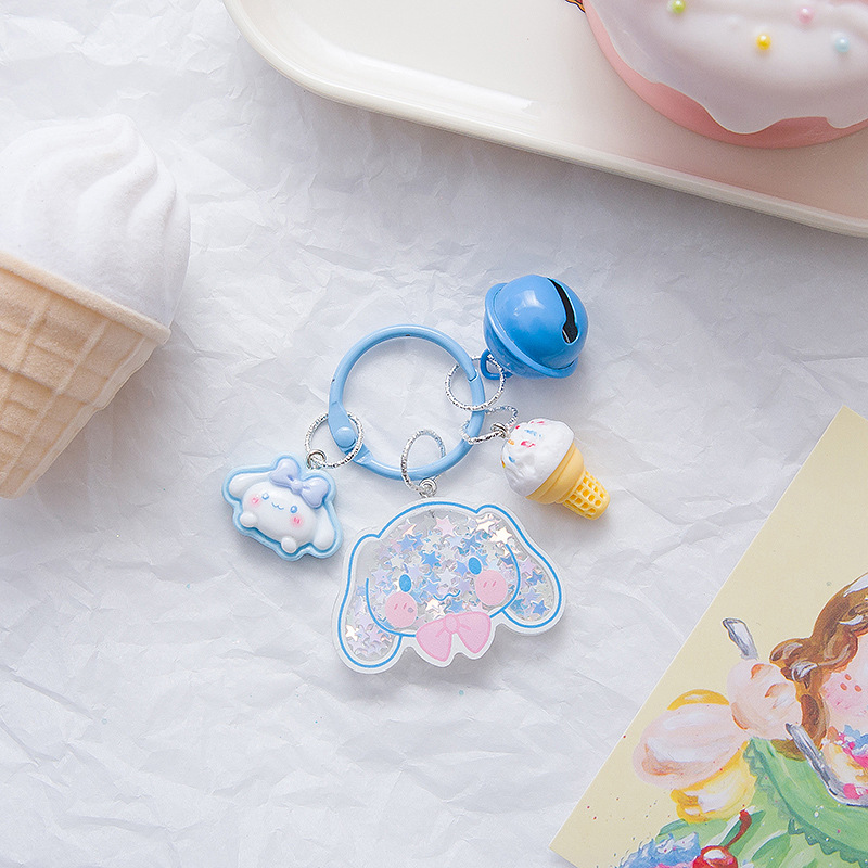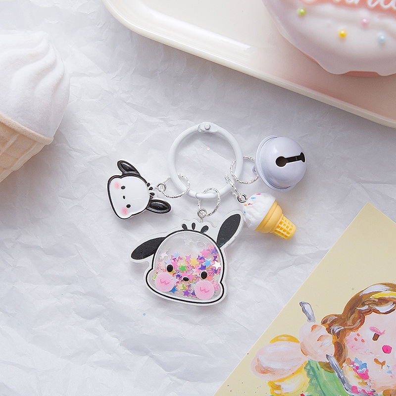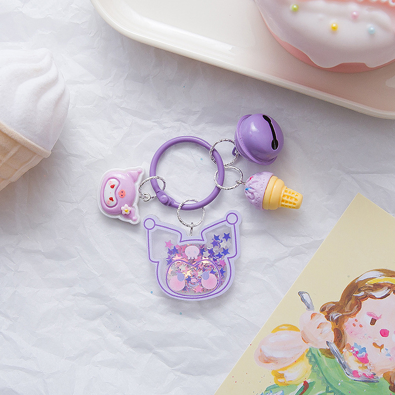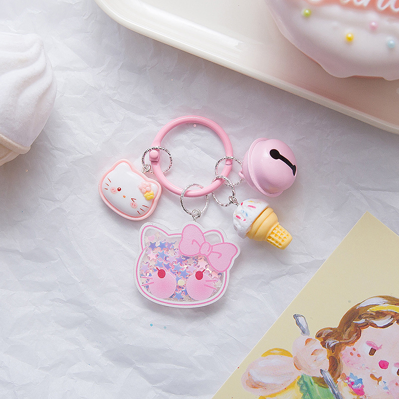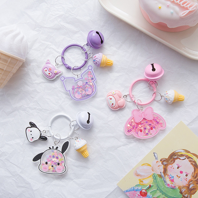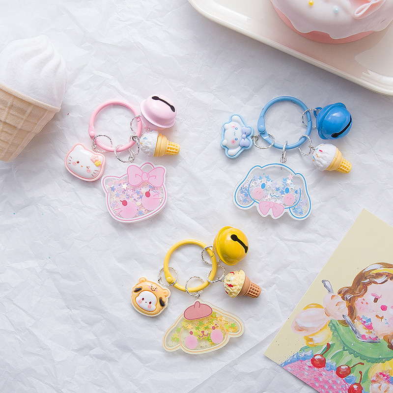크리 에이 티브 산리오 퀵 샌드 스팽글 키 체인 인 스타일 펜던트 소녀 하트 수제 귀여운 아크릴 쉐이크 조각스토어 가기