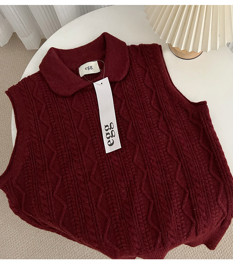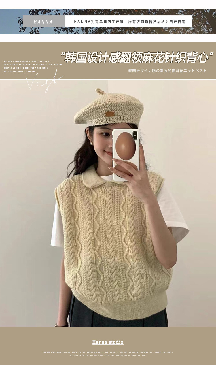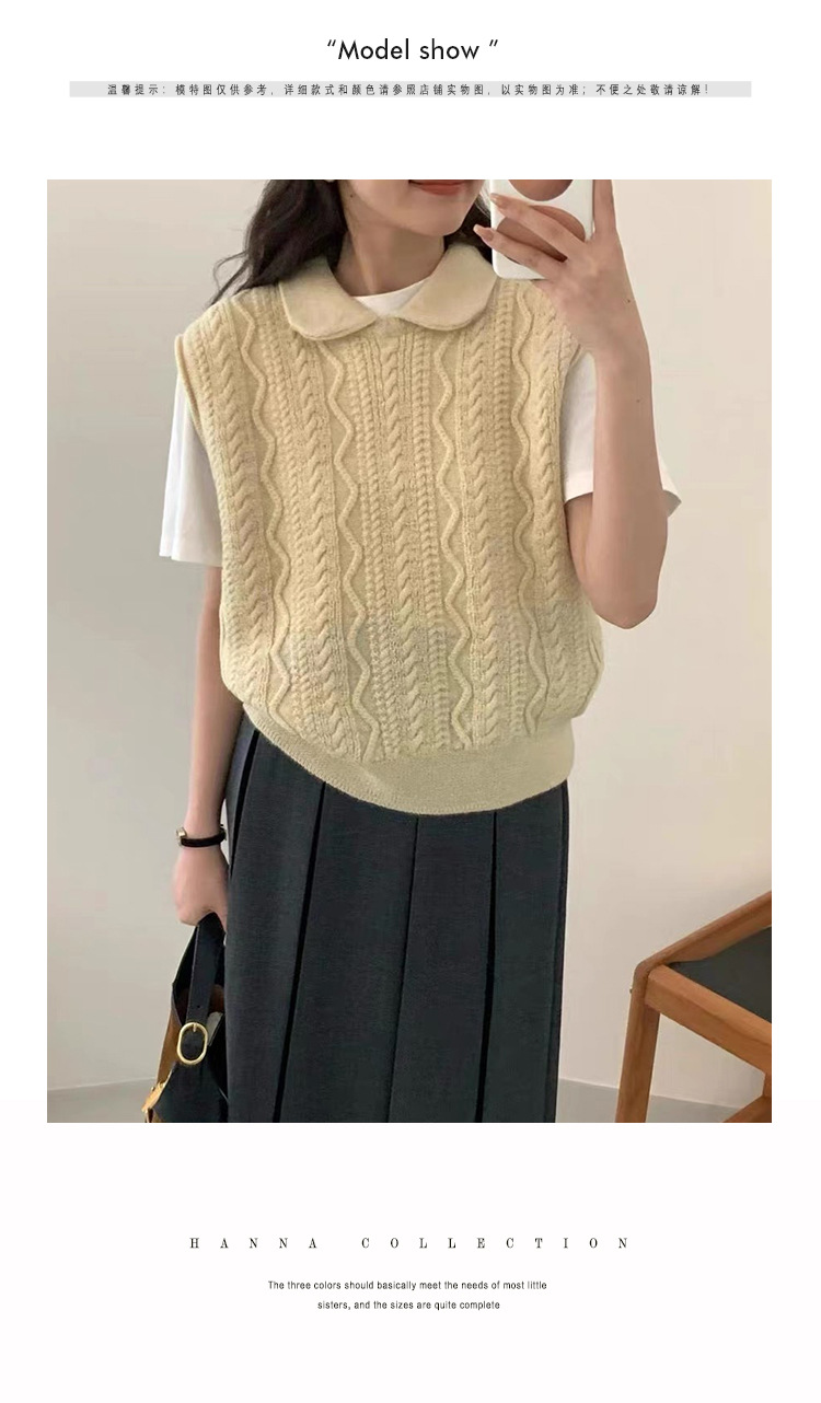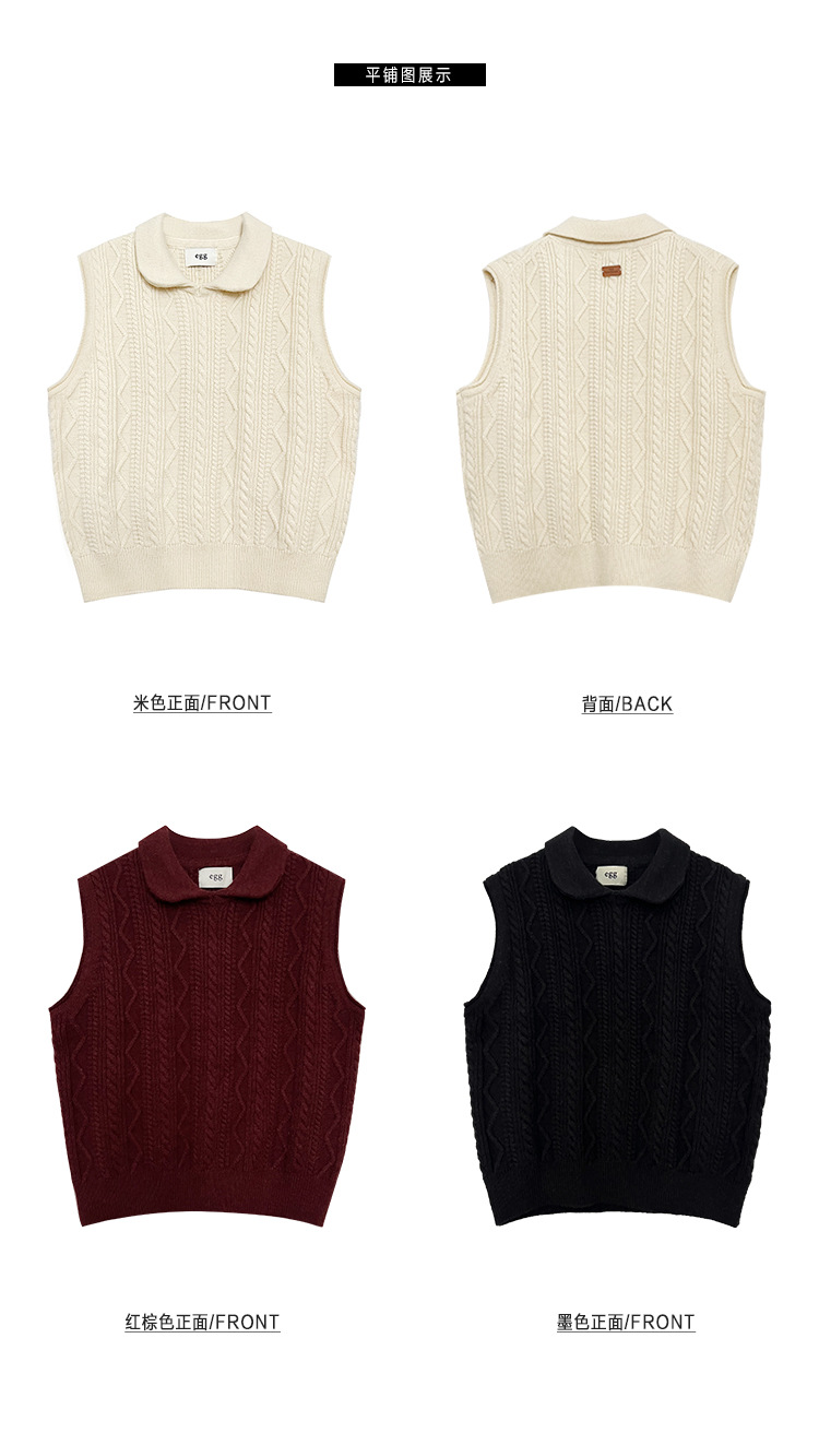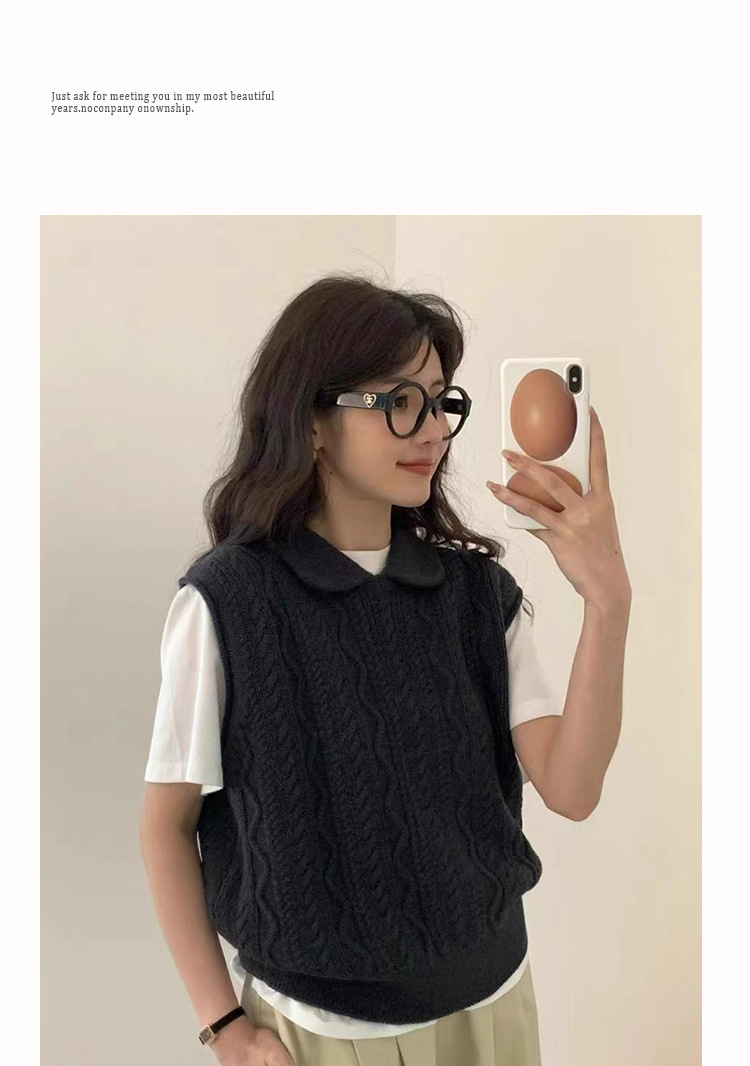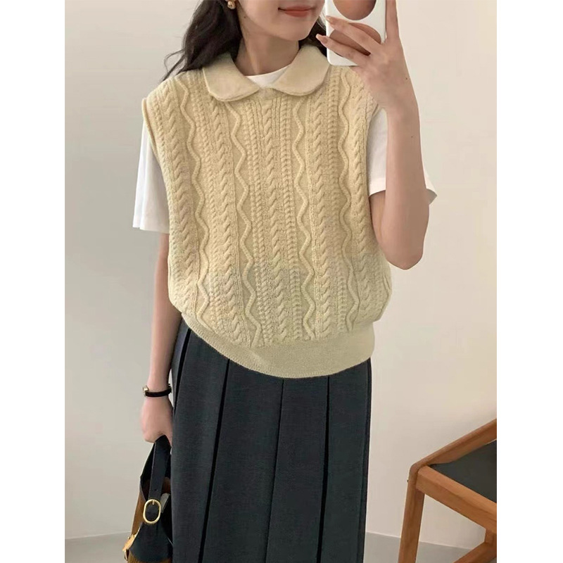 한국 동대문 에그홈 젊어보이는 레이스 칼라 트위스트 니트 루즈핏 조끼 봄가을 여성용 이너웨어스토어 가기