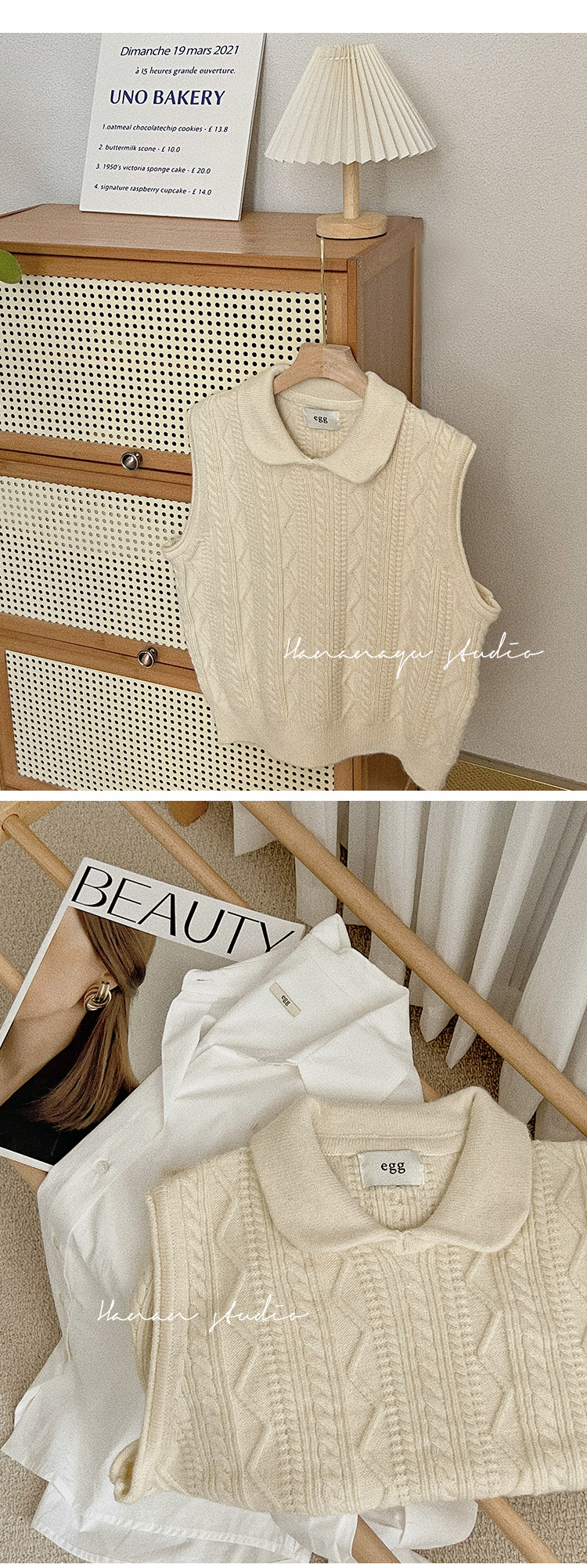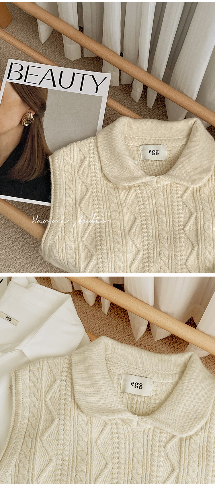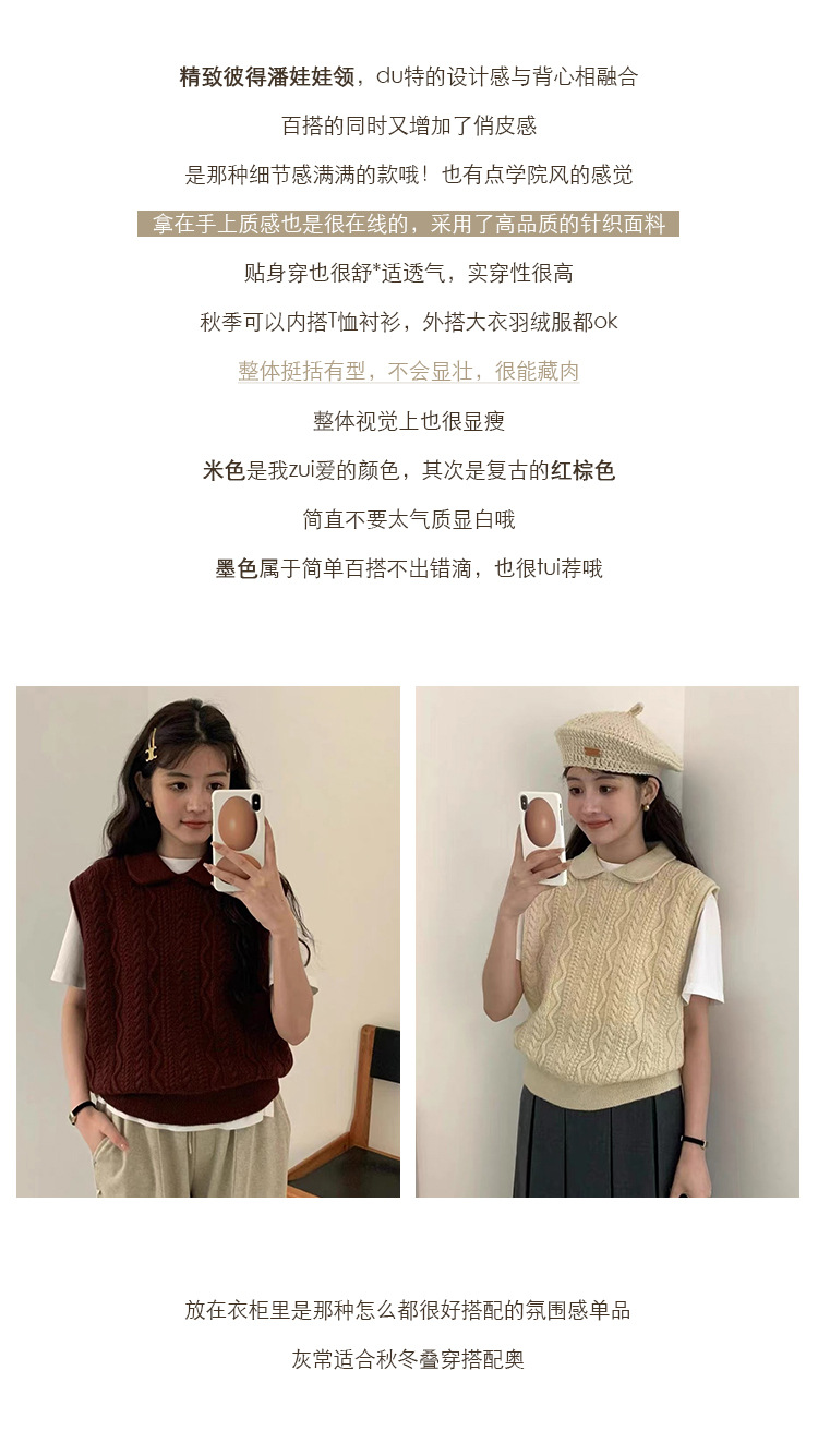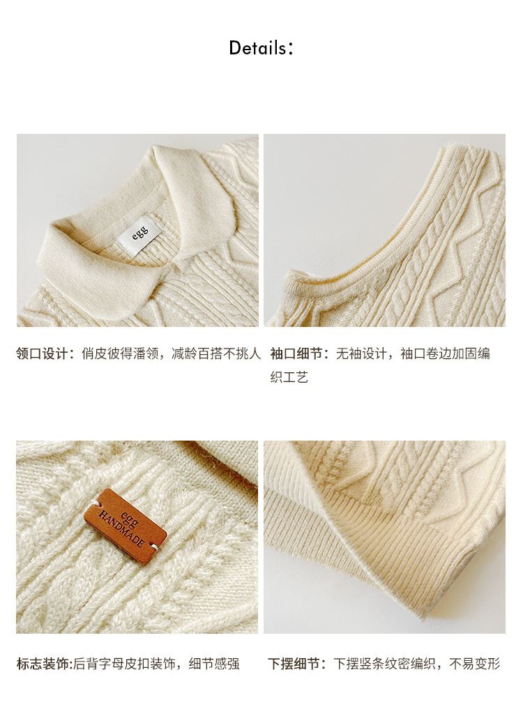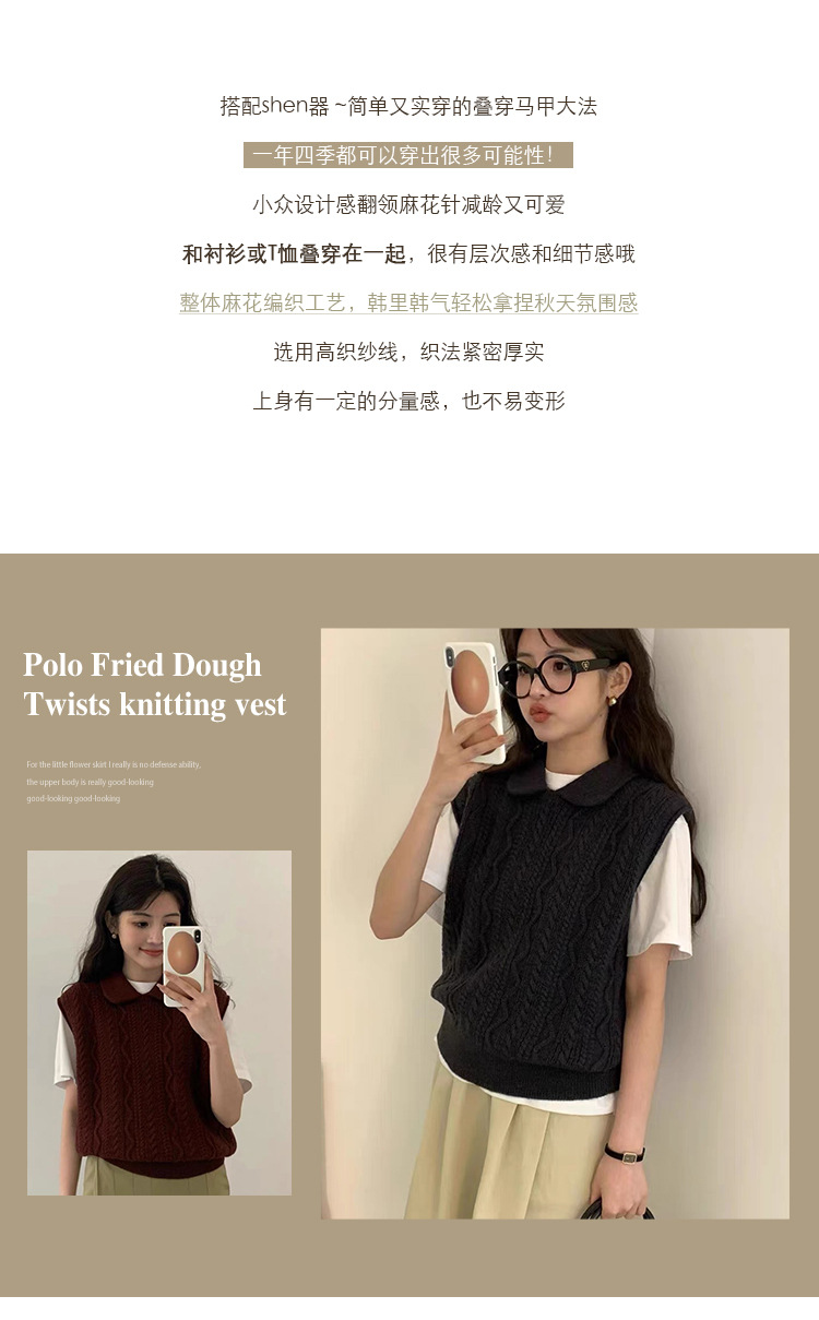 한국 동대문 에그홈 젊어보이는 레이스 칼라 트위스트 니트 루즈핏 조끼 봄가을 여성용 이너웨어스토어 가기