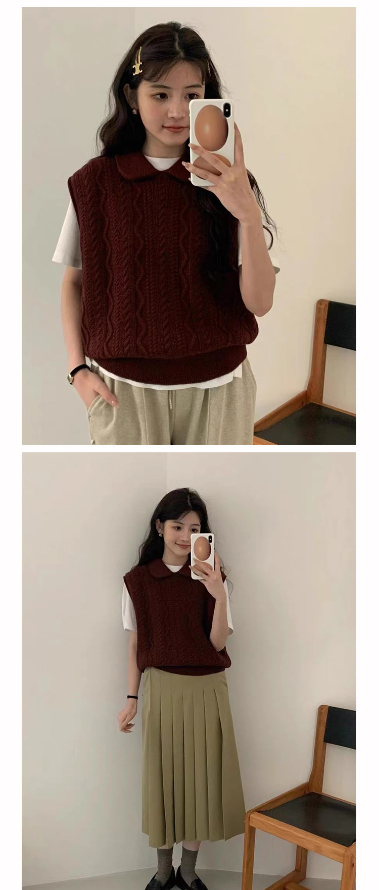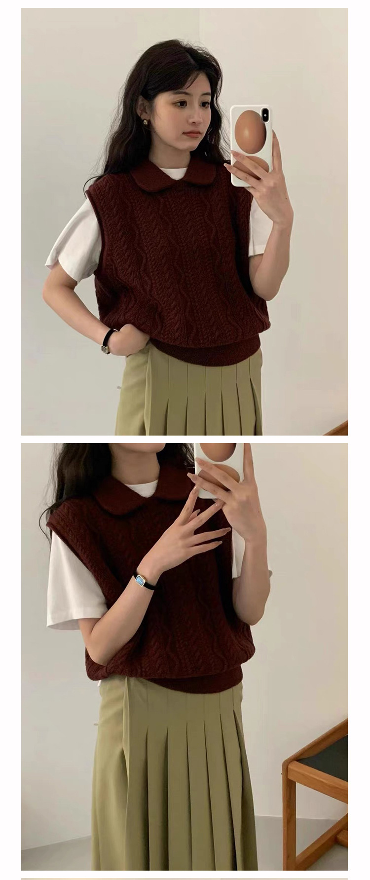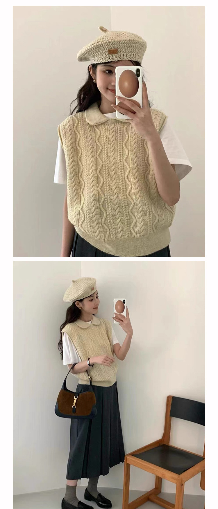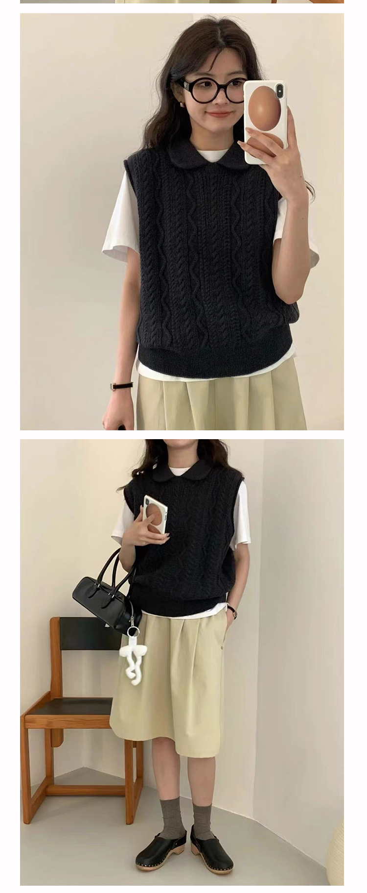 한국 동대문 에그홈 젊어보이는 레이스 칼라 트위스트 니트 루즈핏 조끼 봄가을 여성용 이너웨어스토어 가기