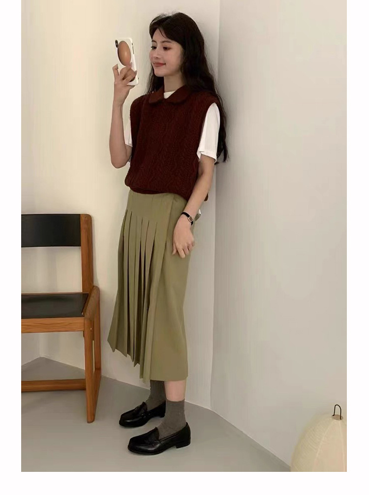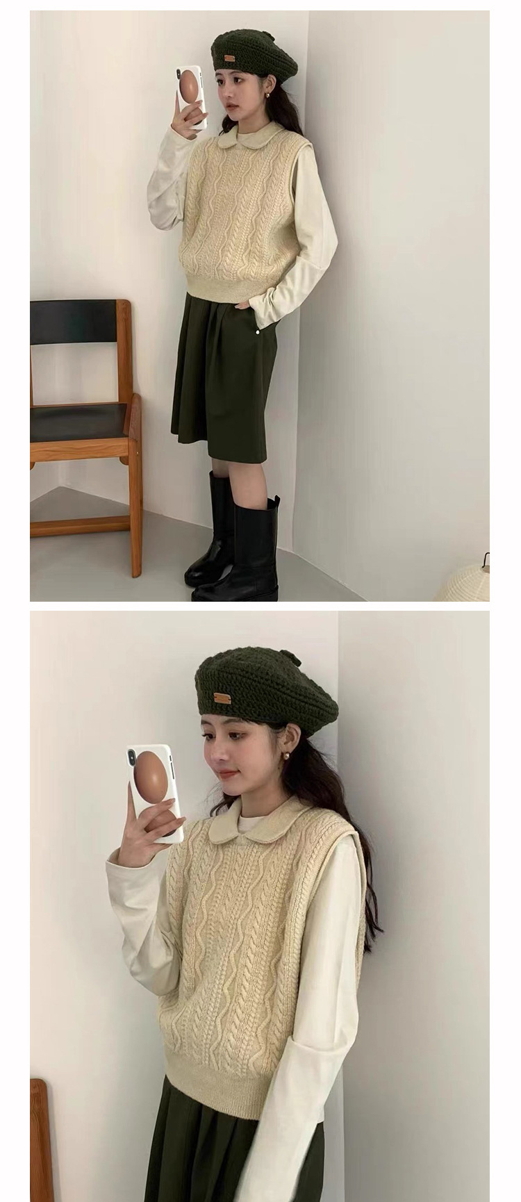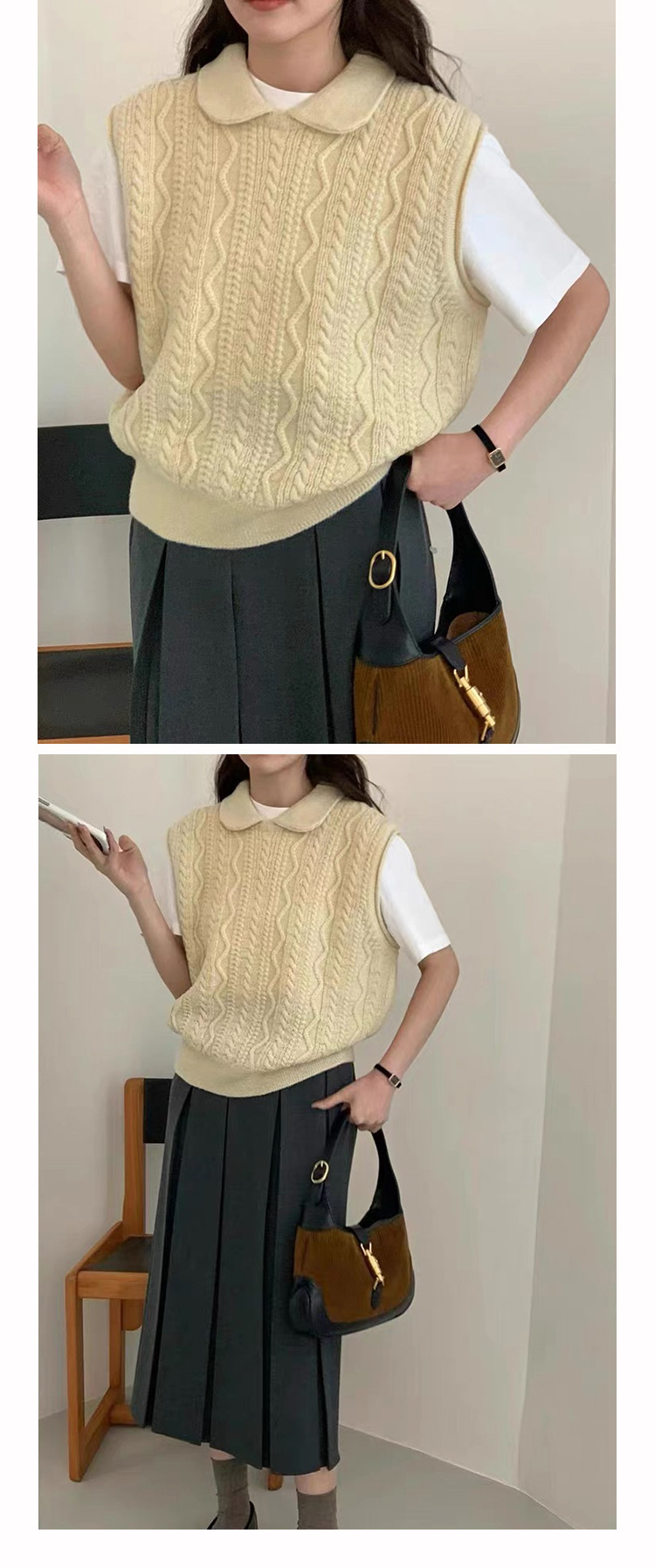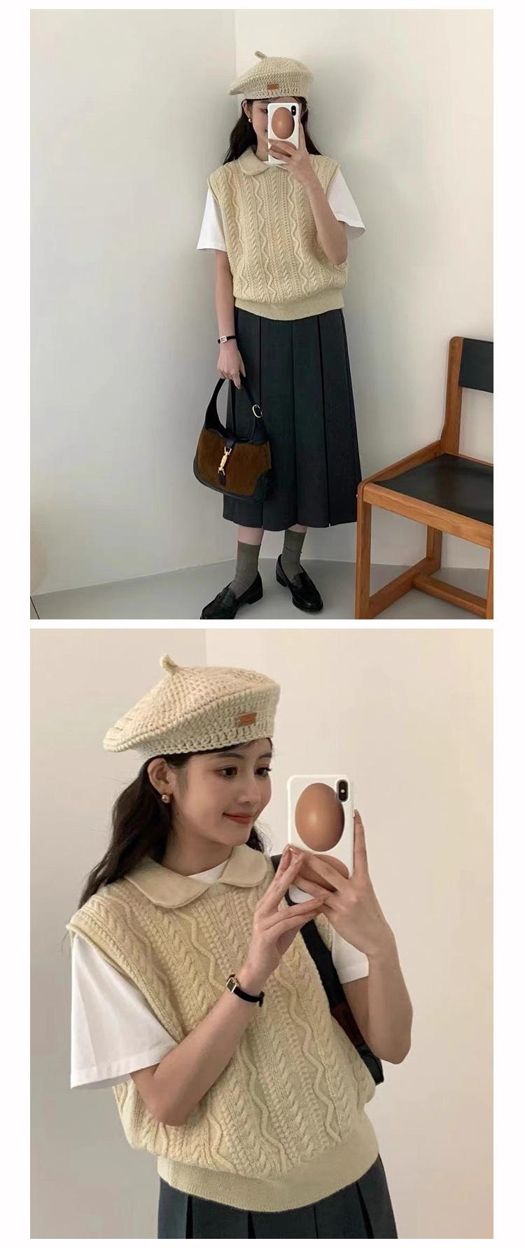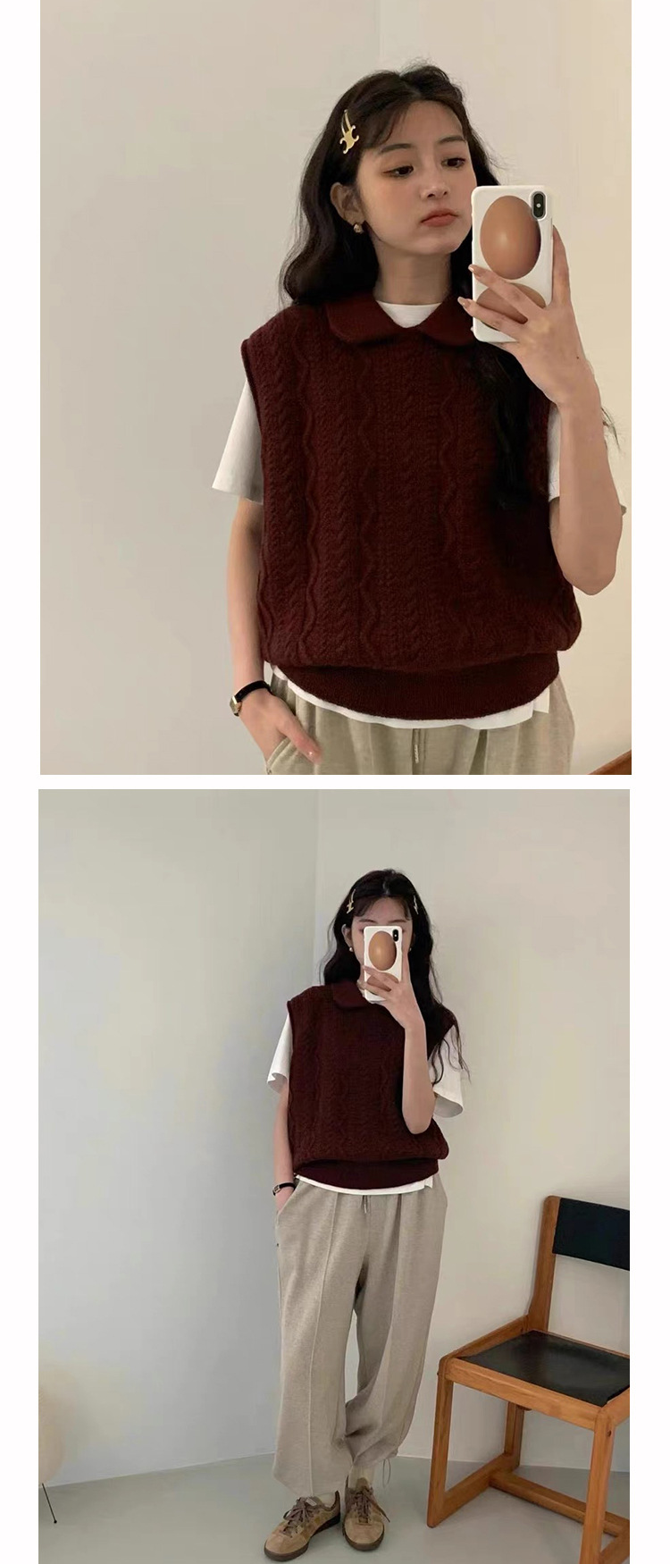 한국 동대문 에그홈 젊어보이는 레이스 칼라 트위스트 니트 루즈핏 조끼 봄가을 여성용 이너웨어스토어 가기