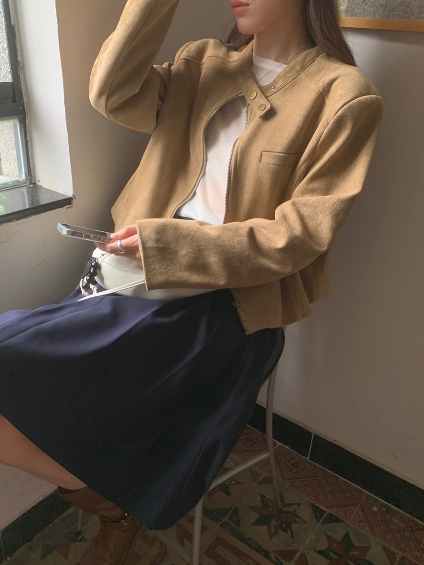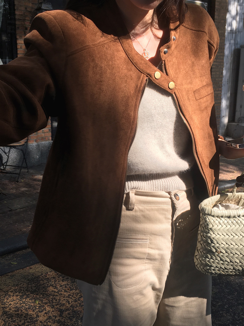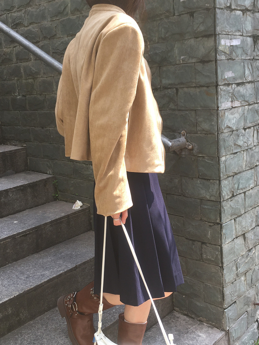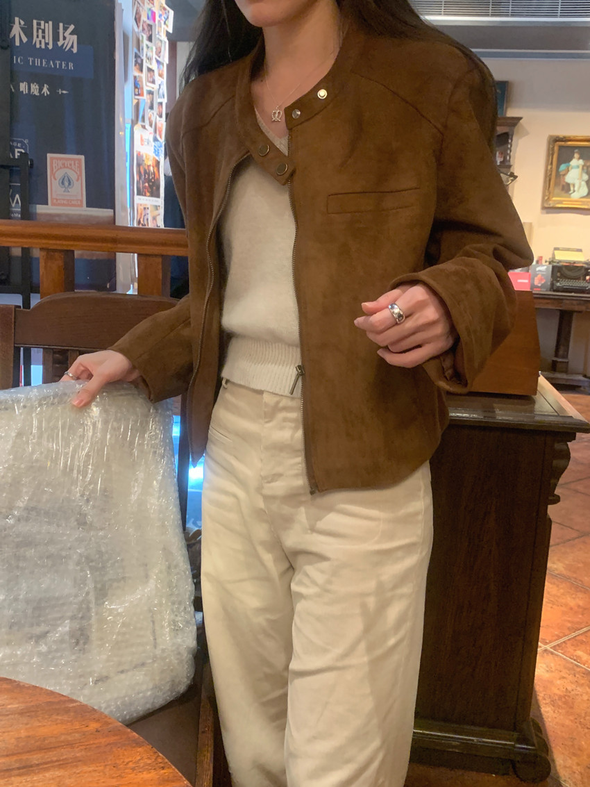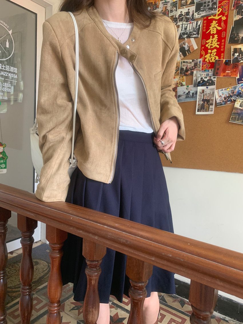 미국 복고풍 자전거 의류 사슴 가죽 벨벳 지퍼 스탠드 칼라 재킷 여성의 가을과 겨울 쿨 풀 짧은 재킷 탑 2 컬러스토어 가기