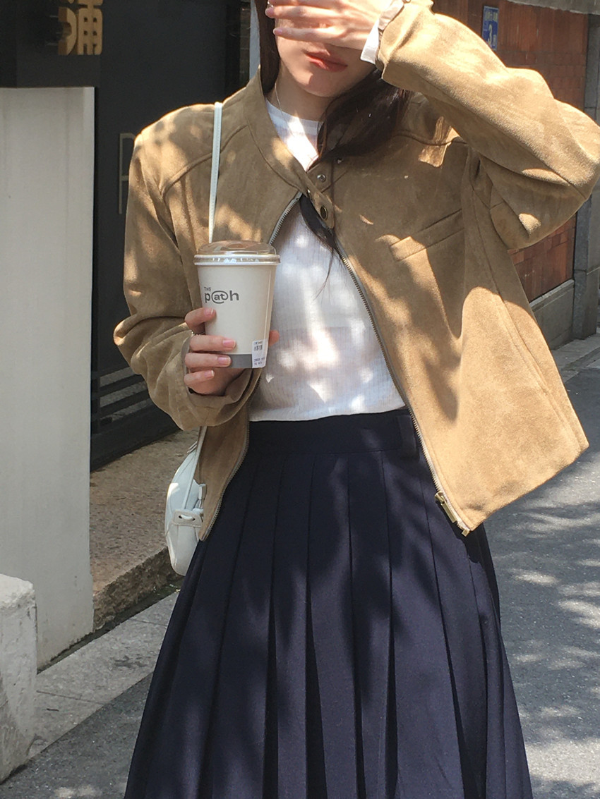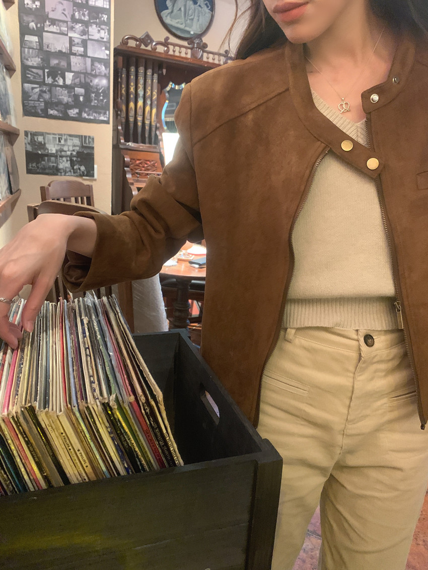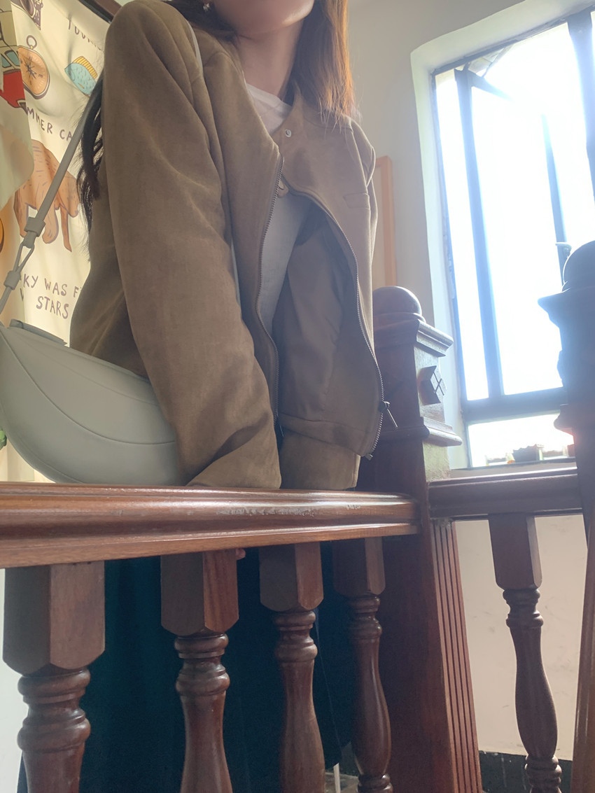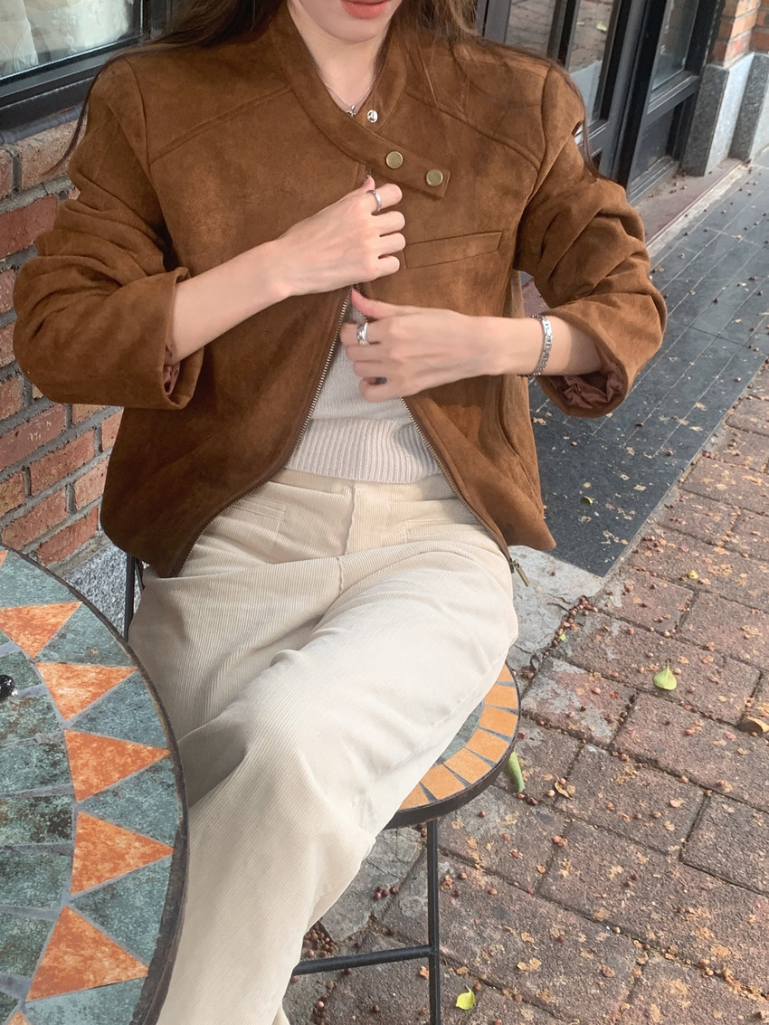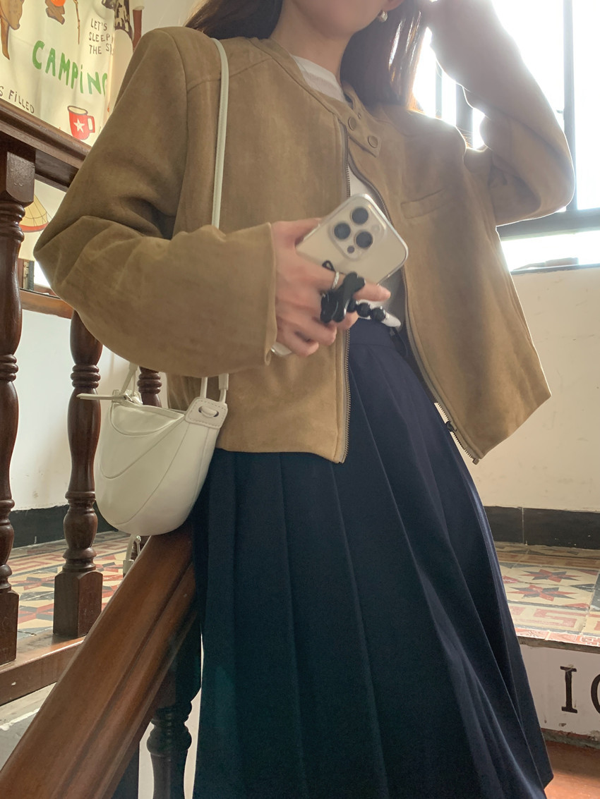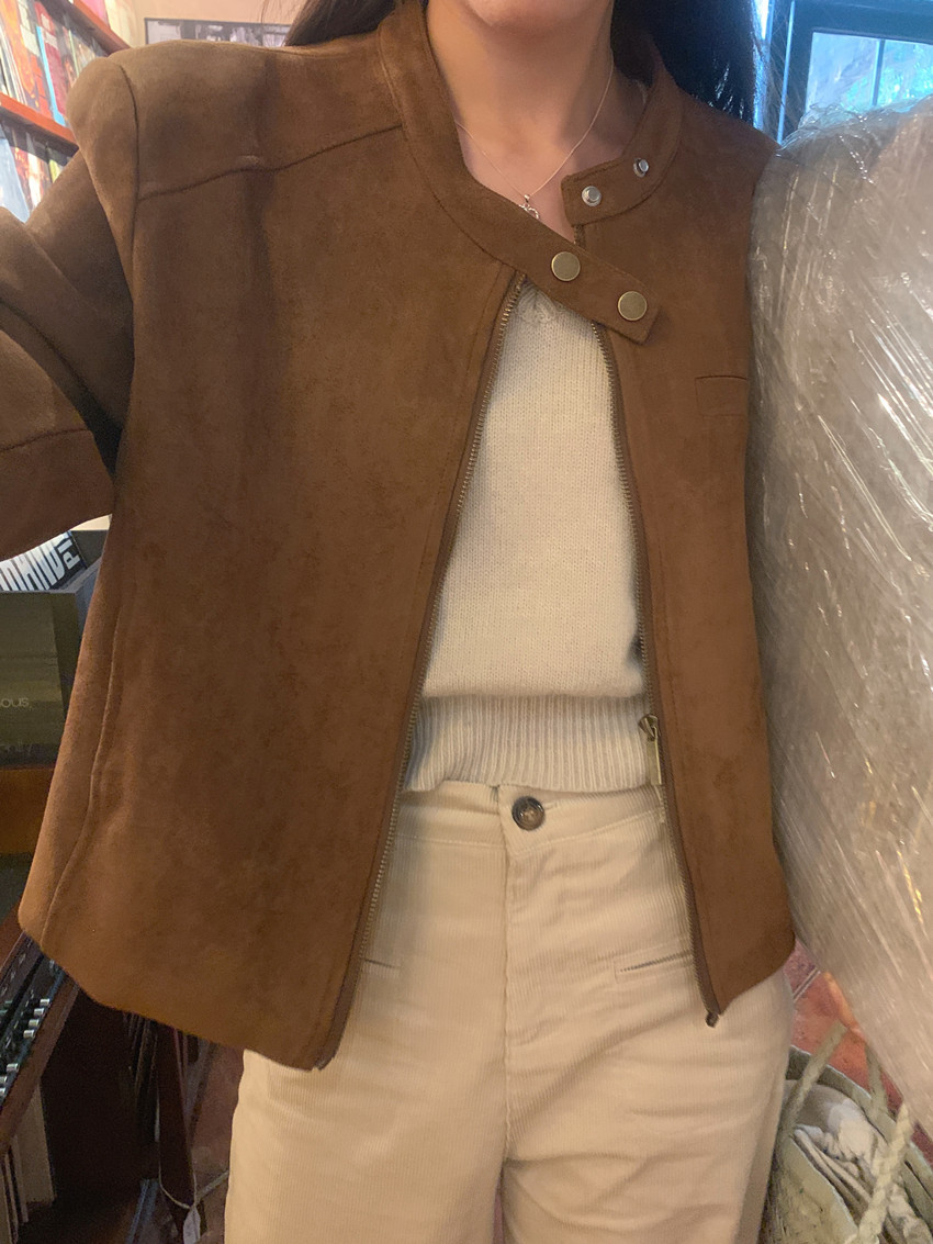 미국 복고풍 자전거 의류 사슴 가죽 벨벳 지퍼 스탠드 칼라 재킷 여성의 가을과 겨울 쿨 풀 짧은 재킷 탑 2 컬러스토어 가기