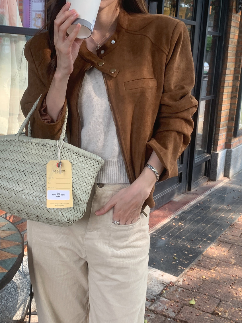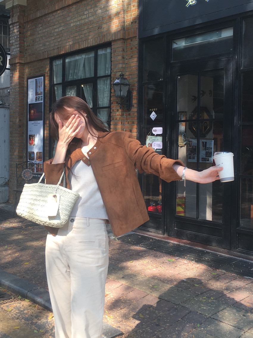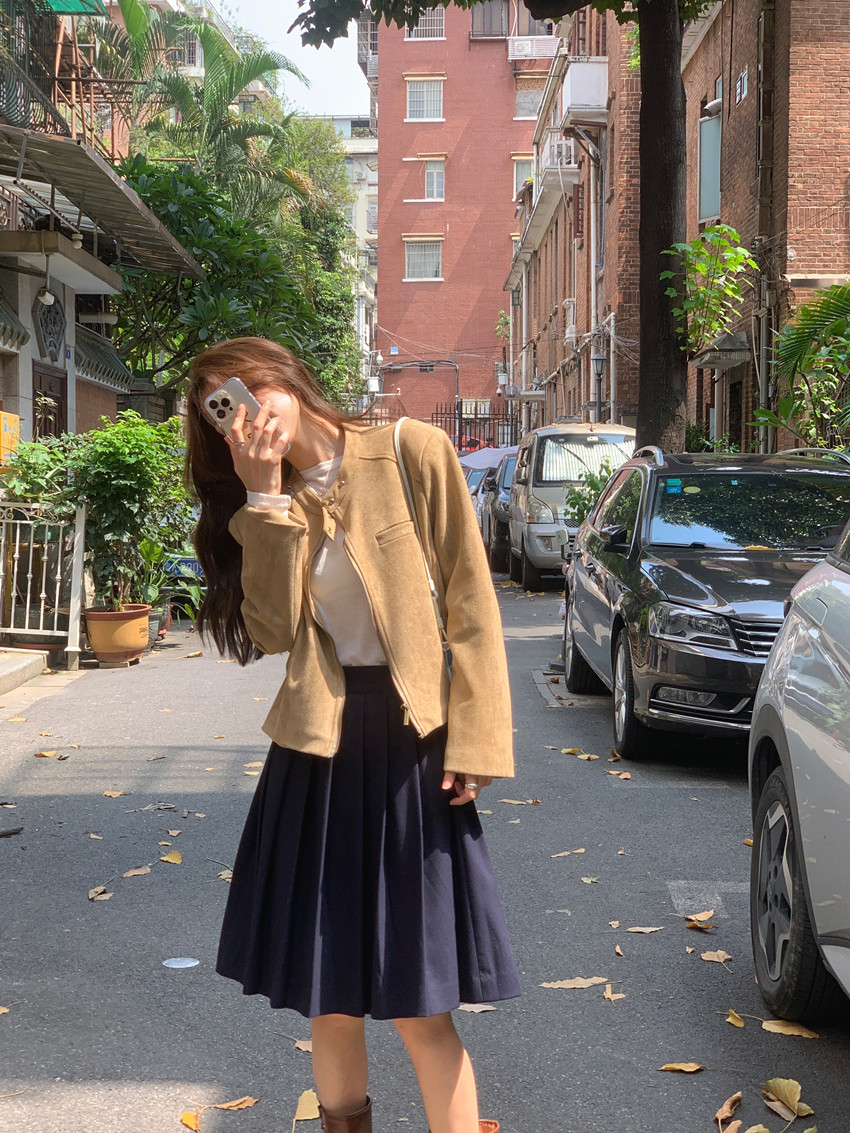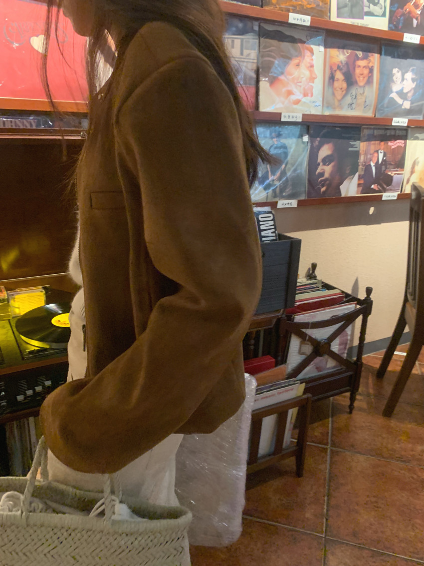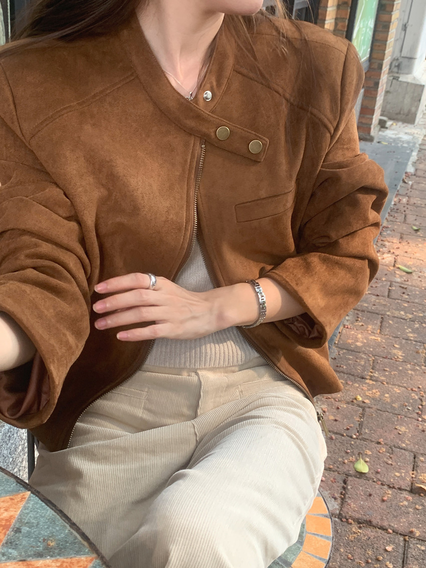 미국 복고풍 자전거 의류 사슴 가죽 벨벳 지퍼 스탠드 칼라 재킷 여성의 가을과 겨울 쿨 풀 짧은 재킷 탑 2 컬러스토어 가기