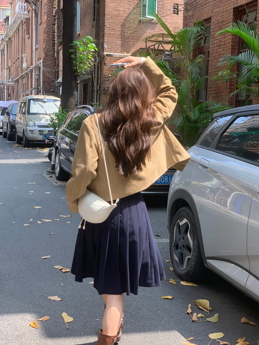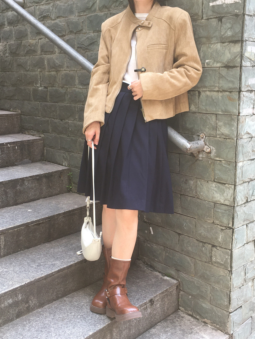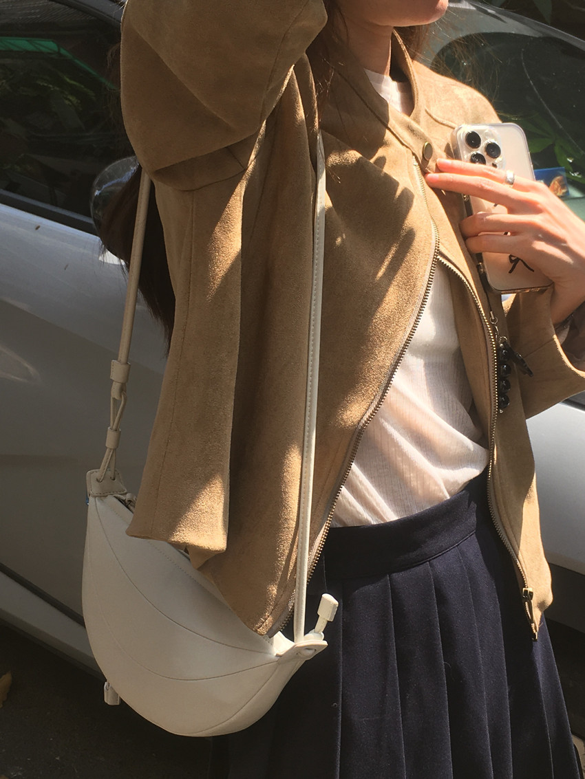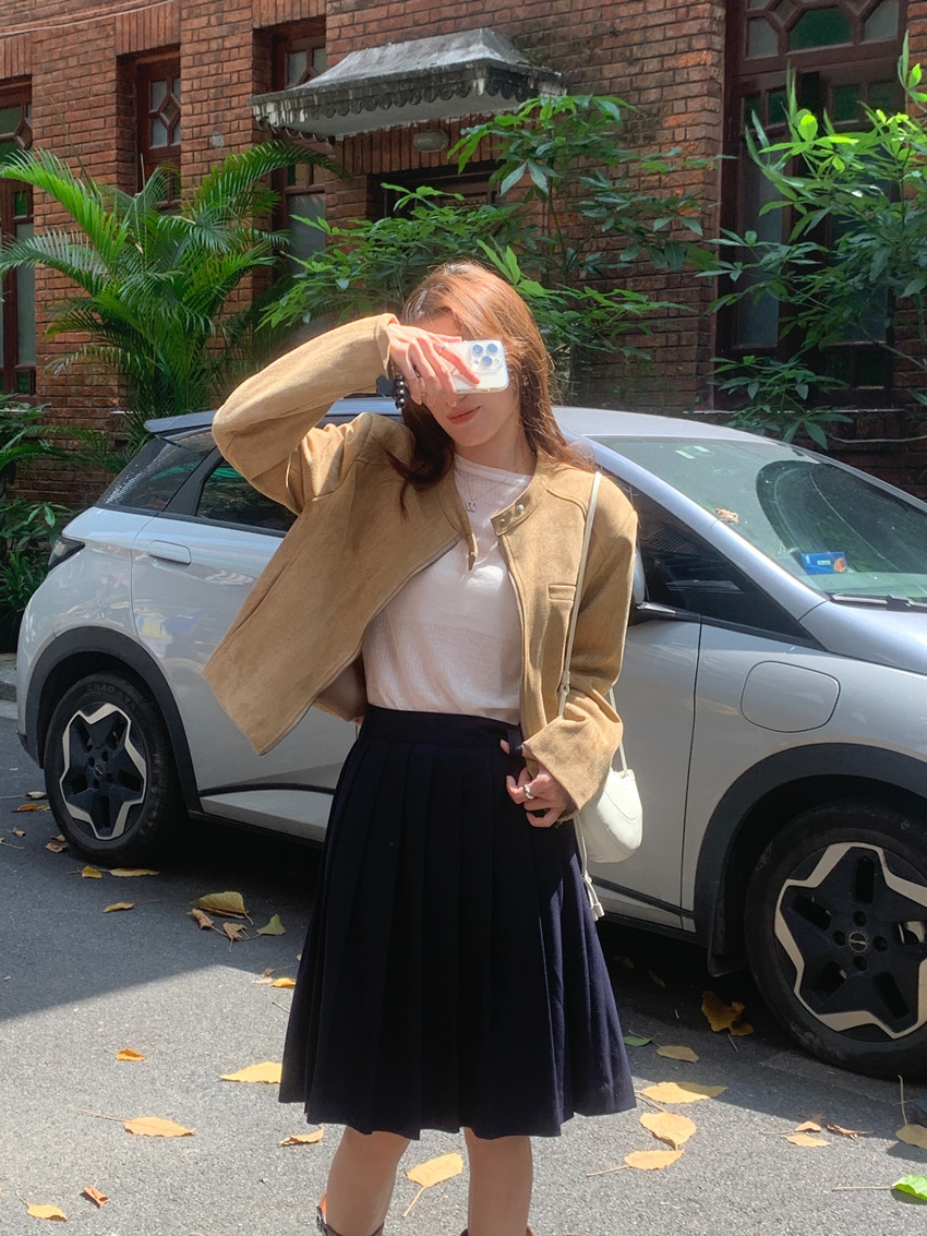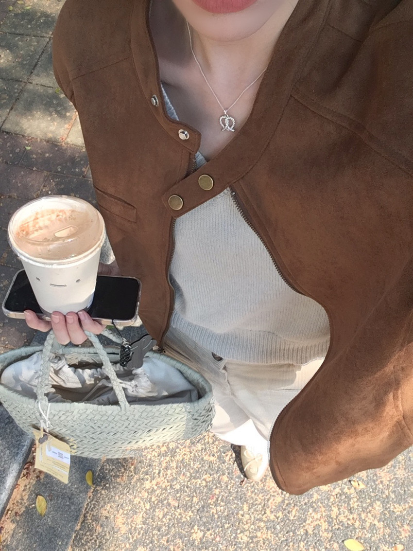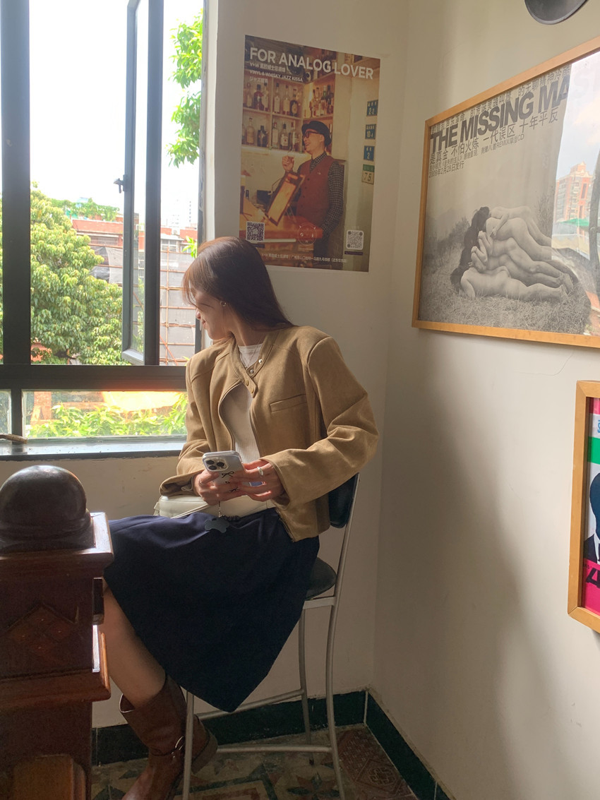 미국 복고풍 자전거 의류 사슴 가죽 벨벳 지퍼 스탠드 칼라 재킷 여성의 가을과 겨울 쿨 풀 짧은 재킷 탑 2 컬러스토어 가기