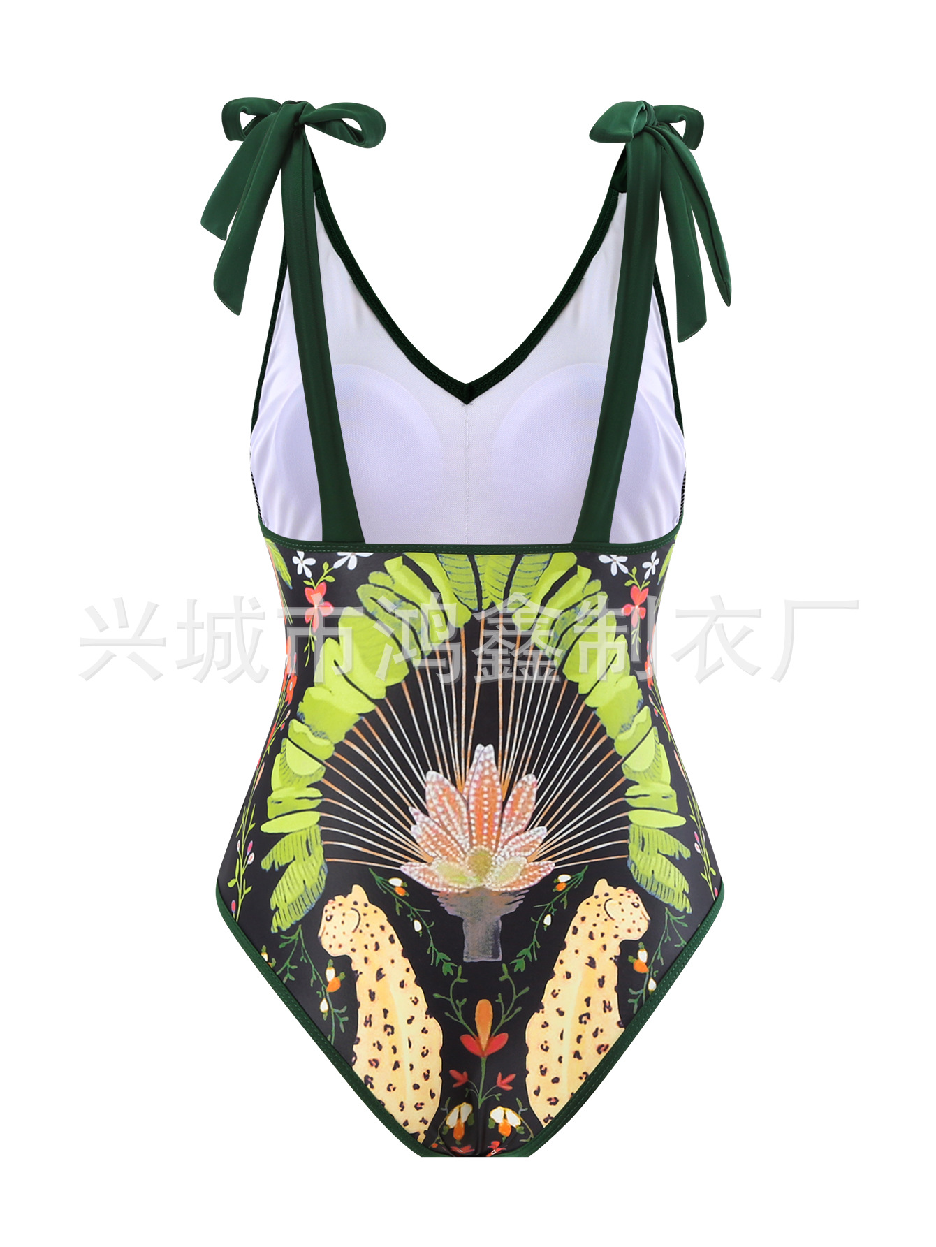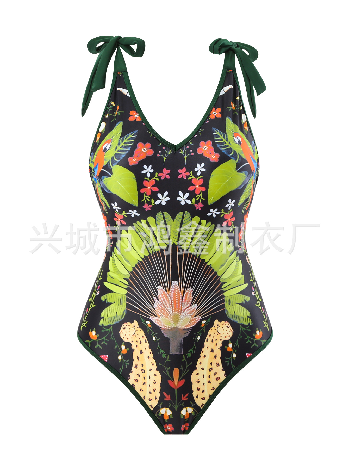 Longqi 2024 유럽과 미국 대외 무역 새로운 비키니 투피스 백 힙 거즈 스커트 여성 수영복 레트로 프린트 수영복스토어 가기