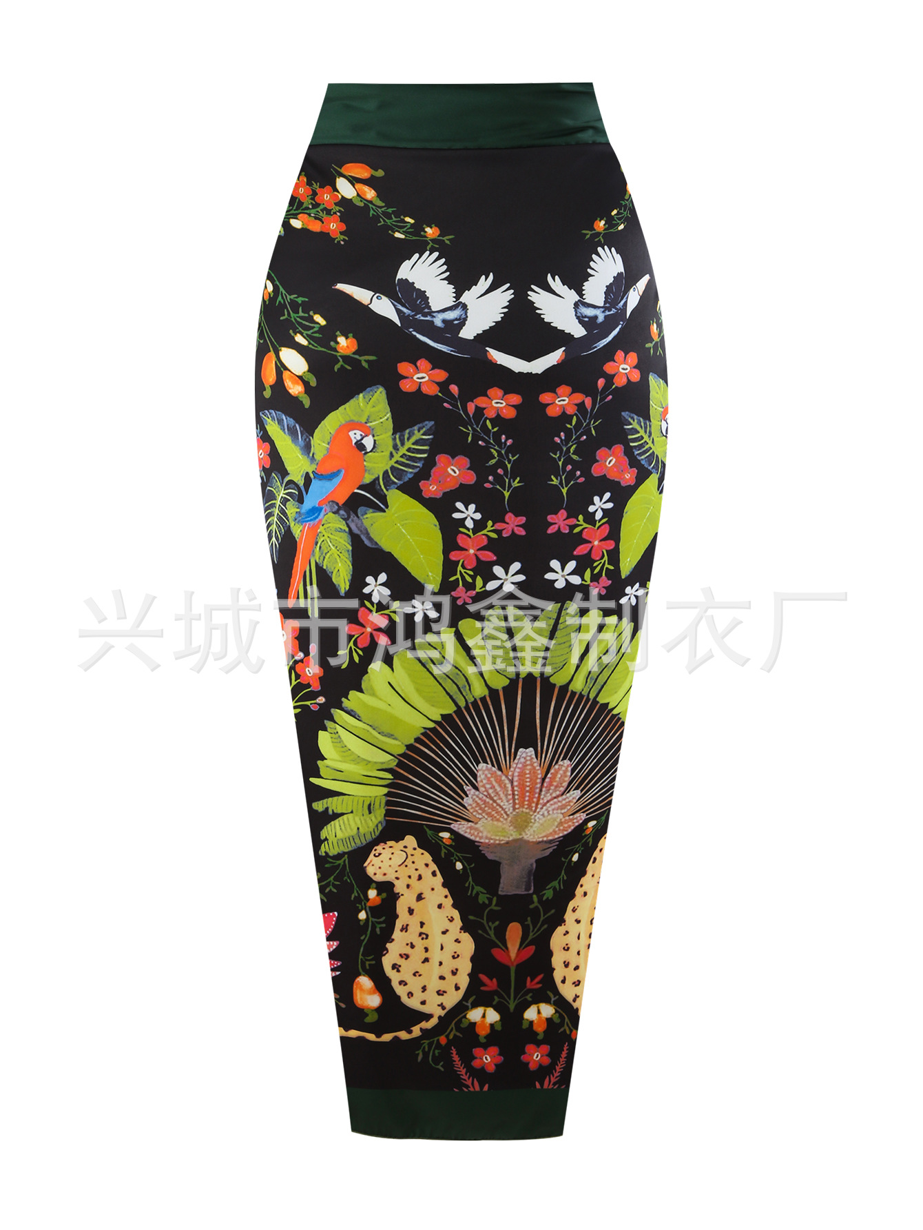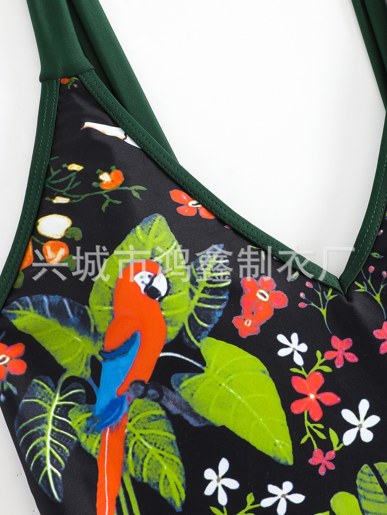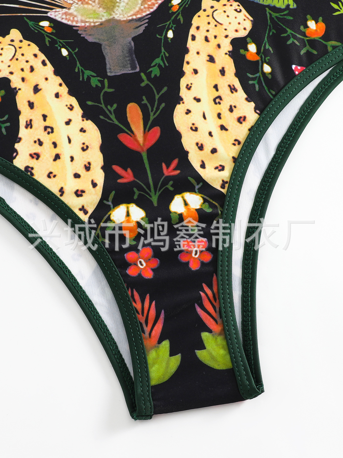 Longqi 2024 유럽과 미국 대외 무역 새로운 비키니 투피스 백 힙 거즈 스커트 여성 수영복 레트로 프린트 수영복