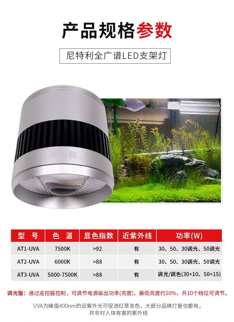 니틀리 물 잔디 램프 전문 풀 스펙트럼 LED 물 잔디 스탠드 램프 사각 램프 배럴 램프 디밍 가능 AT1/at2/AT3