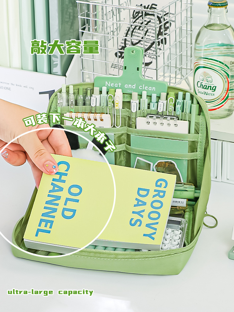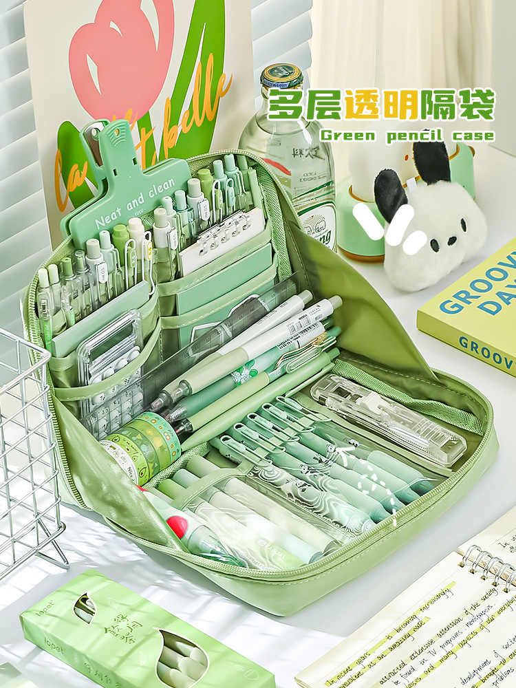 여자 초등학교 중학교 소년 소녀 하이 컬러 가치 문구 필통 12 레이어 팬더 대용량 필통