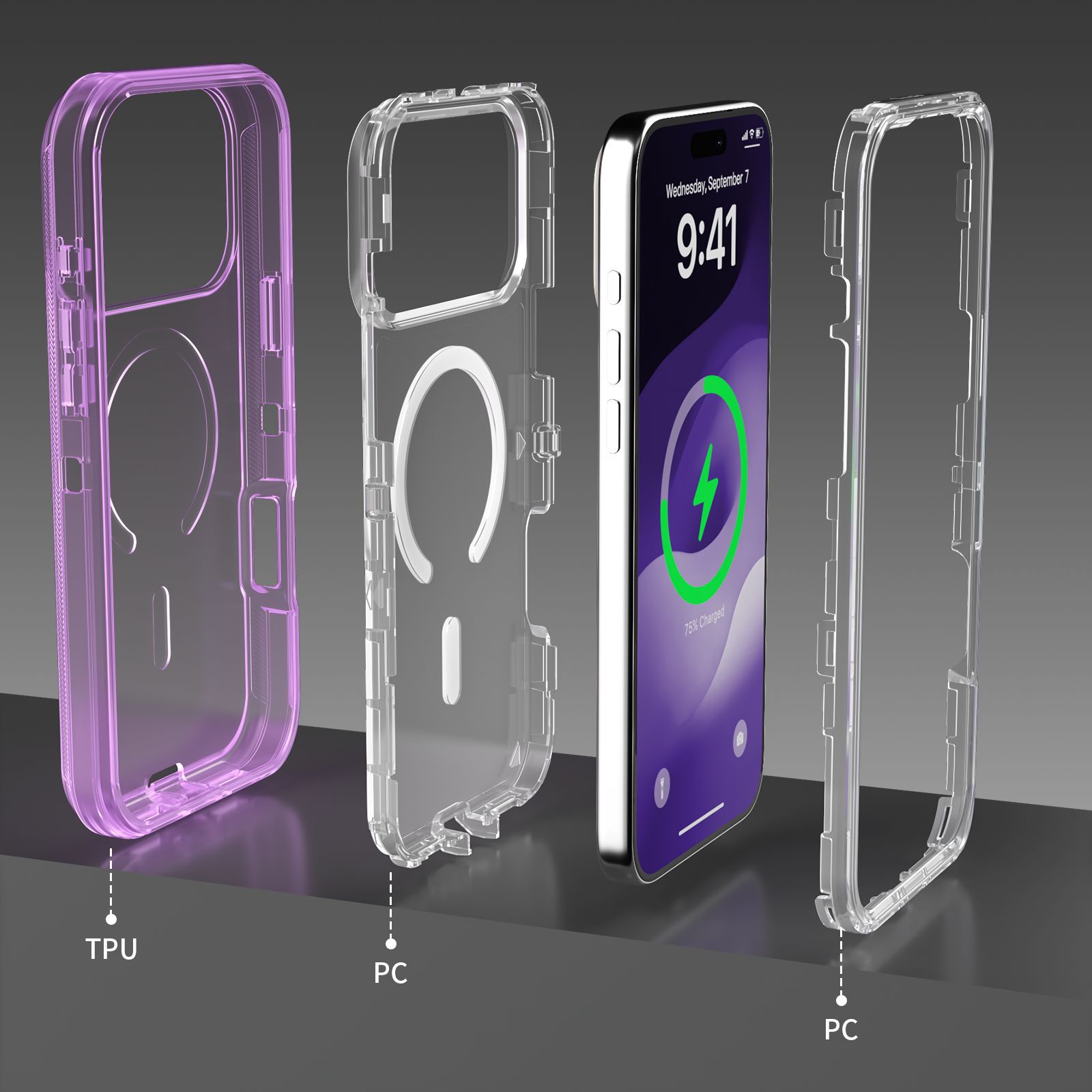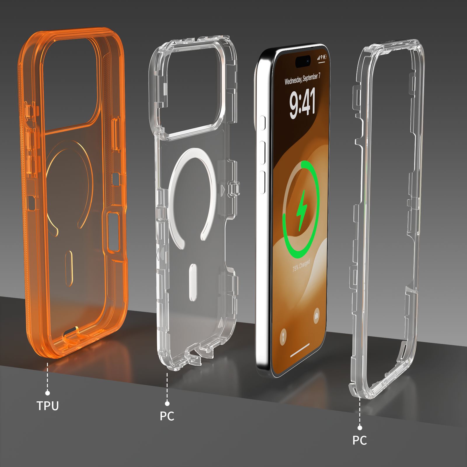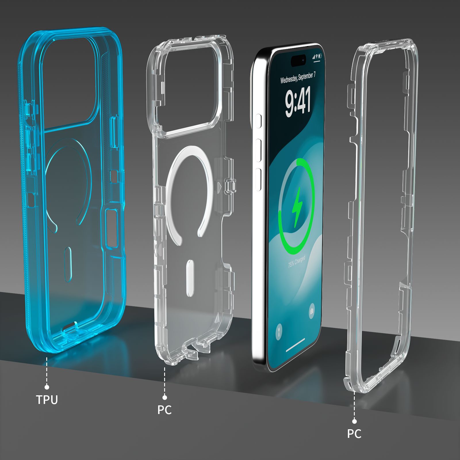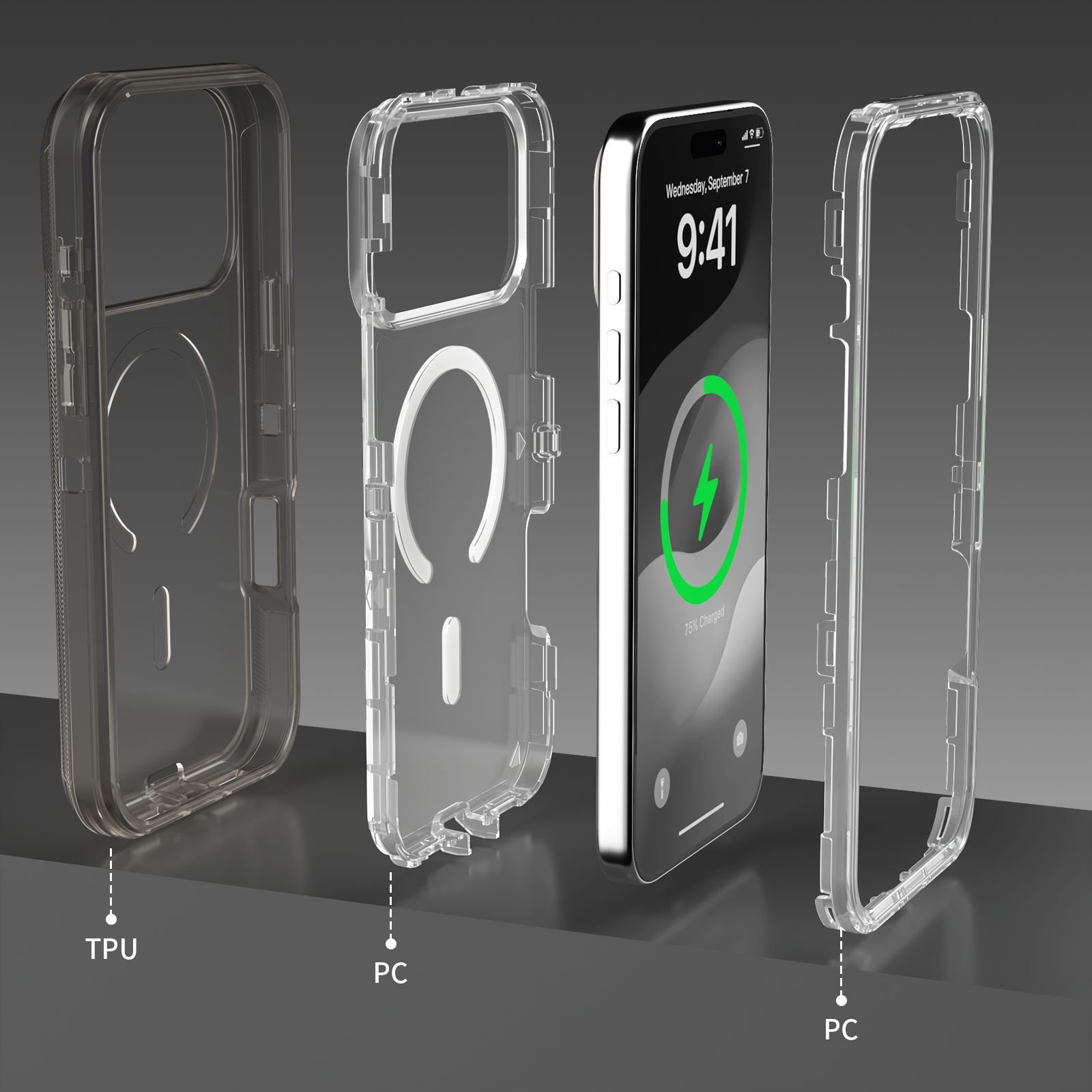 삼중 보호 투명 자석 무선 충전 로봇 아이폰17 케이스용 방수, 낙하 방지, 16프로맥스 하드 케이스, 15