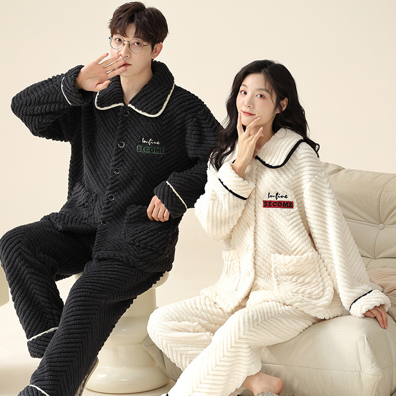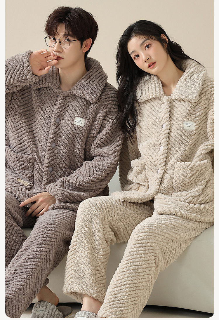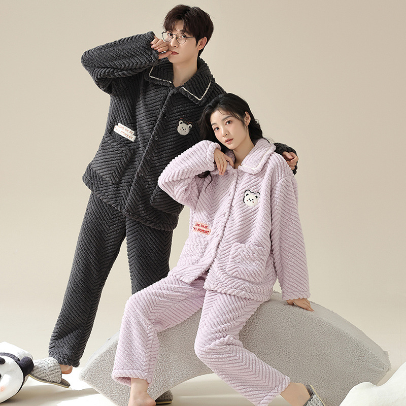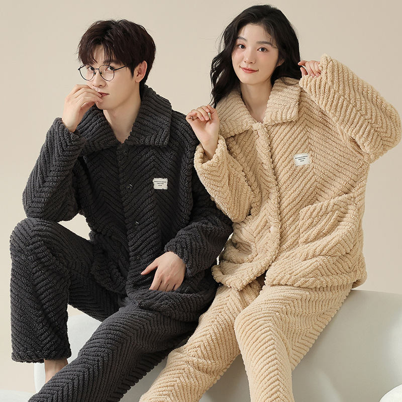 커플의 잠옷 겨울 산호 양털 기모 두꺼운 남성과 여성의 가을과 겨울 플란넬 일반 깨끗한 가정 의류 겨울스토어 가기