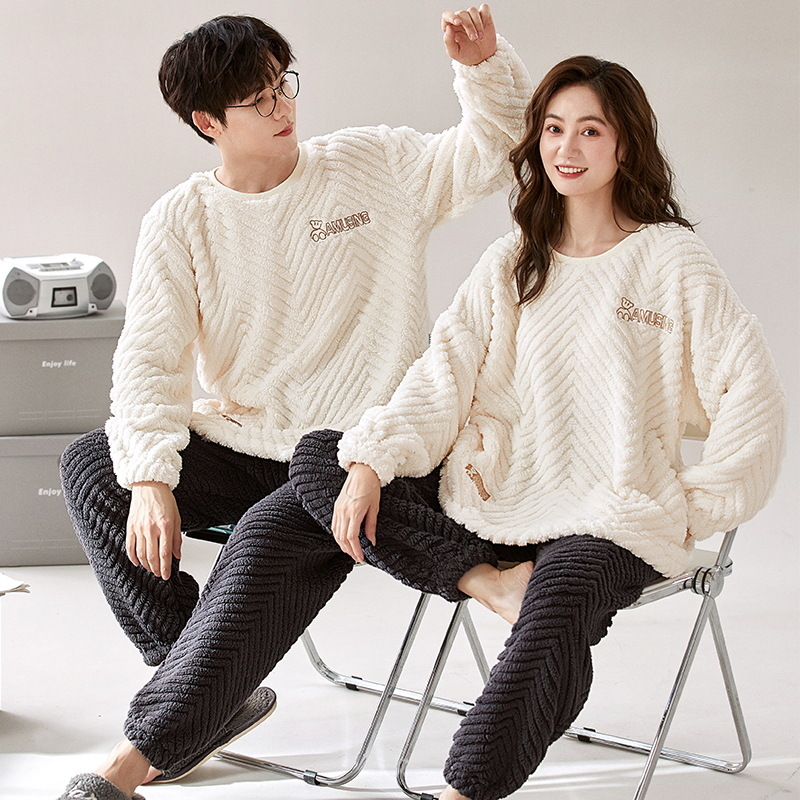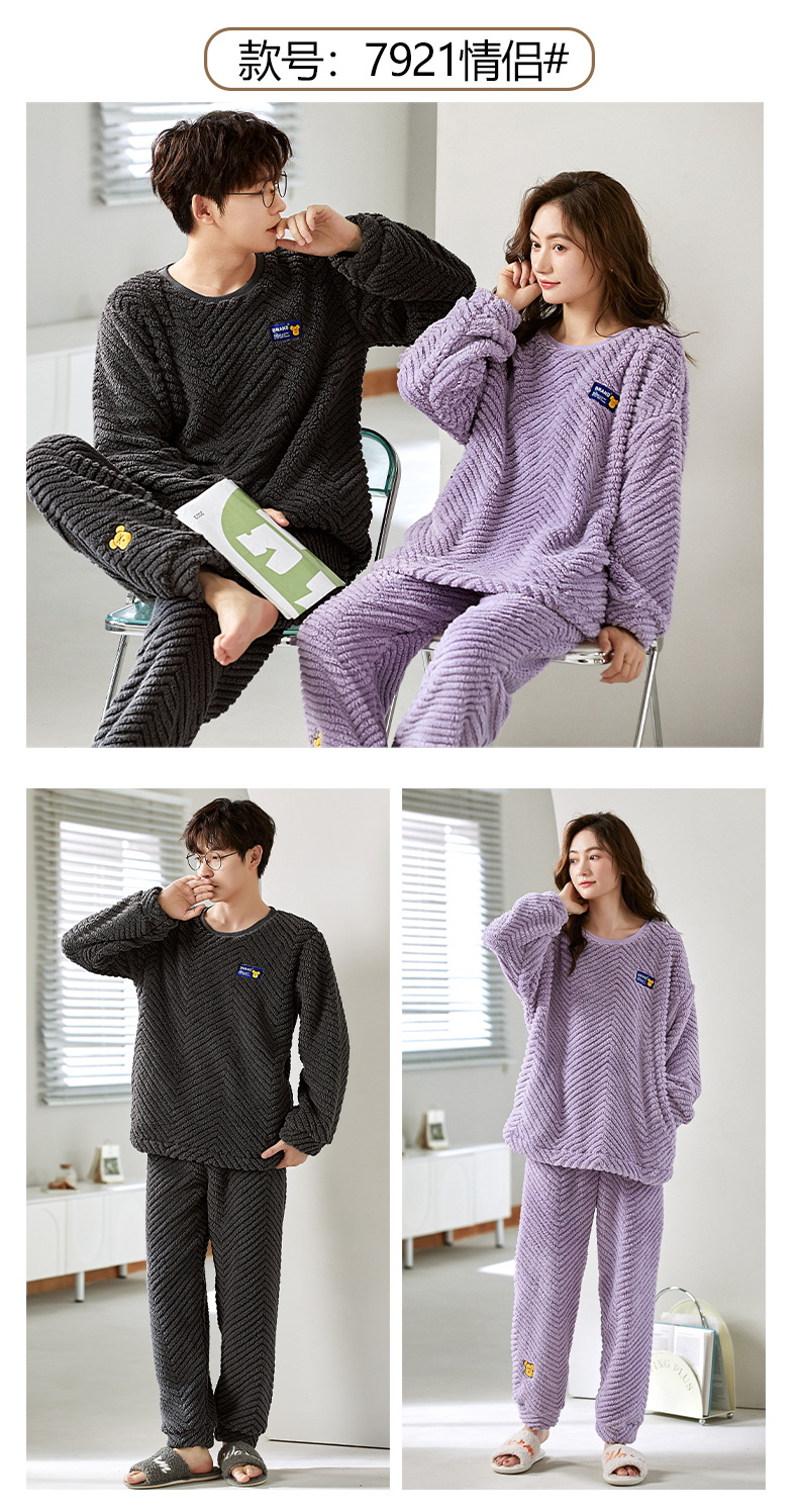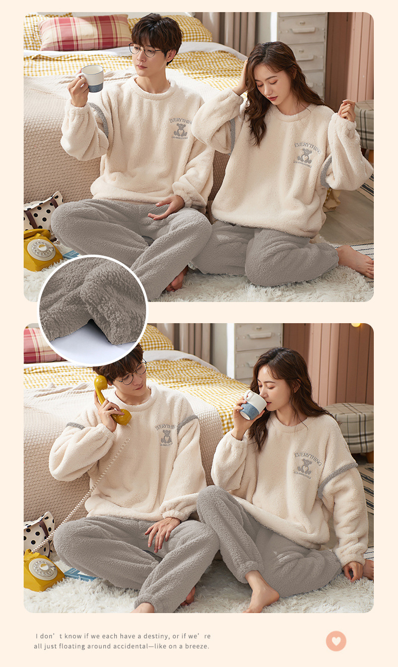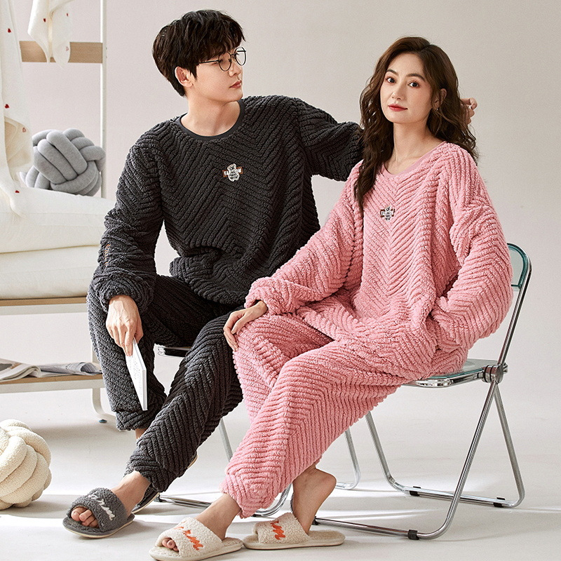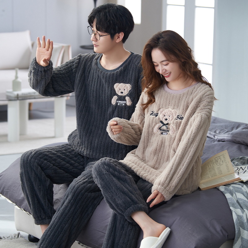 커플 겨울 새로운 산호 양털 파자마 따뜻한 두꺼운 플란넬 여성은 캐주얼 가정복 세트 밖에서 입을 수 있습니다.스토어 가기