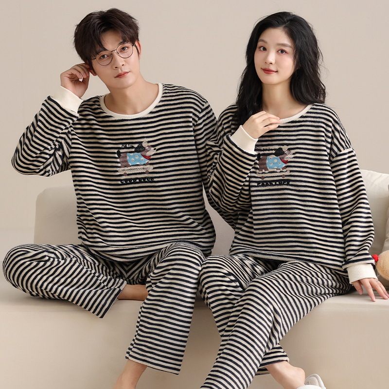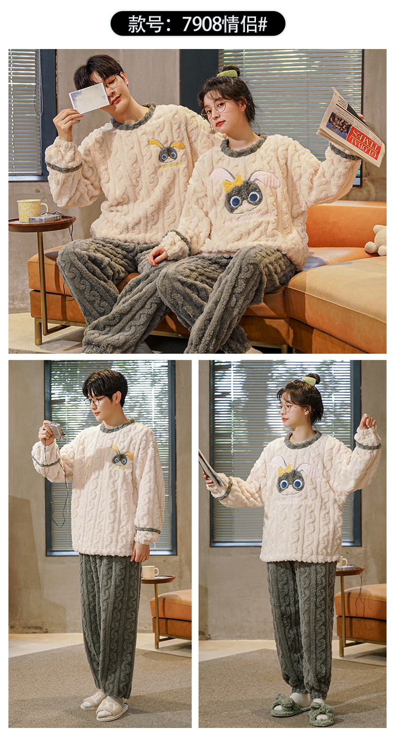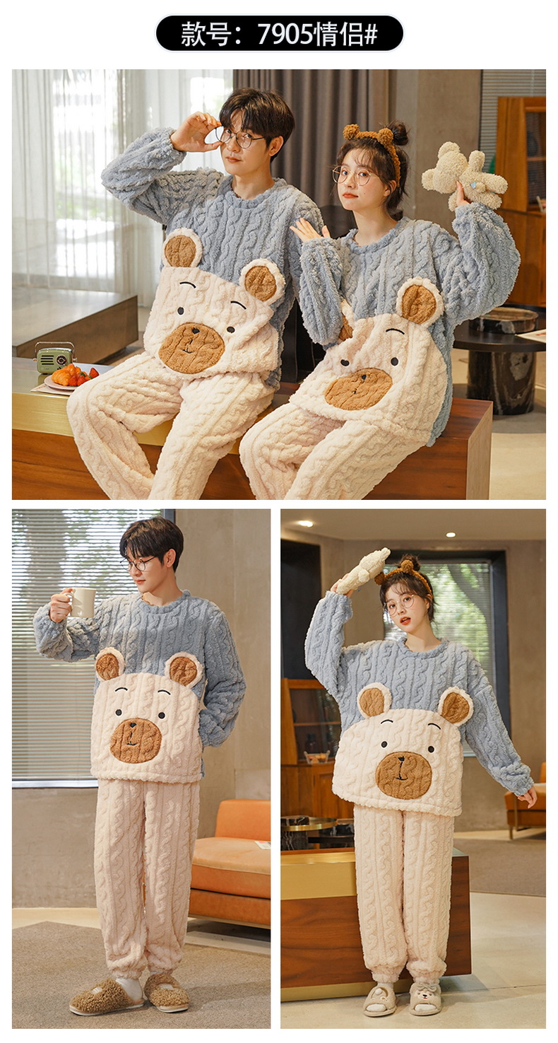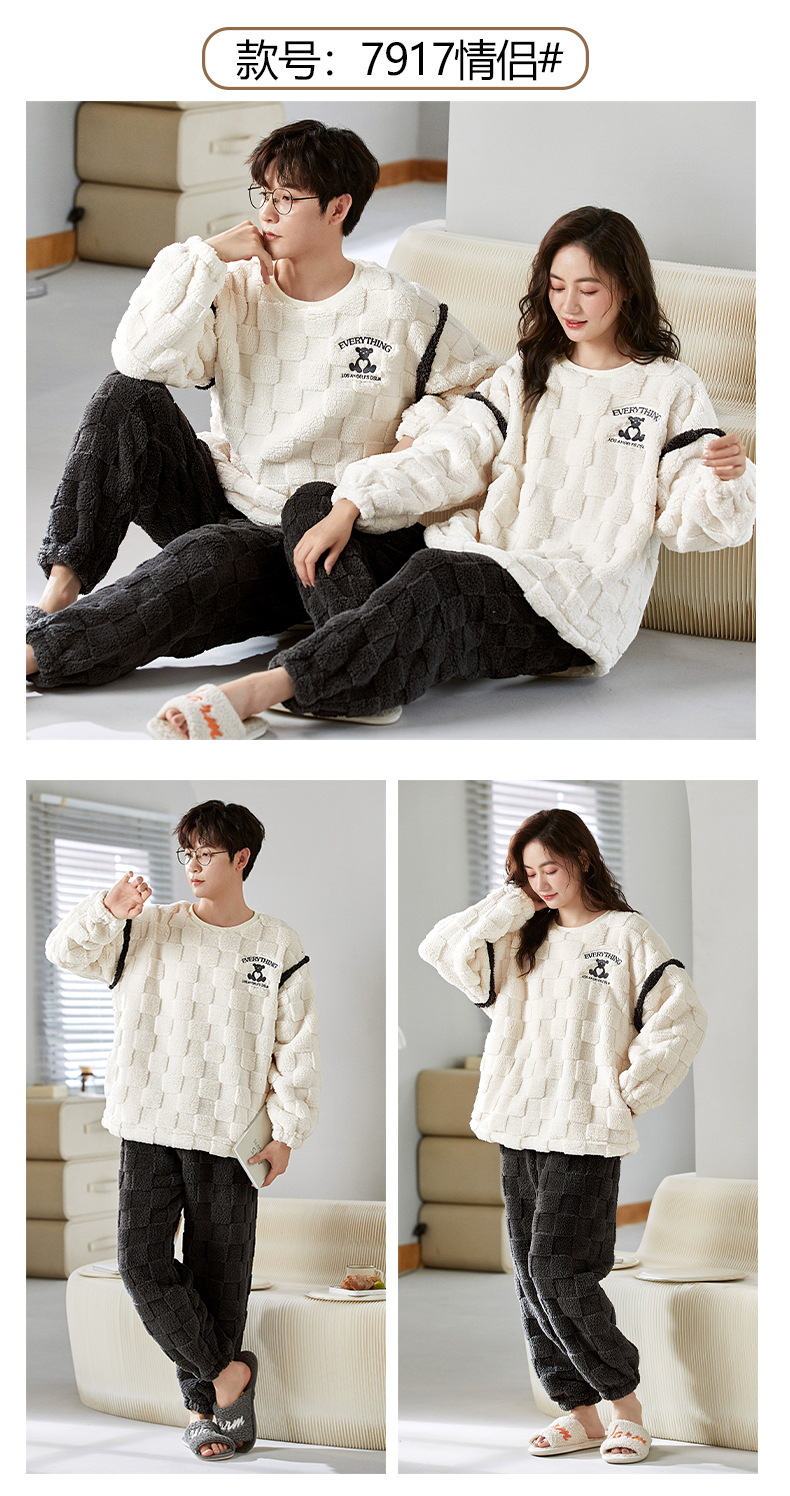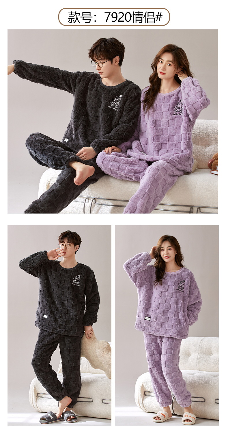 커플 겨울 새로운 산호 양털 파자마 따뜻한 두꺼운 플란넬 여성은 캐주얼 가정복 세트 밖에서 입을 수 있습니다.스토어 가기