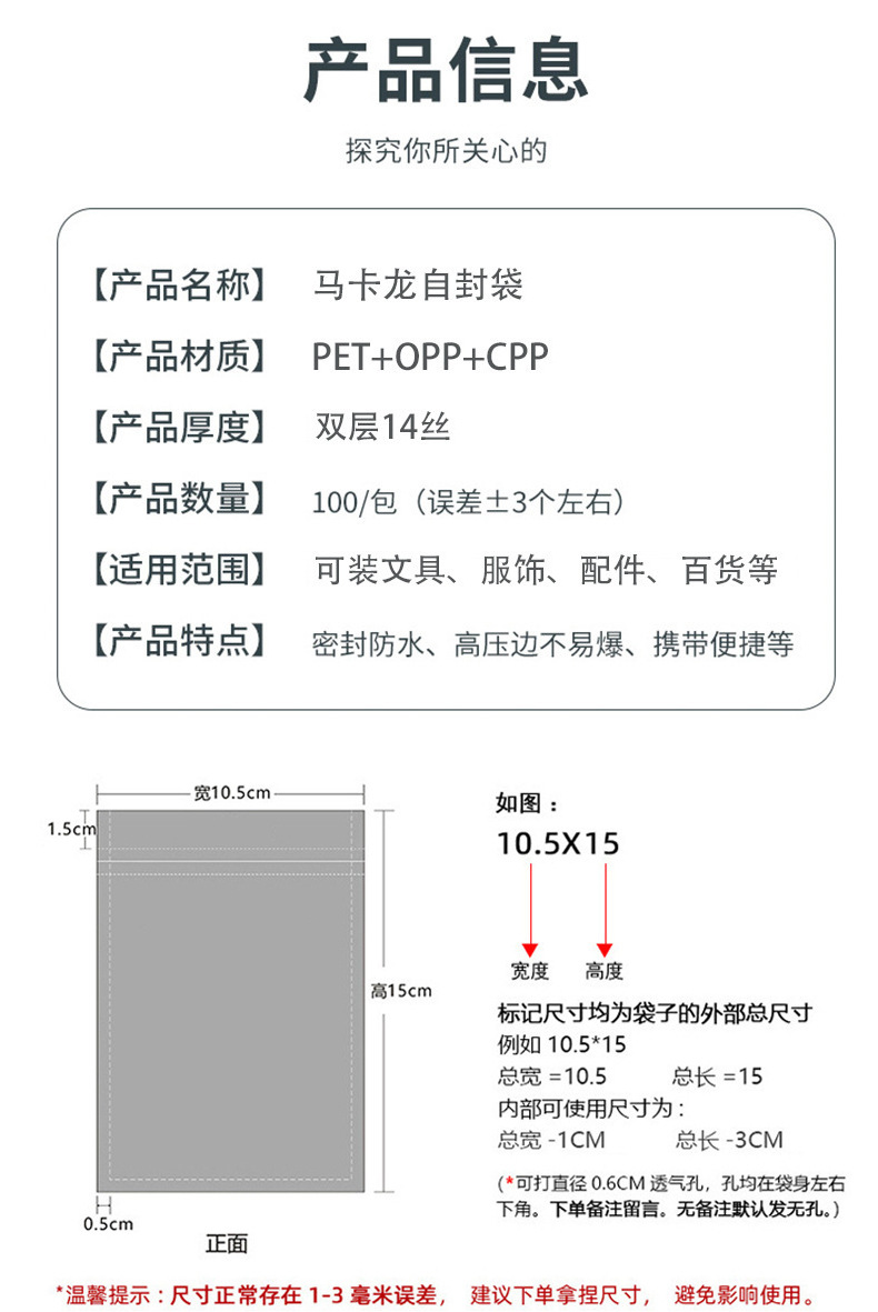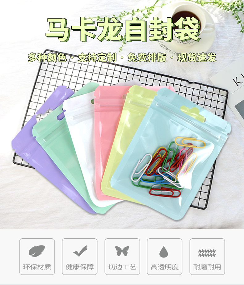 크리 에이 티브 다채로운 마카롱 가방 젖빛 사용자 정의 헤어 클립 지 플락 가방 음과 양 보석 플라스틱 봉인 된 가방 포장 가방