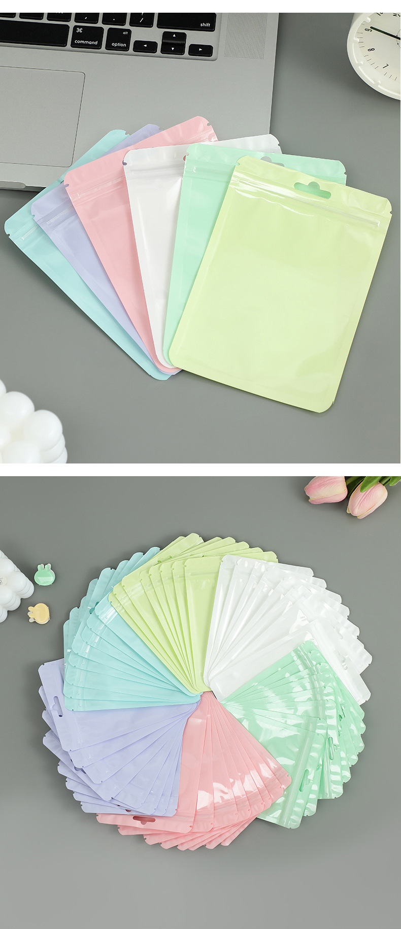 크리 에이 티브 다채로운 마카롱 가방 젖빛 사용자 정의 헤어 클립 지 플락 가방 음과 양 보석 플라스틱 봉인 된 가방 포장 가방스토어 가기