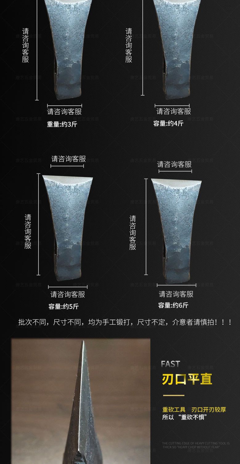 • 나무 손잡이가 없는 약 4.0kg 직차이 도끼