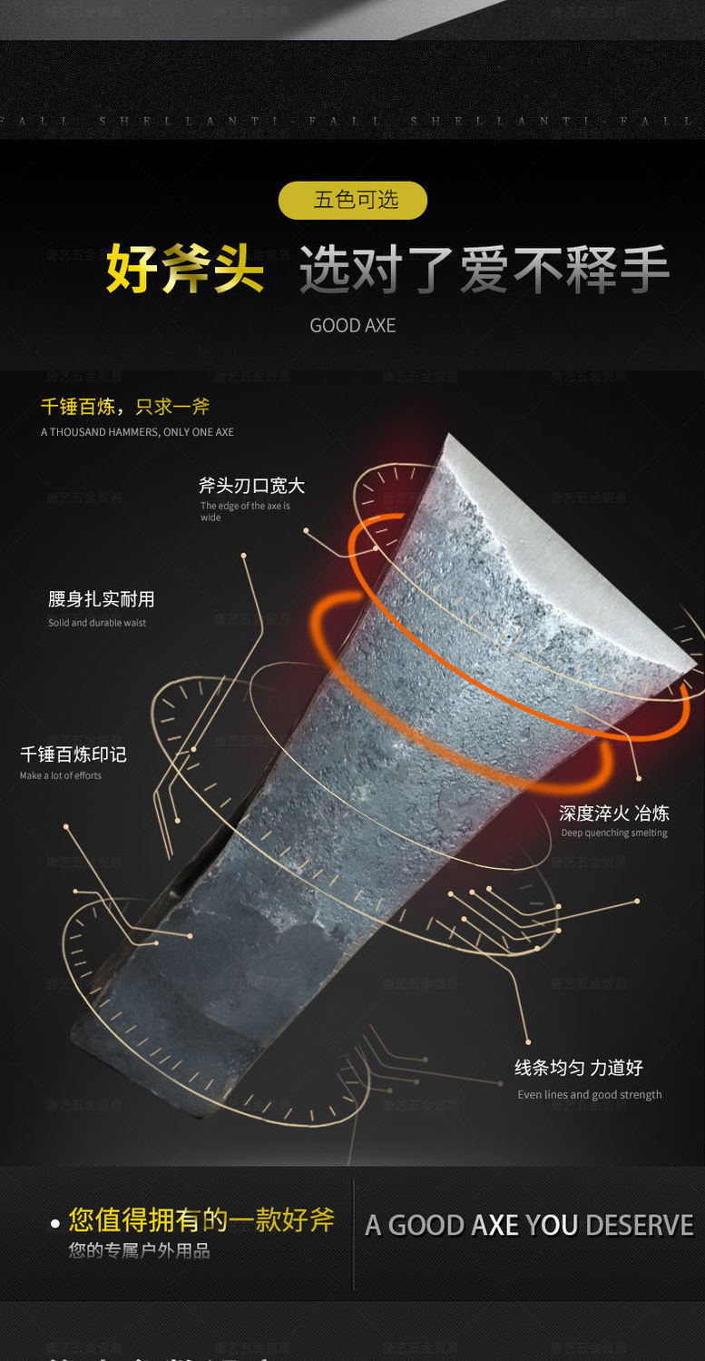도끼 레일 스틸 손으로 직선형 도끼 나무를 자르고 나무 손잡이가 달린 야외 가정용 보강 특수 도끼스토어 가기