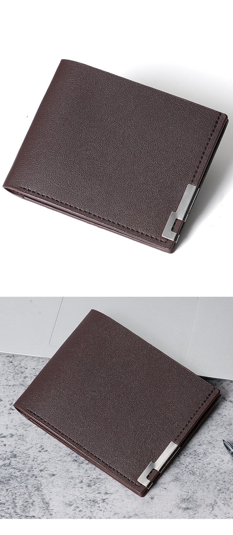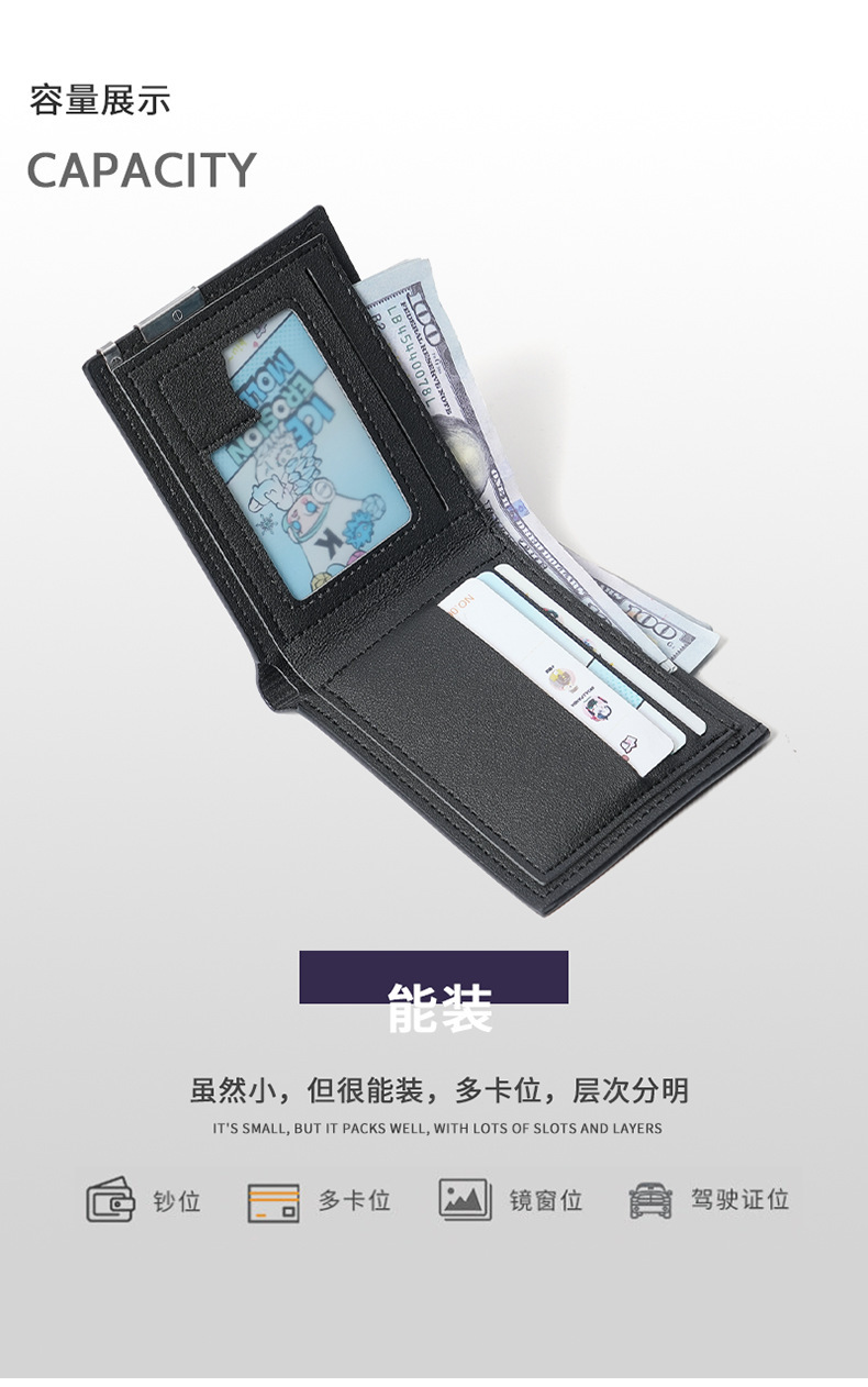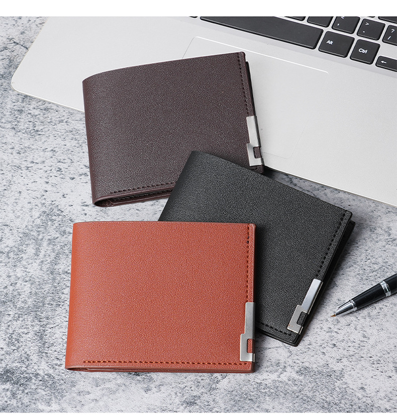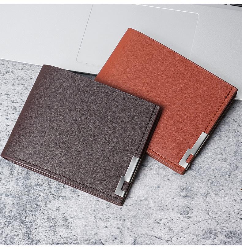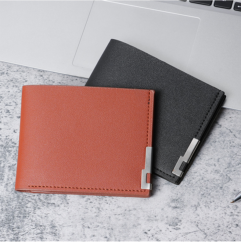 남자의 짧은 지갑 한국식 아이언 에지 청소년 남자의 수평 멀티 카드 지갑 유행 명함 가방 재고