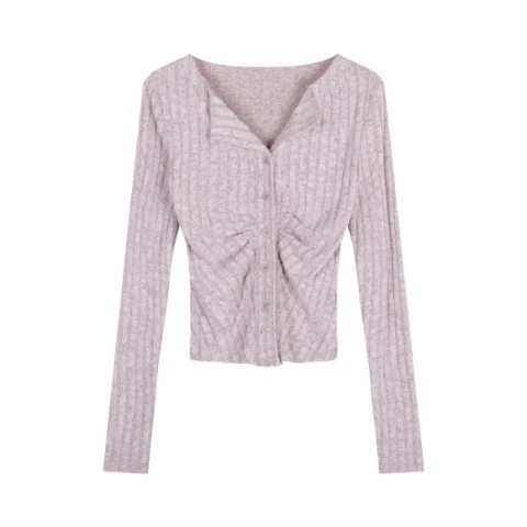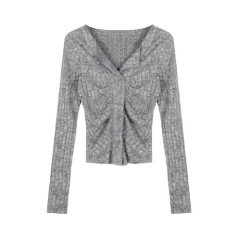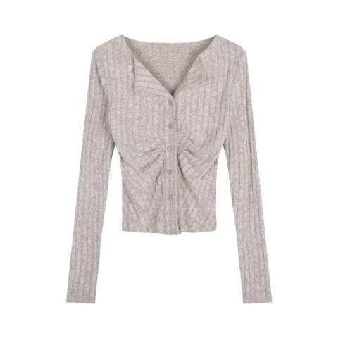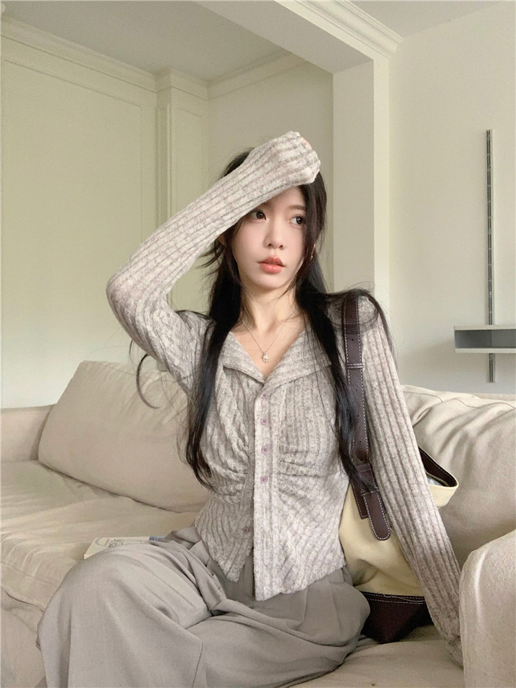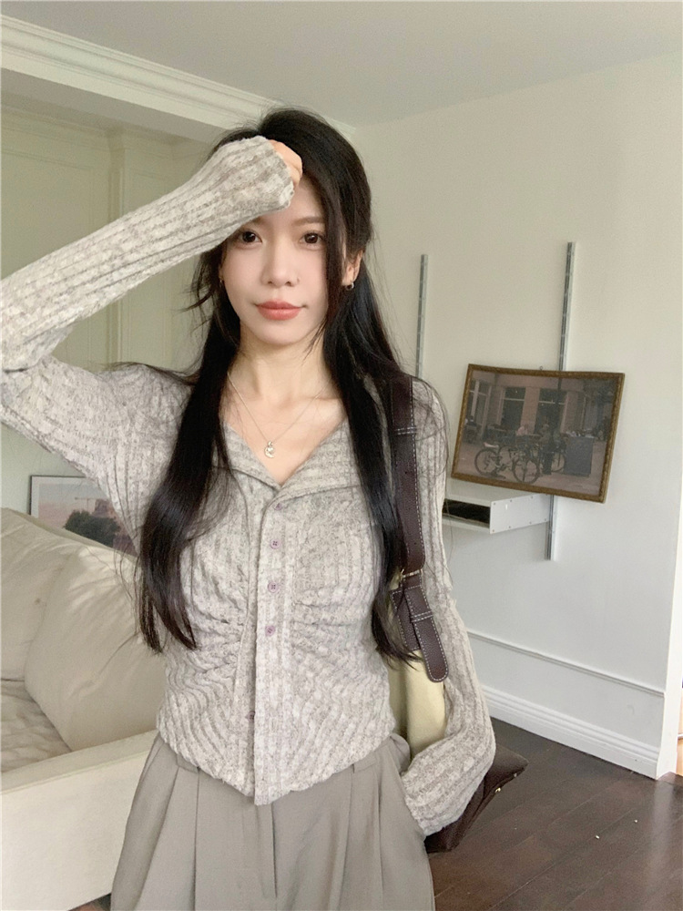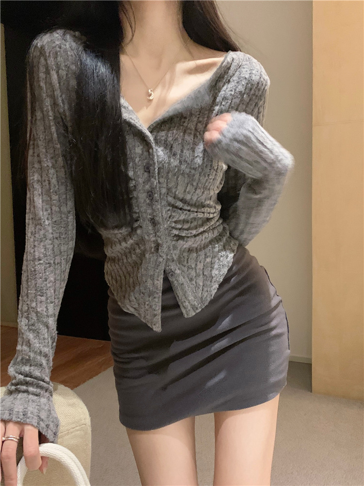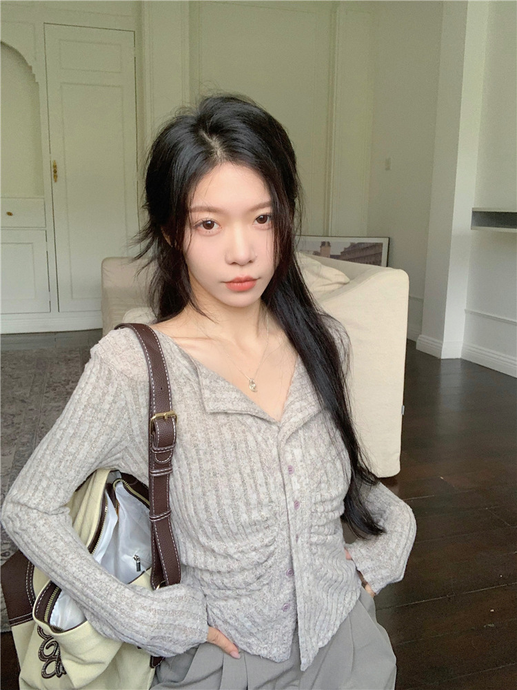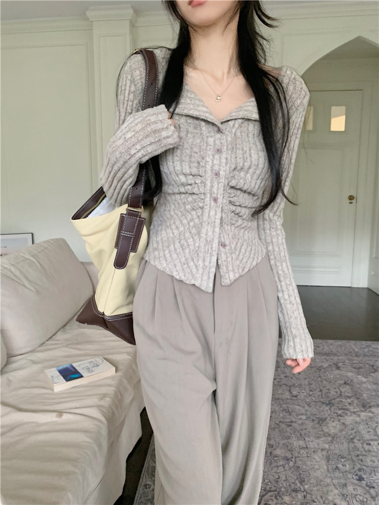 [팩토리 소스 재고 스트레이트 헤어] 긴팔 스파이스 스웨터 여성용 가을 시크 플리츠 슬림핏 슬림 탑
