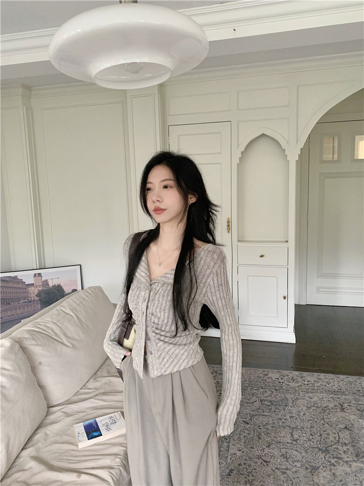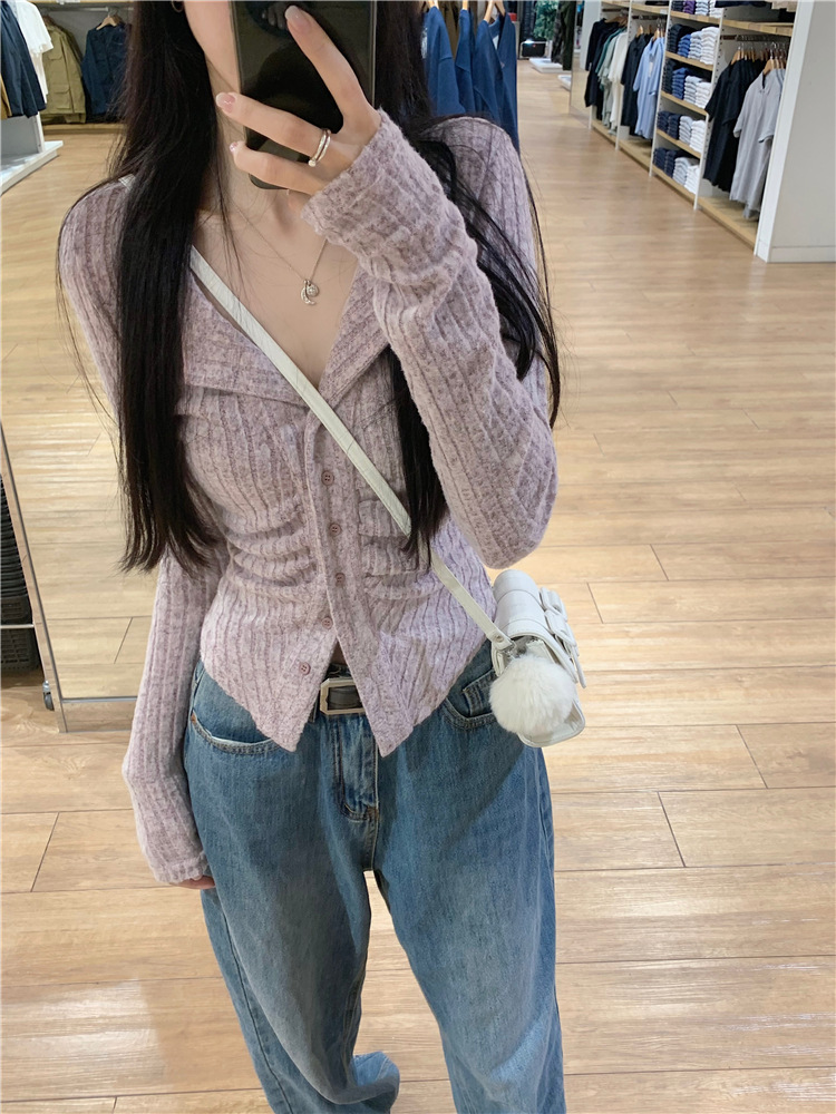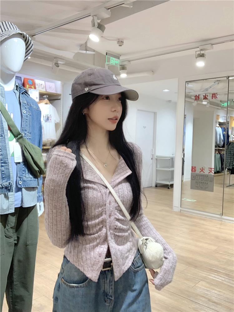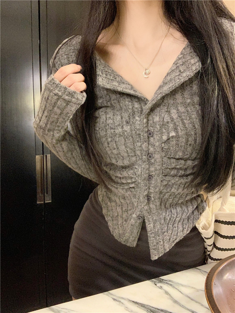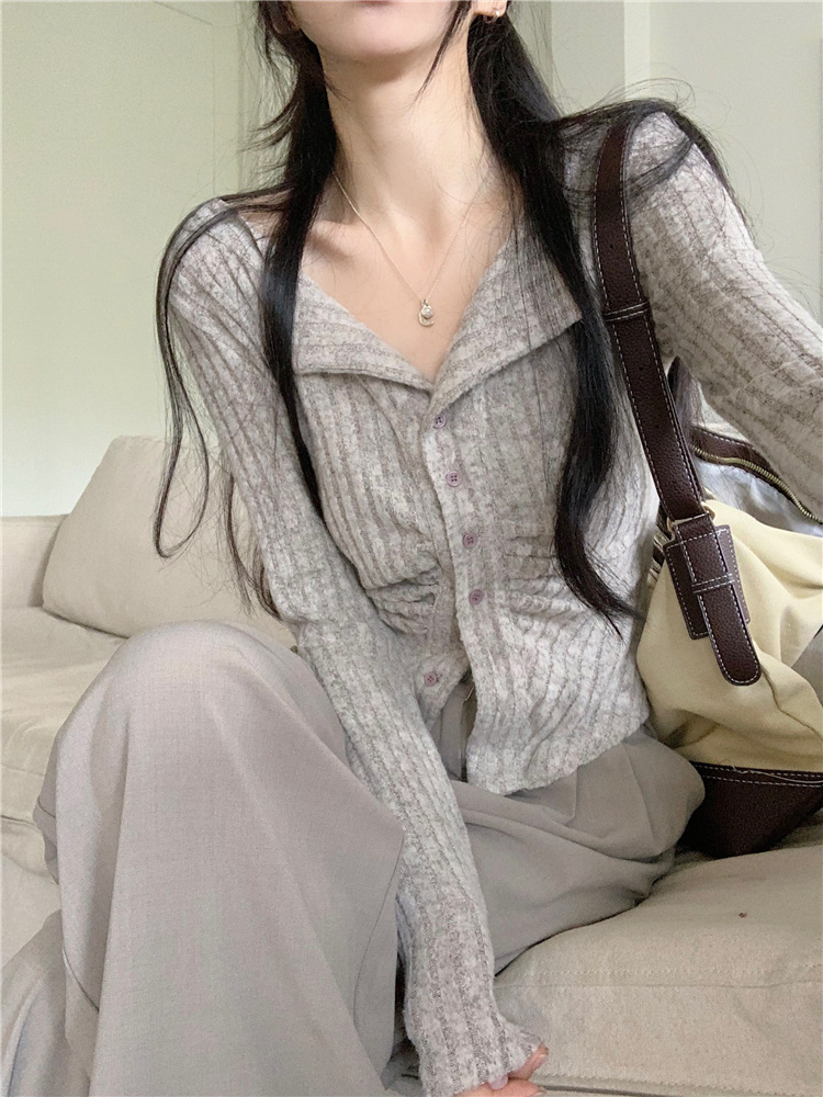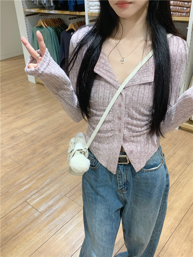 [팩토리 소스 재고 스트레이트 헤어] 긴팔 스파이스 스웨터 여성용 가을 시크 플리츠 슬림핏 슬림 탑