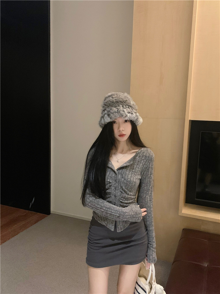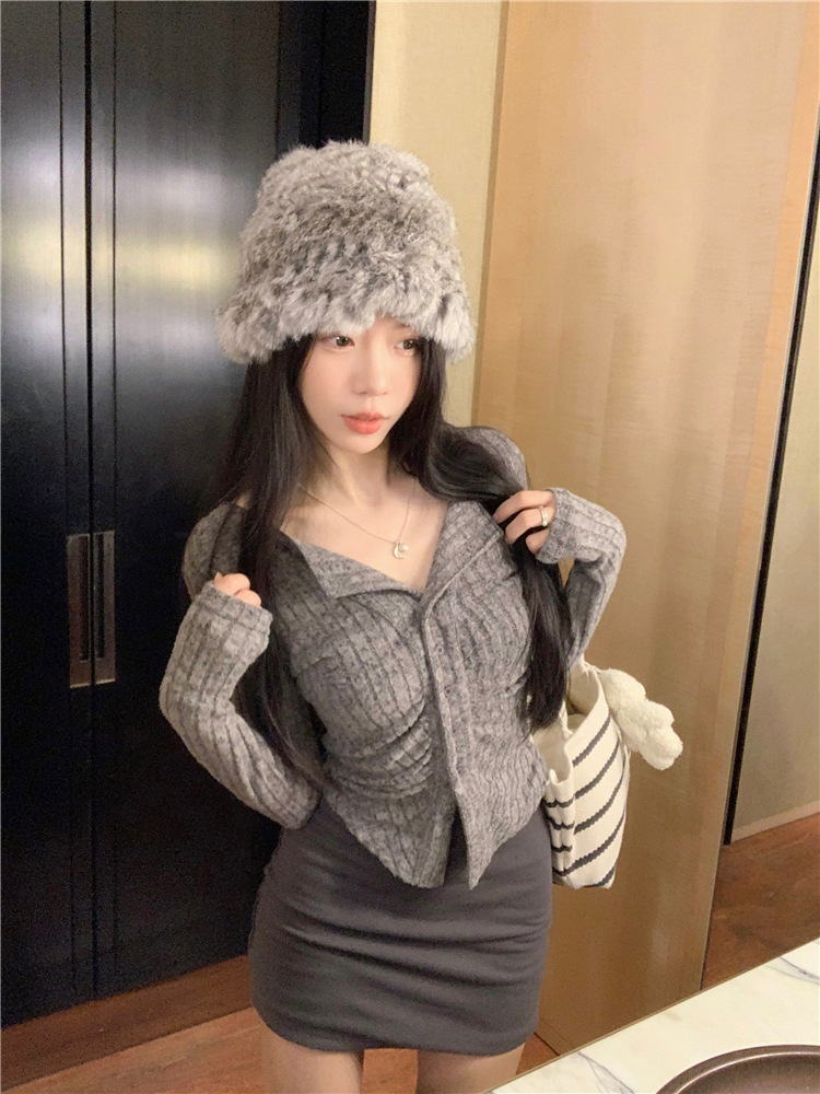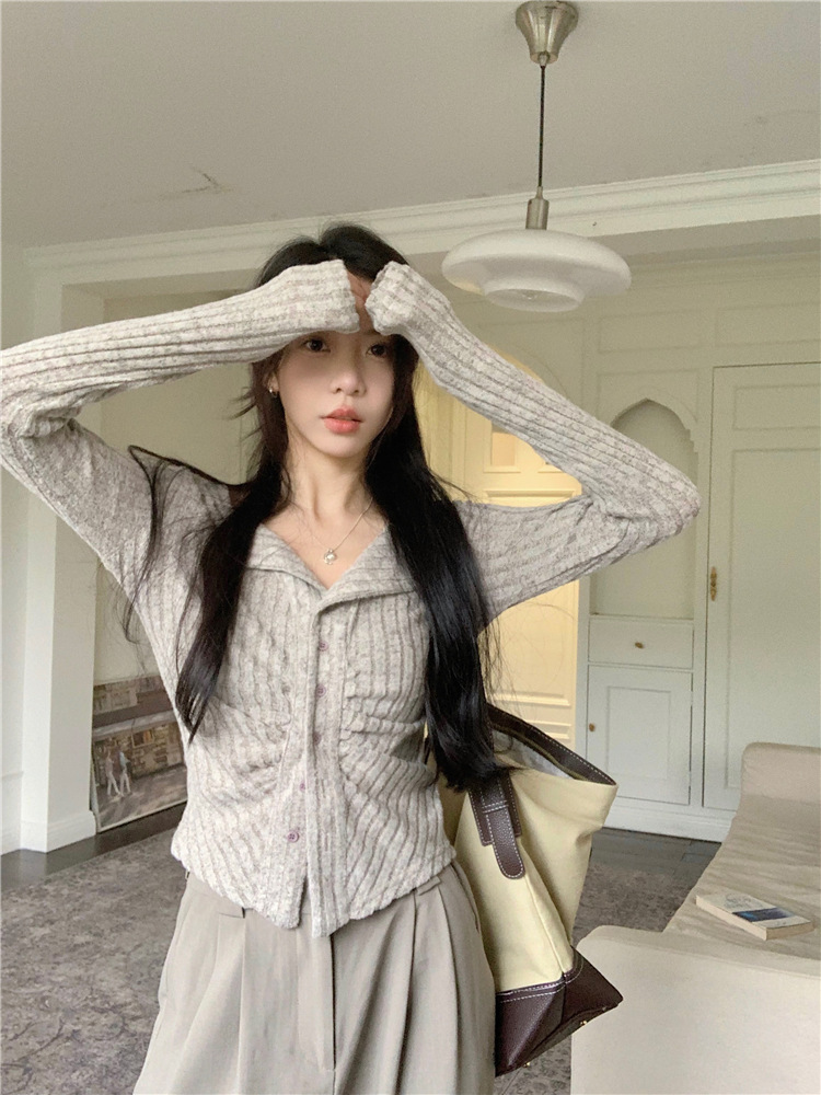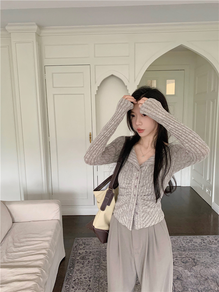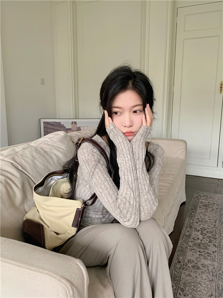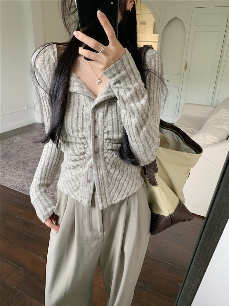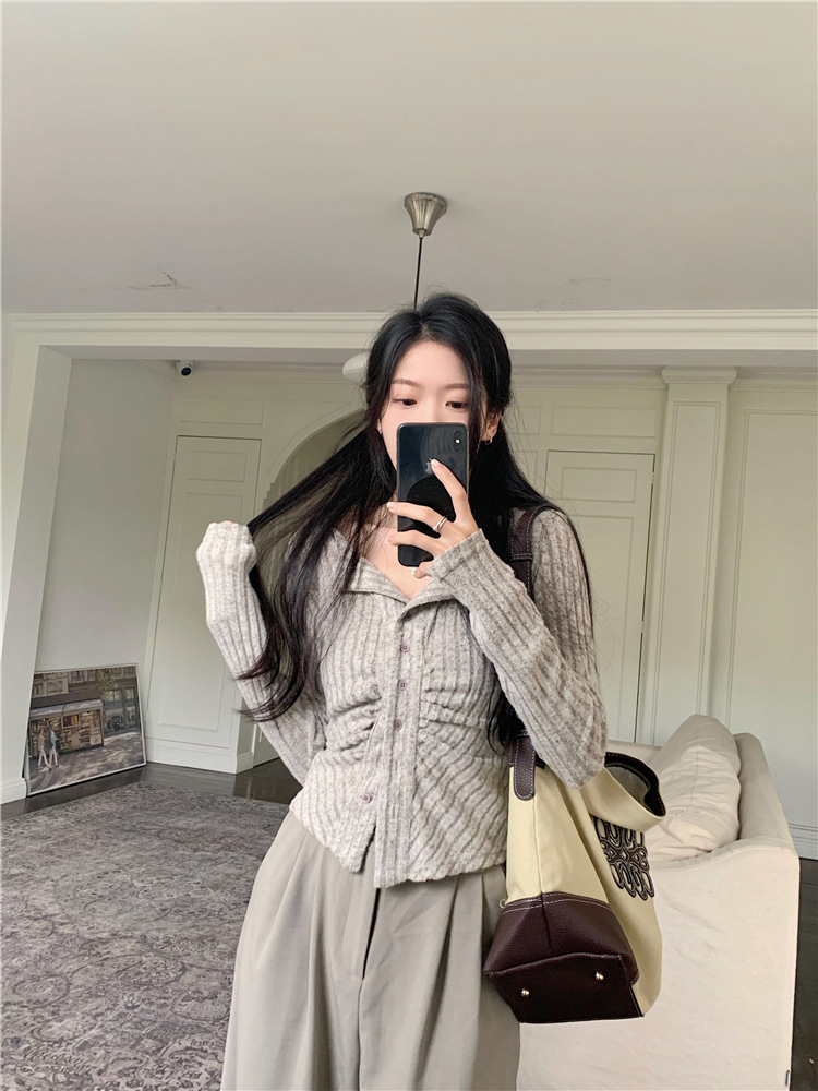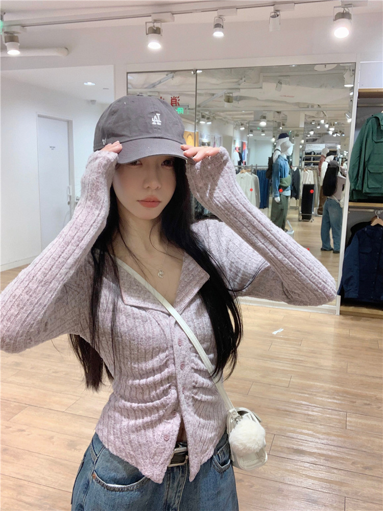 [팩토리 소스 재고 스트레이트 헤어] 긴팔 스파이스 스웨터 여성용 가을 시크 플리츠 슬림핏 슬림 탑스토어 가기