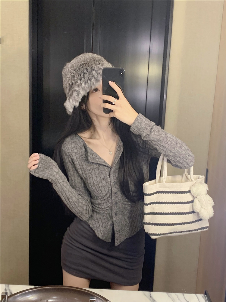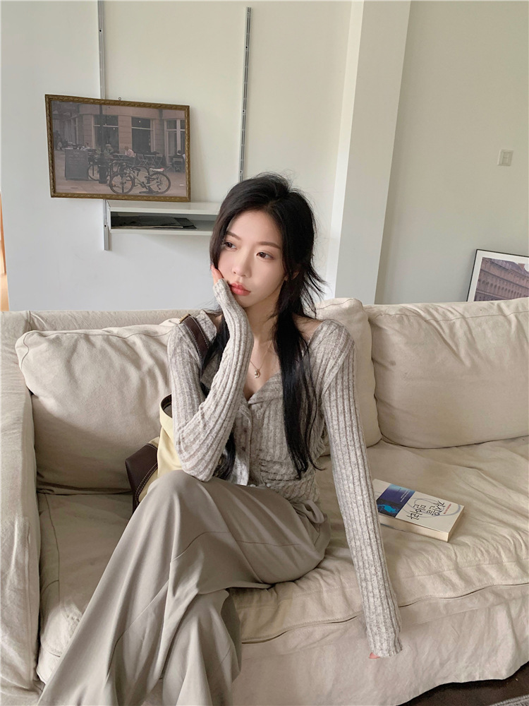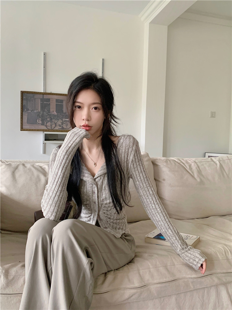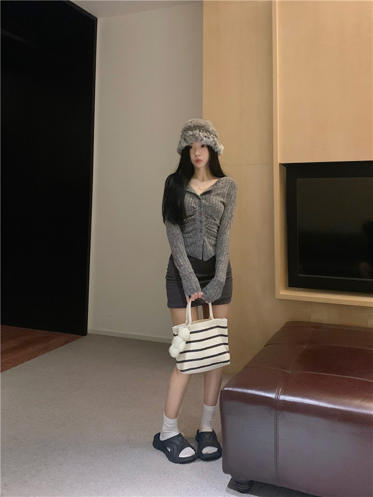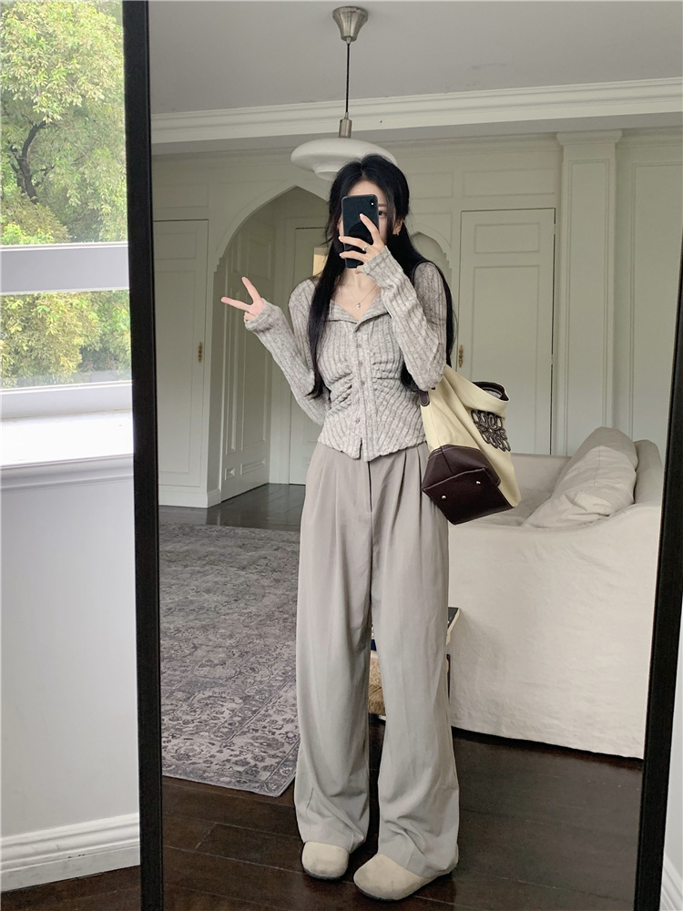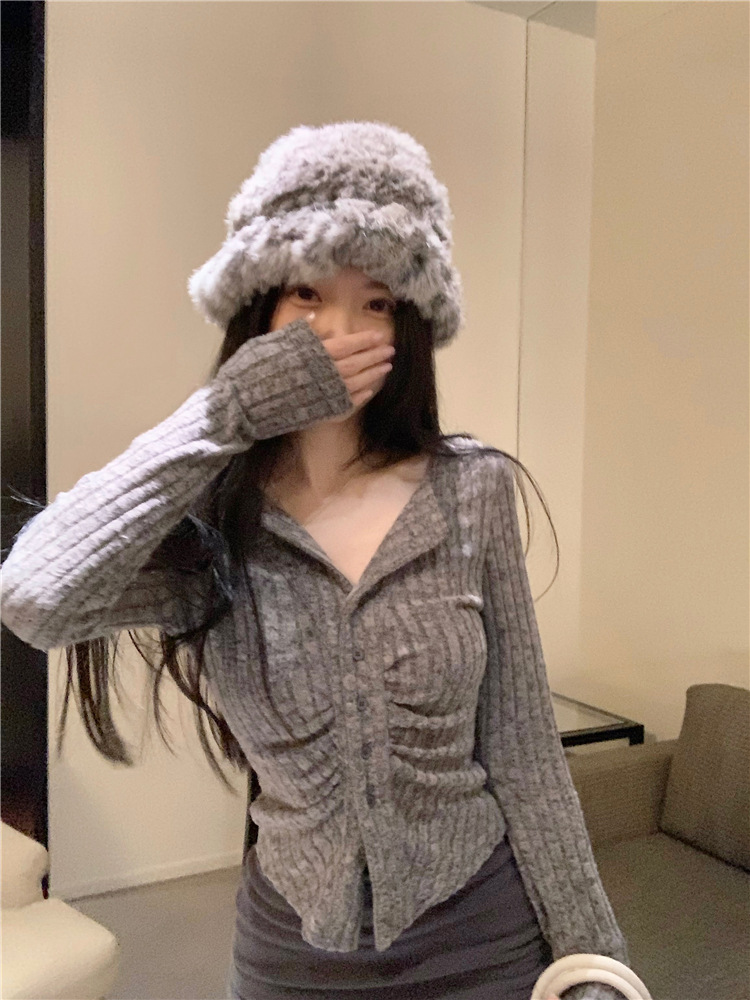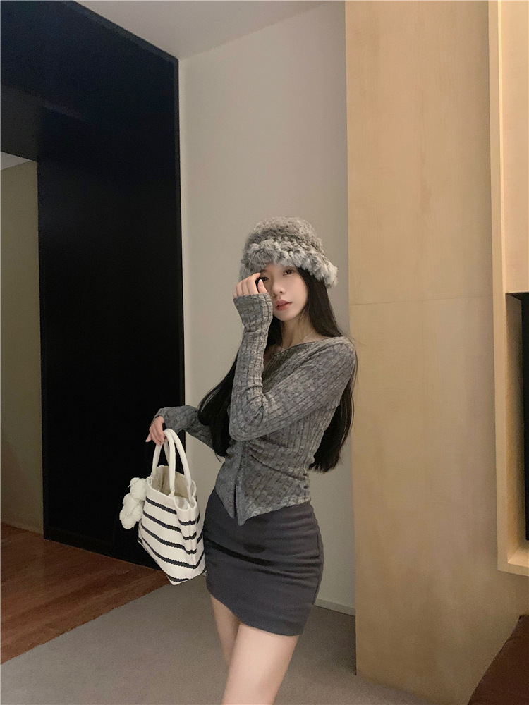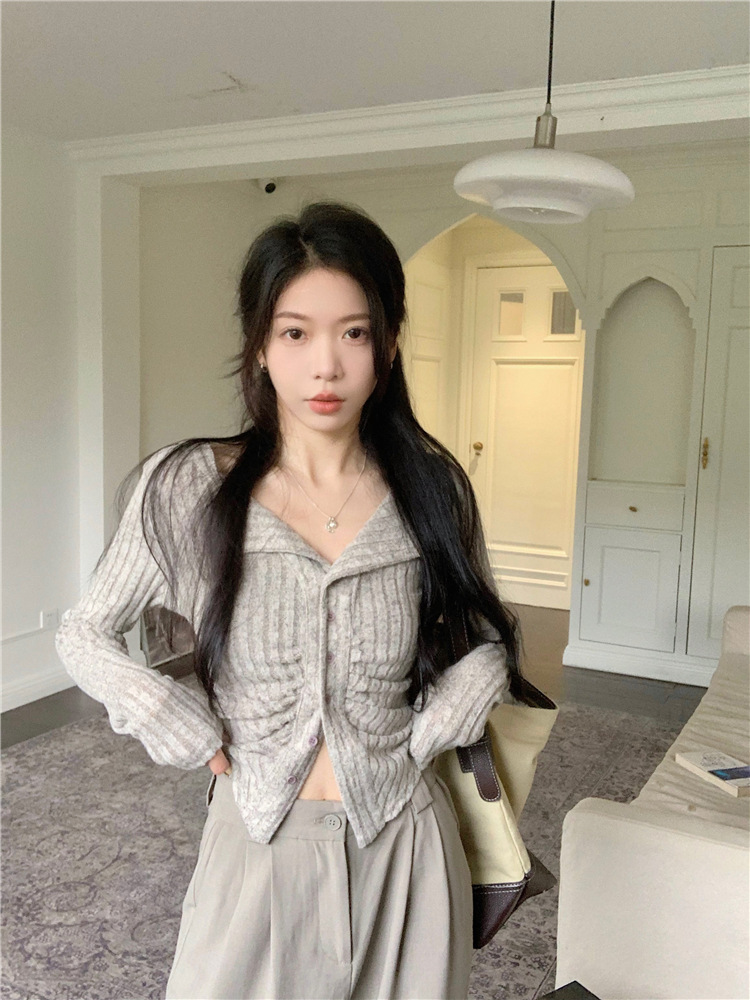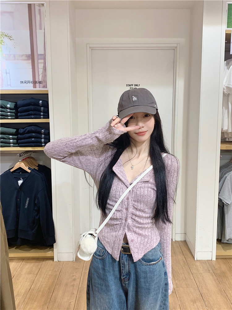 [팩토리 소스 재고 스트레이트 헤어] 긴팔 스파이스 스웨터 여성용 가을 시크 플리츠 슬림핏 슬림 탑스토어 가기