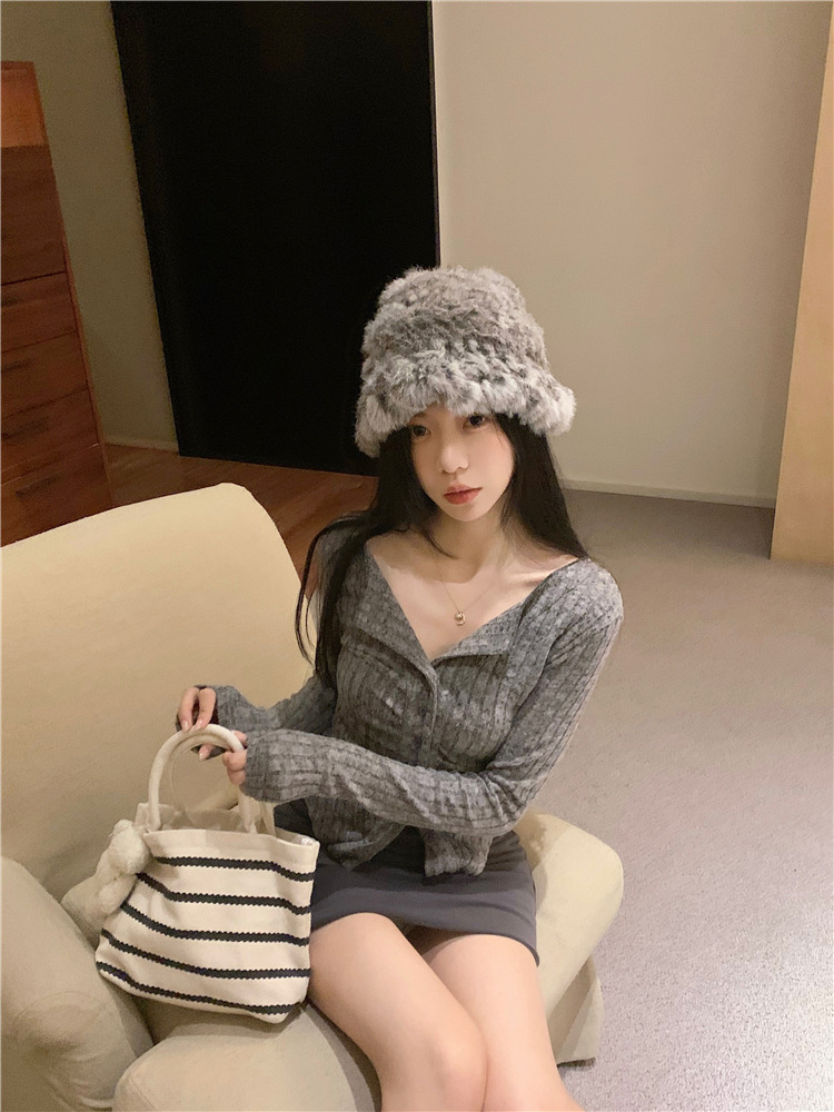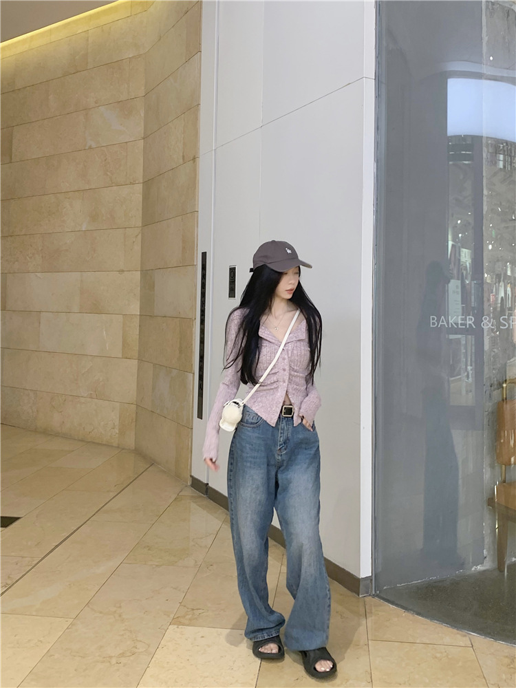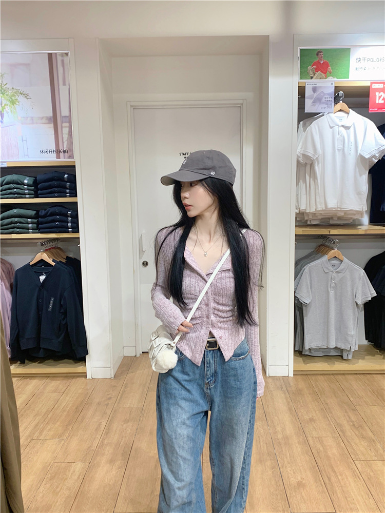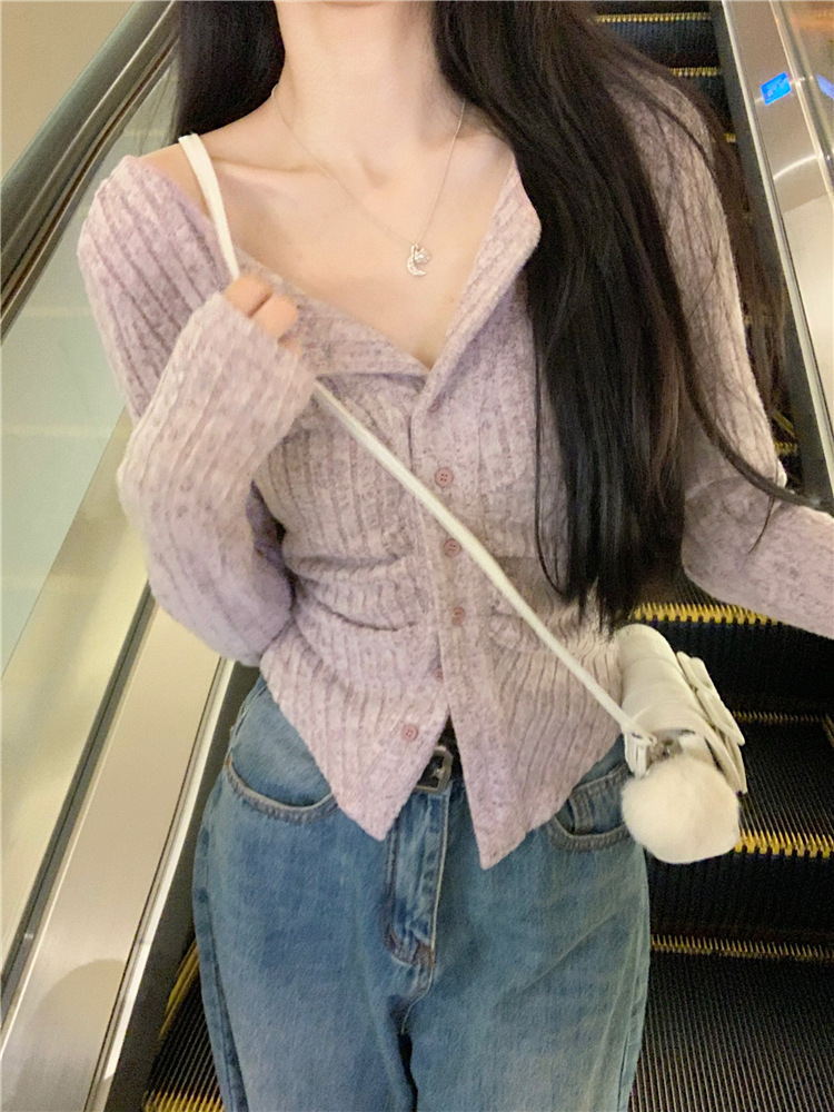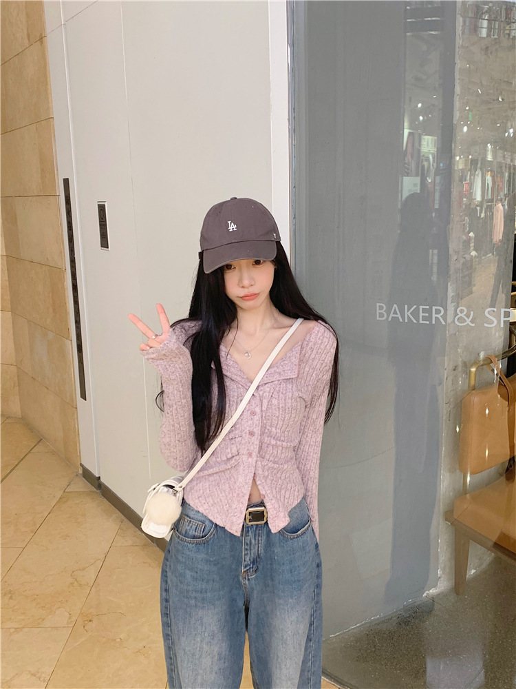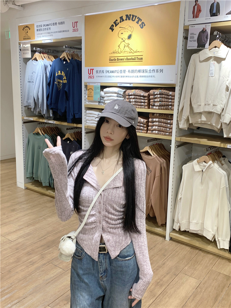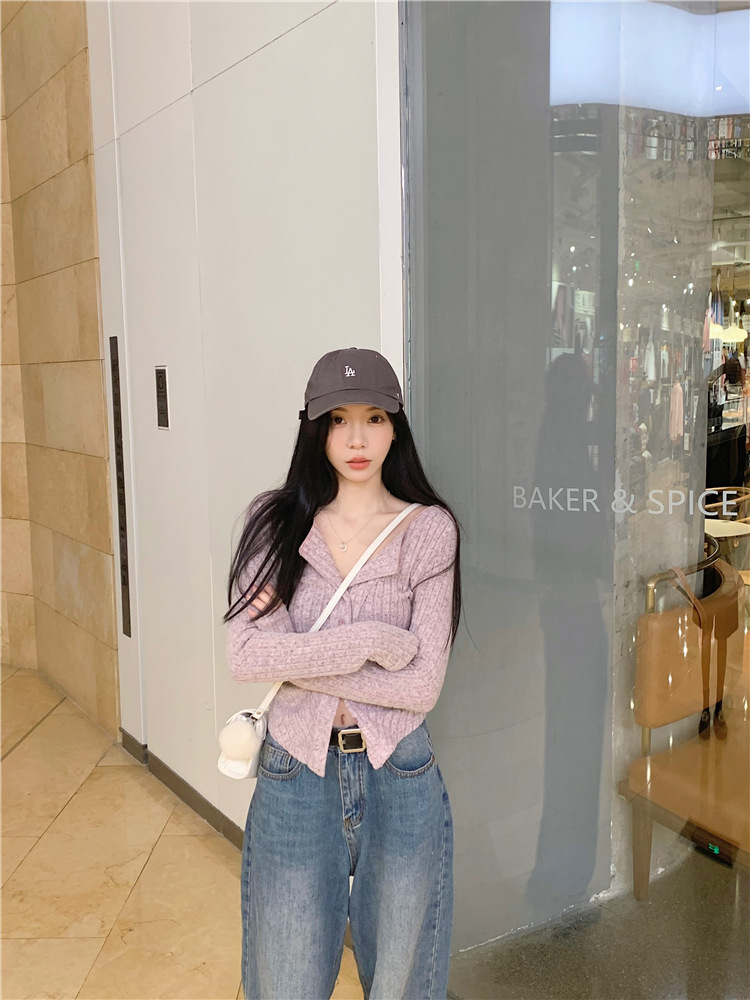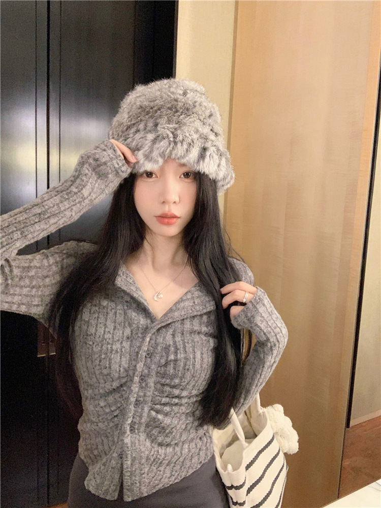 [팩토리 소스 재고 스트레이트 헤어] 긴팔 스파이스 스웨터 여성용 가을 시크 플리츠 슬림핏 슬림 탑스토어 가기