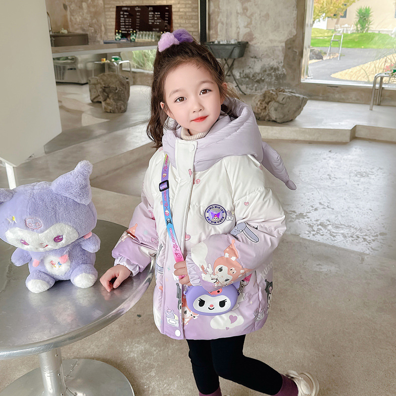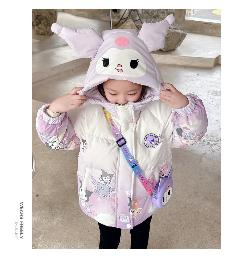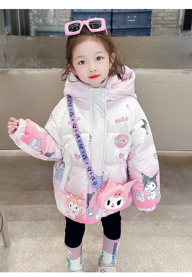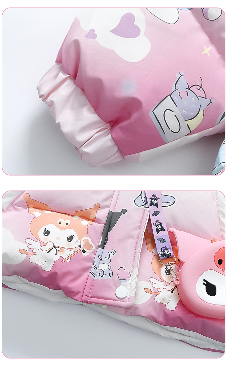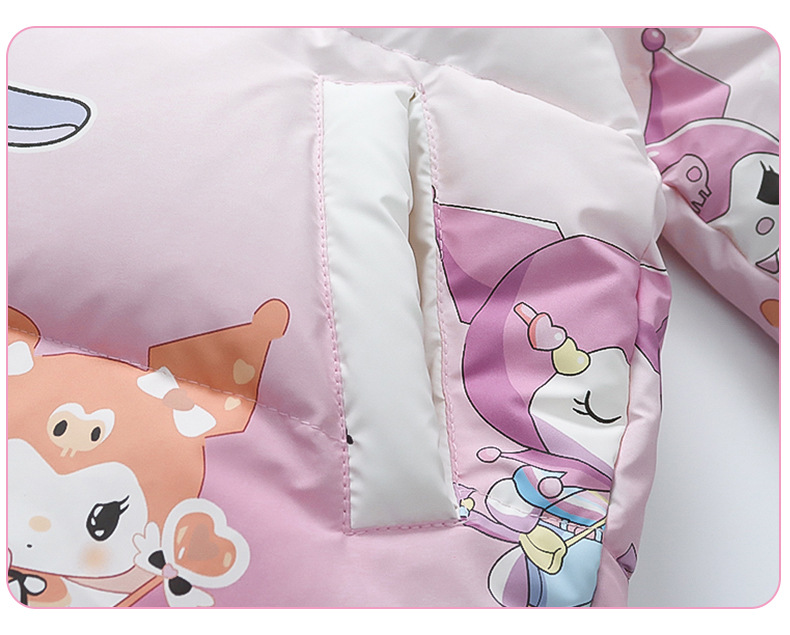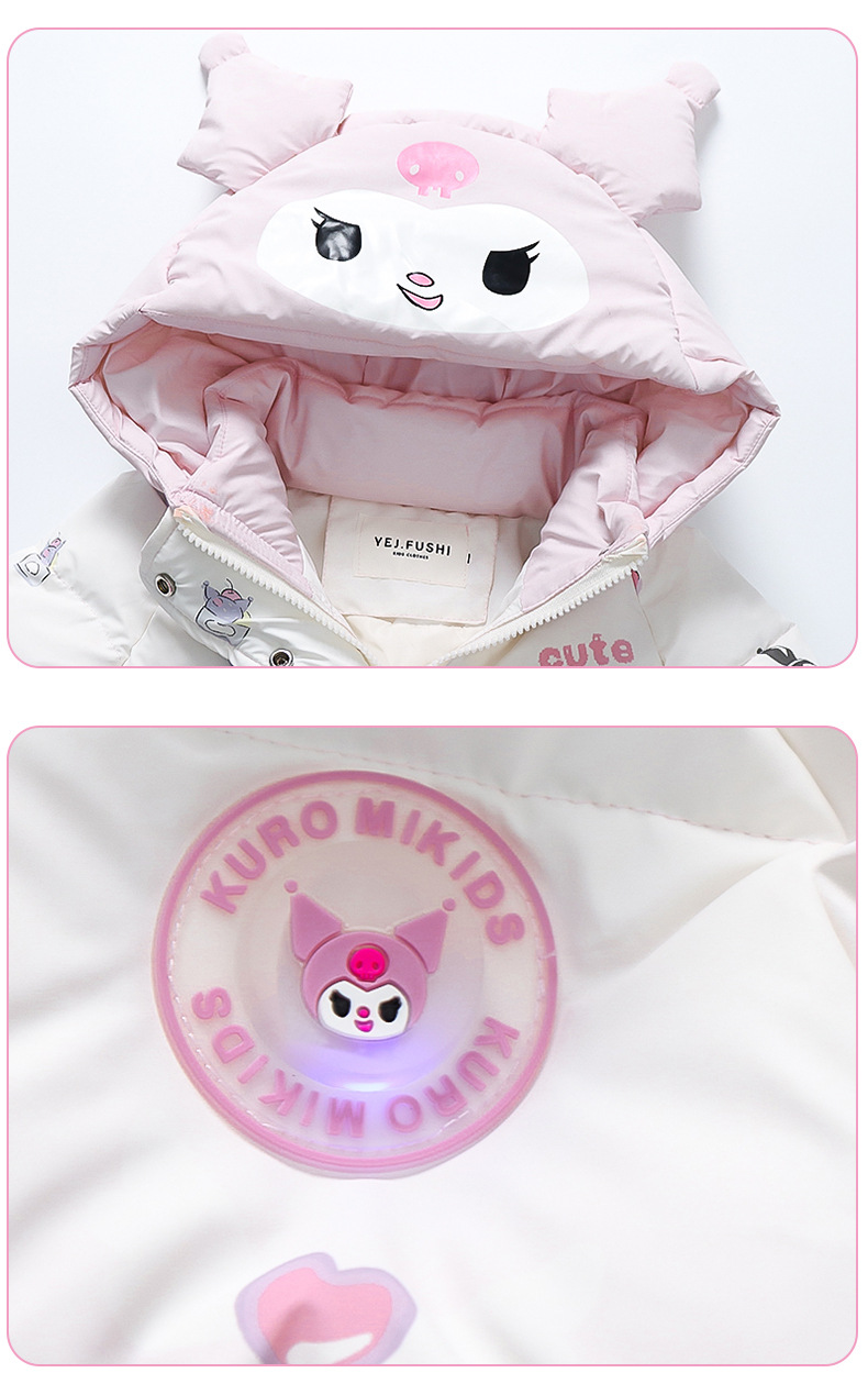 여아용 쿠로미 플러스 벨벳 두꺼운 다운 재킷 2025 신상 여아용 만화 쿠로미 다운 재킷