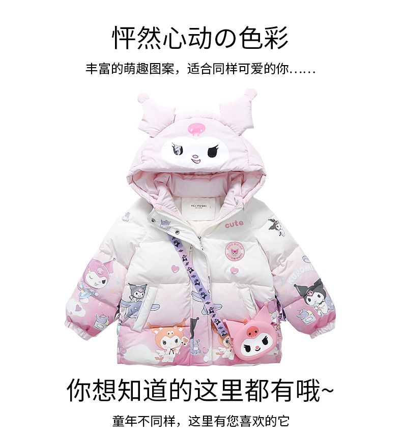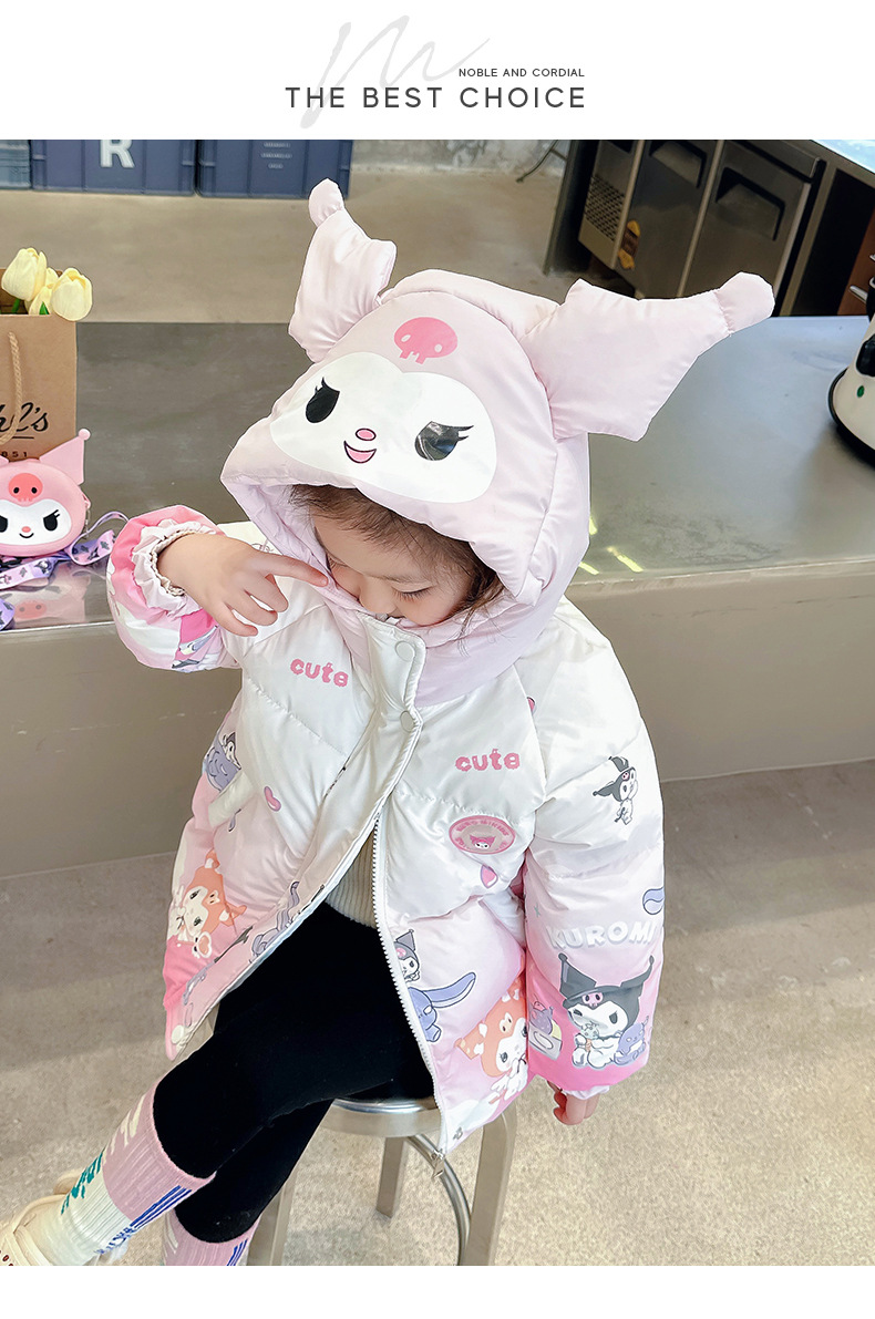 여아용 쿠로미 플러스 벨벳 두꺼운 다운 재킷 2025 신상 여아용 만화 쿠로미 다운 재킷스토어 가기