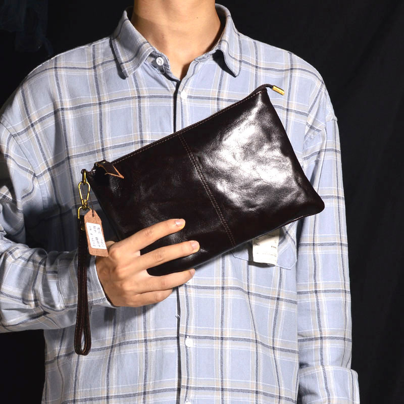 클러치 가죽 복고풍 주름 디자인 개인 자동차 바느질 공예 첫 번째 레이어 소가죽 간단한 단색 남성 핸드백스토어 가기