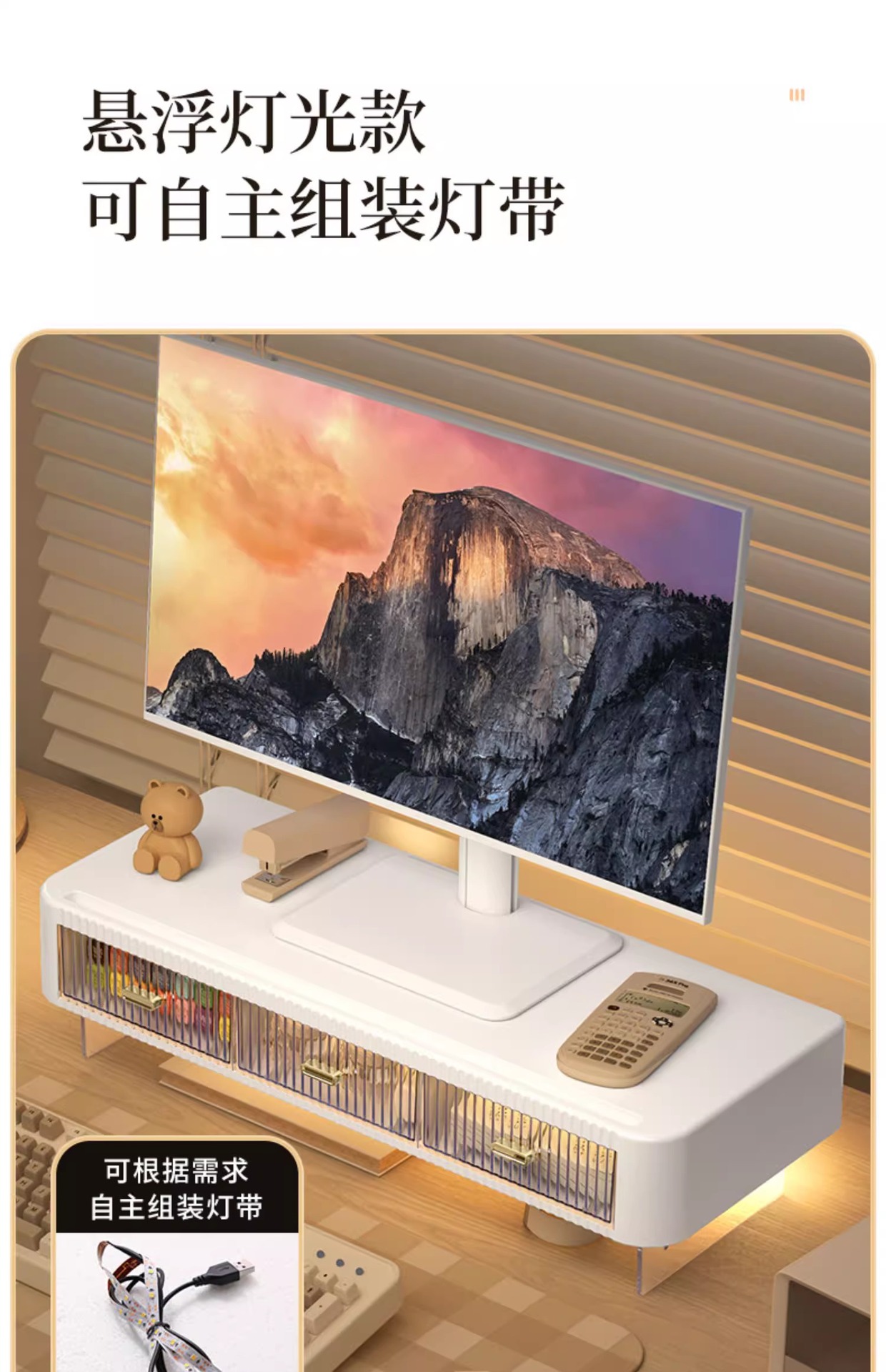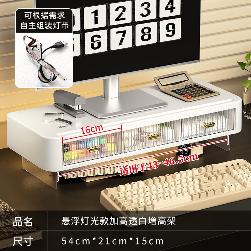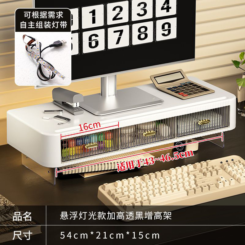 | 电脑增高架三抽格【带脚架带灯】 | 54*21*13.5 | 59*26.5*14 | 1.57 | 2.05 | 6 | / | / | 独立纸箱+气泡袋+护角 | 6个/捆 |