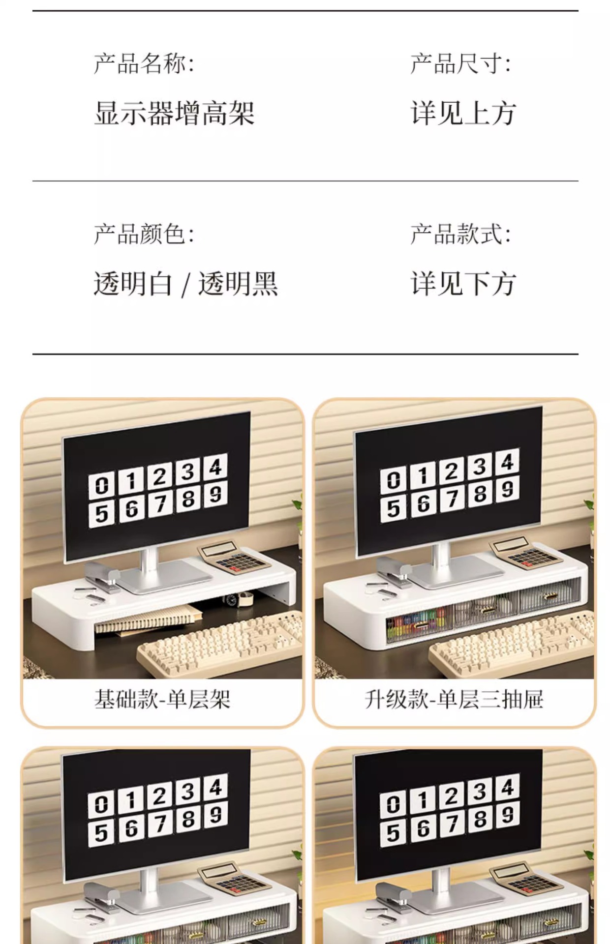 | 电脑增高架三抽格【不带脚架】 | 54*21*8 | 59*26.5*14 | 1.36 | 1.84 | 6 | / | / | 独立纸箱+气泡袋+护角 | 6个/捆 |