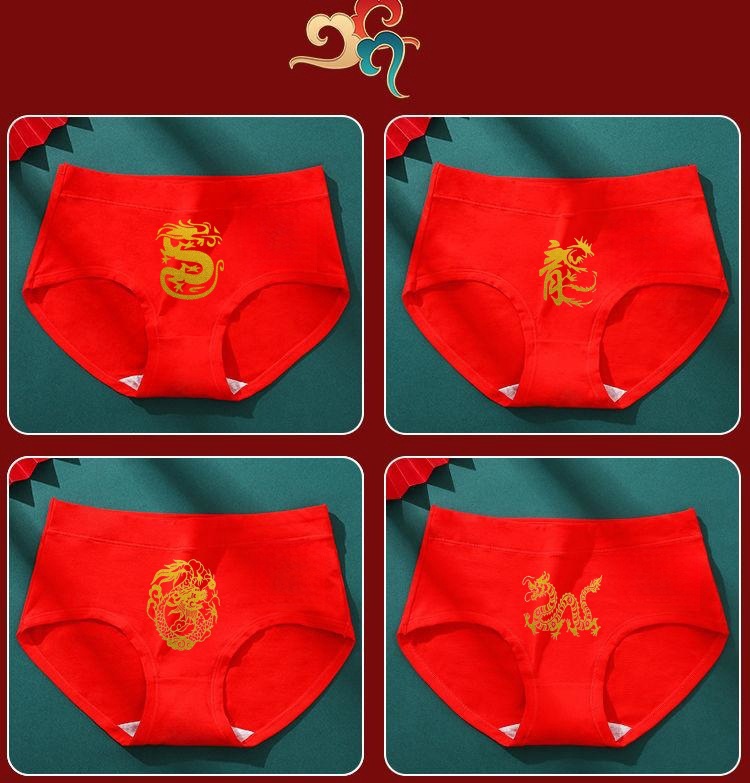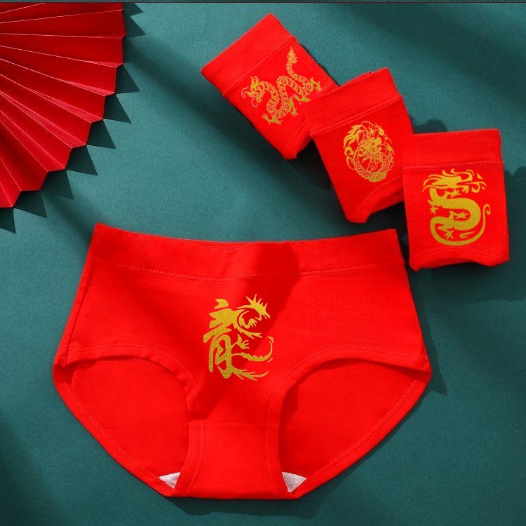 용의 베밍니아 년 속옷 여성용 코튼 팬츠 레드 2024 웨딩 레드 반바지 소녀 드래곤 재미스토어 가기