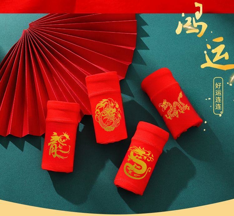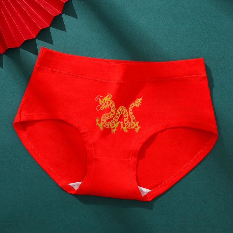 용의 베밍니아 년 속옷 여성용 코튼 팬츠 레드 2024 웨딩 레드 반바지 소녀 드래곤 재미