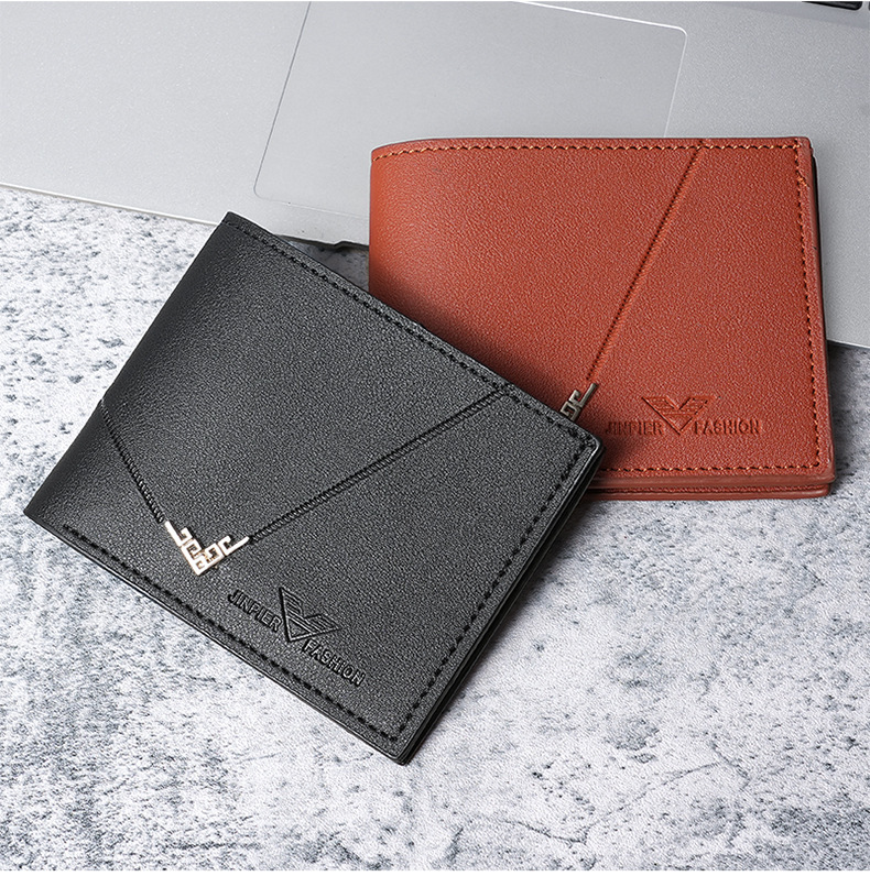 새로운 남성 지갑 남성용 짧은 지갑 남성용 청소년 간단한 패션 멀티 카드 리치 패턴 가로 스티칭 지갑