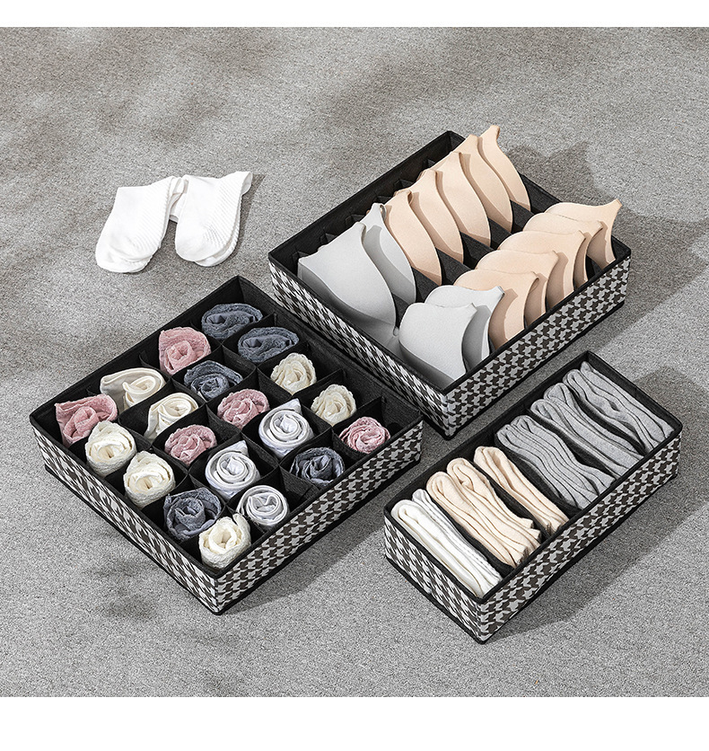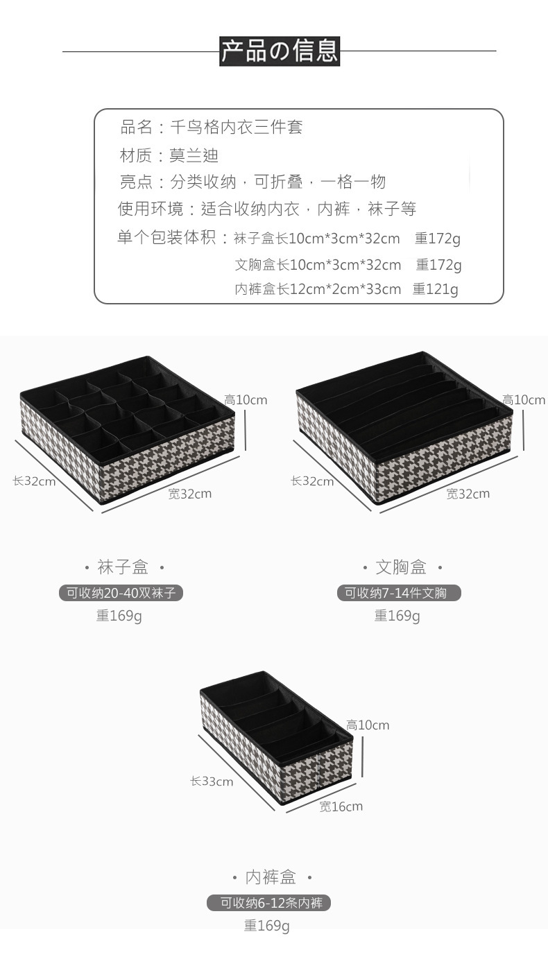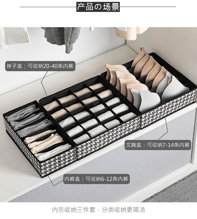 속옷 보관함 서랍형 양말 유물 Three-in-one 패브릭 접이식 브래지어 팬티 분할 주최자스토어 가기