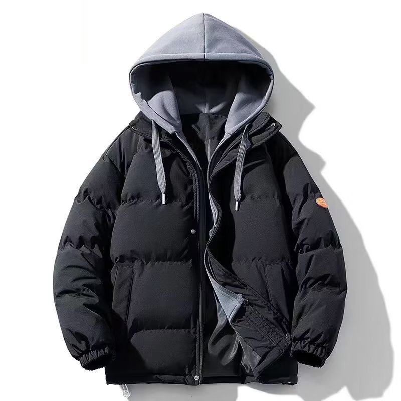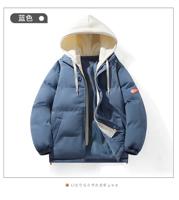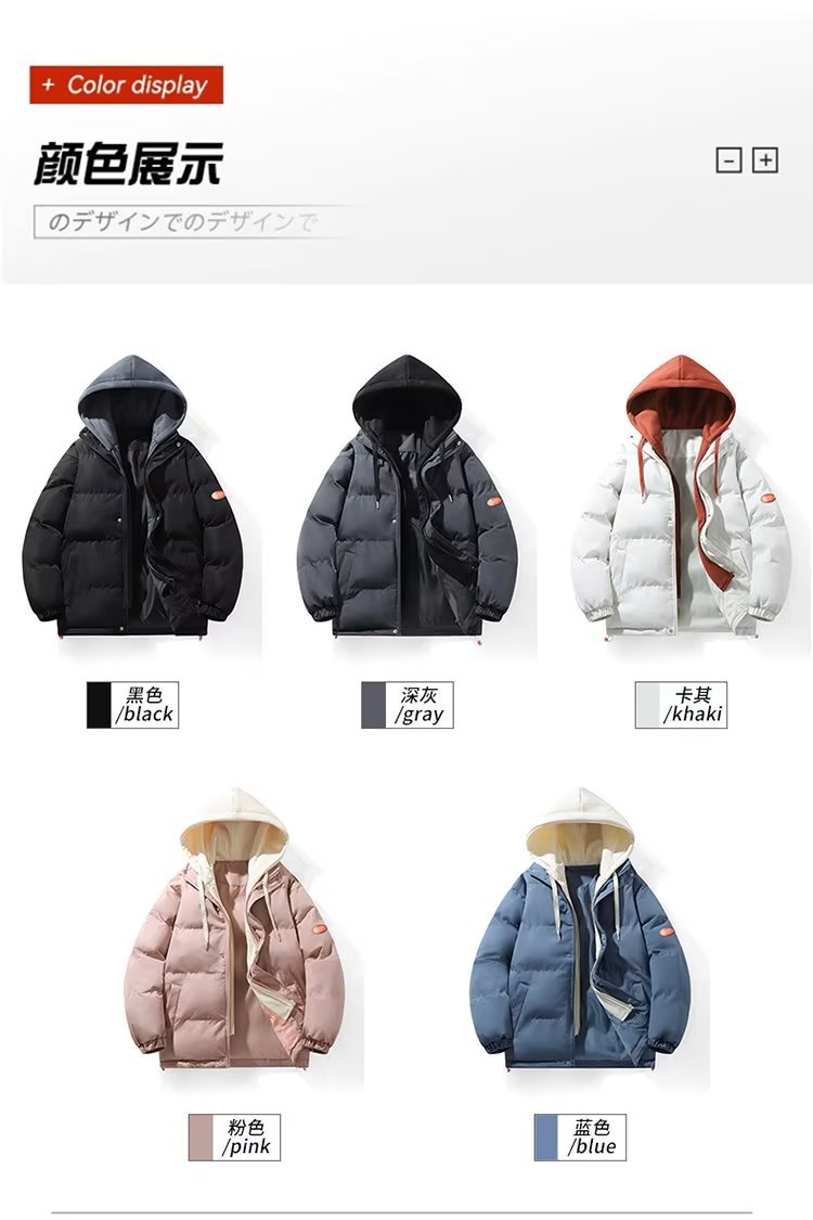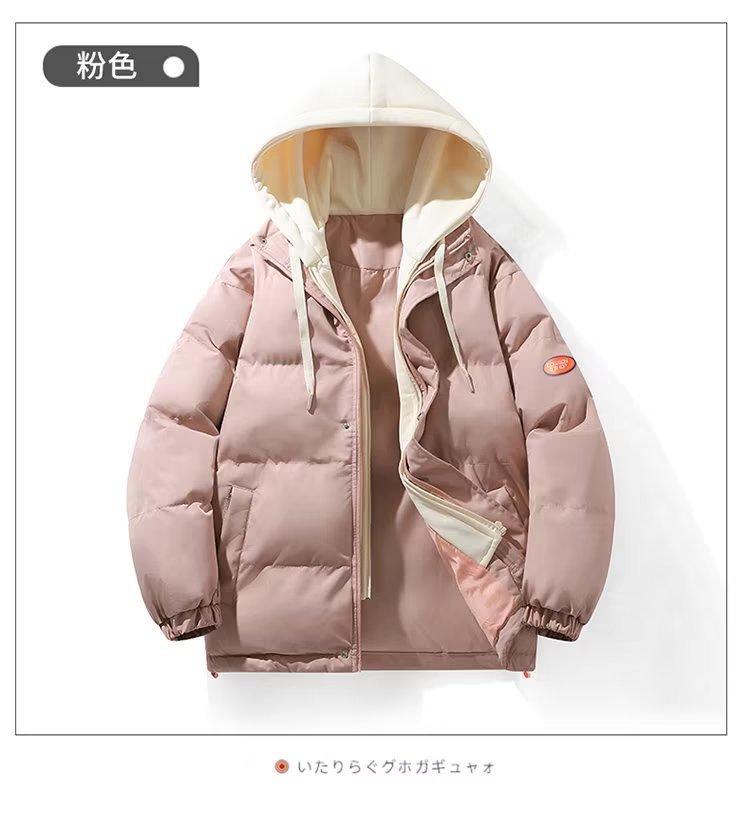 가짜 투피스 커플 면 패딩 재킷 면 패딩 코트 남성 코트 유행 느슨한 겨울 코트 두꺼운 홍콩 스타일 방한 빵 세트 학생스토어 가기